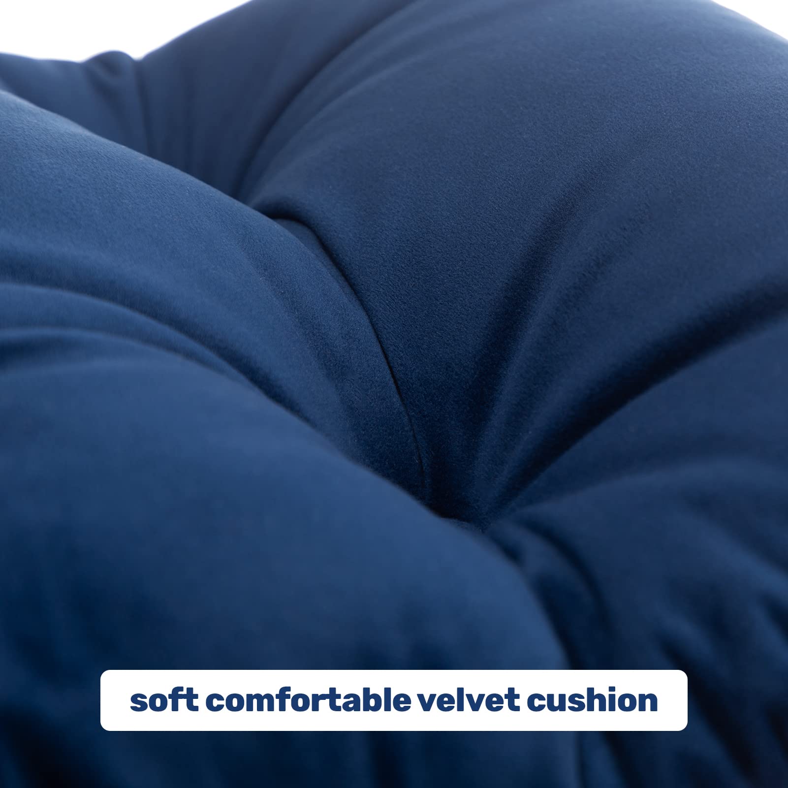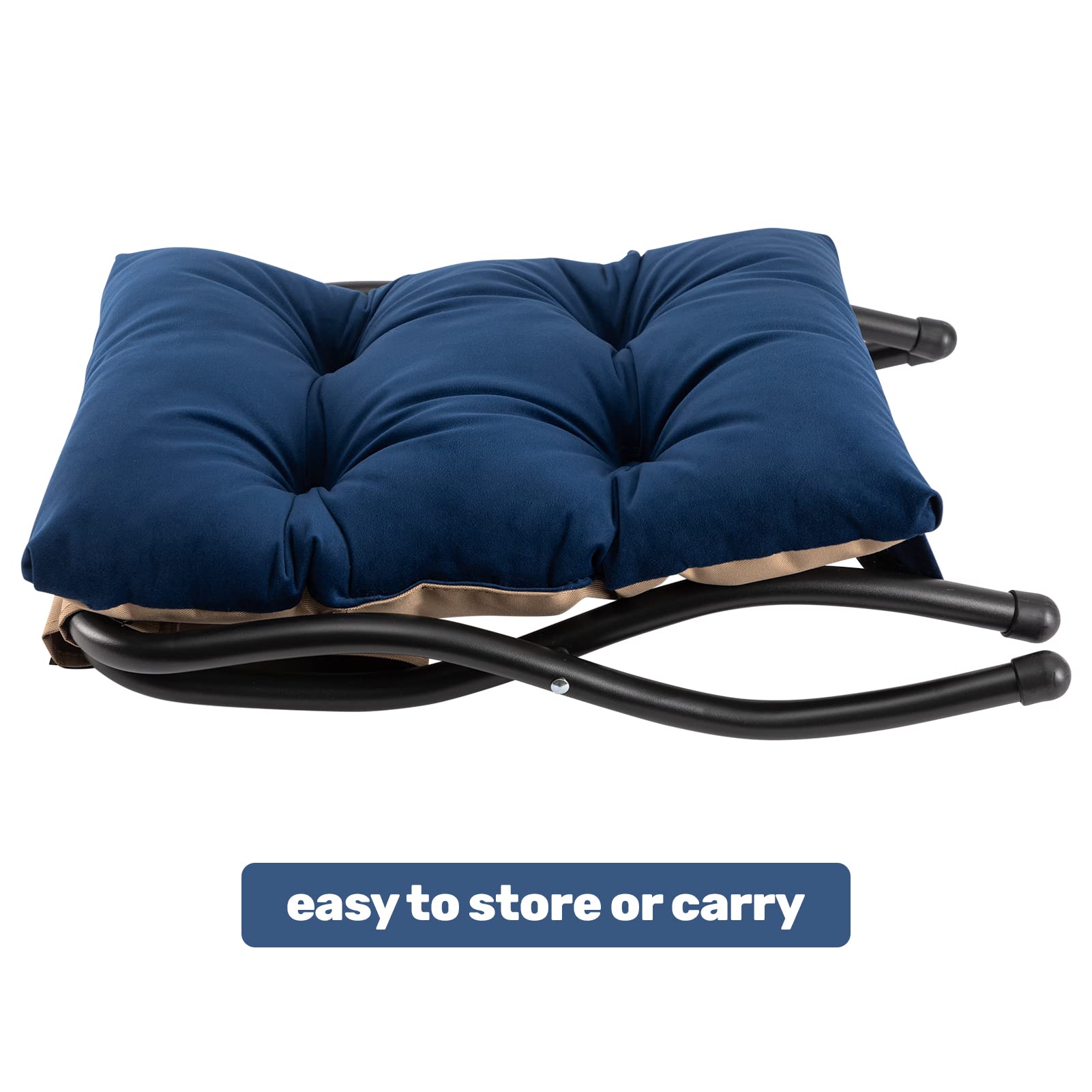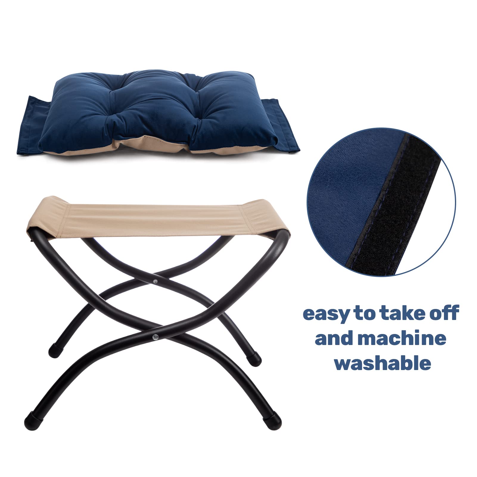 HollyHOME Fusshocker Klappbar Fussablage Fussstütze Faltbar Sitzhocker mit Metallbeinen Fusshocker mit Abnehmbar Gepolsterte Sitzfläche Samt, Dunkelblau