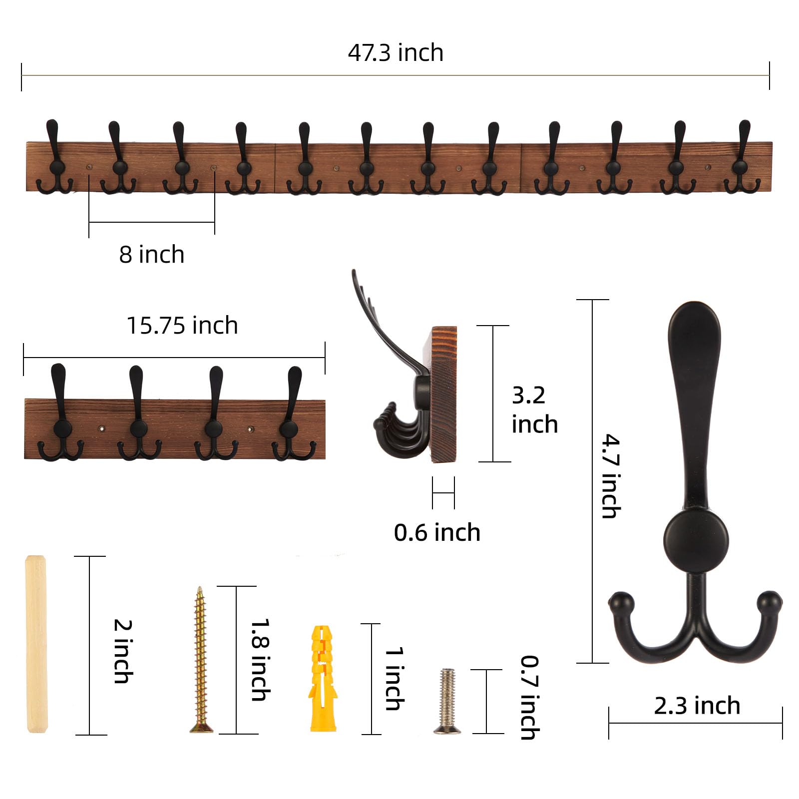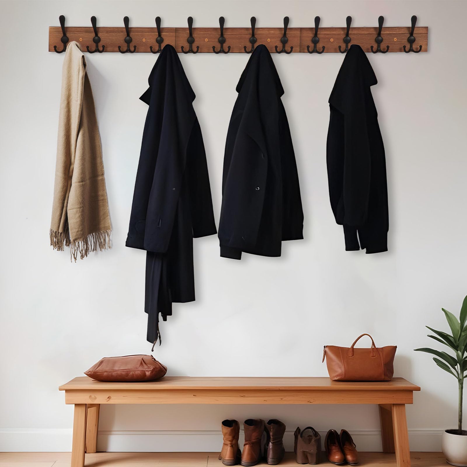 Homagic Wandgarderobe, 120 cm, Braun gebrannt, rustikaler Handtuchhalter für Badezimmer, Wohnzimmer, Haken für Mäntel, Hüte, Kleidung