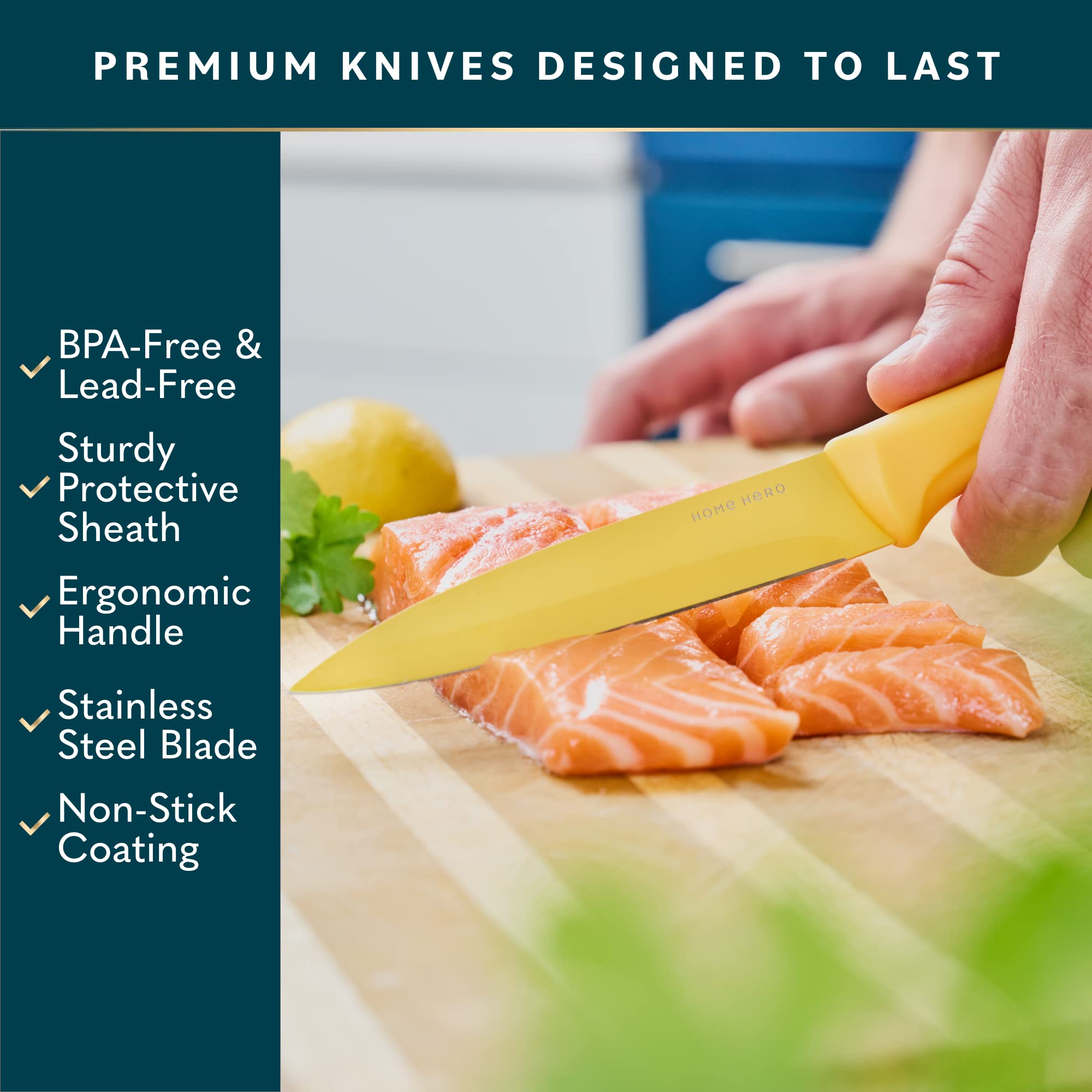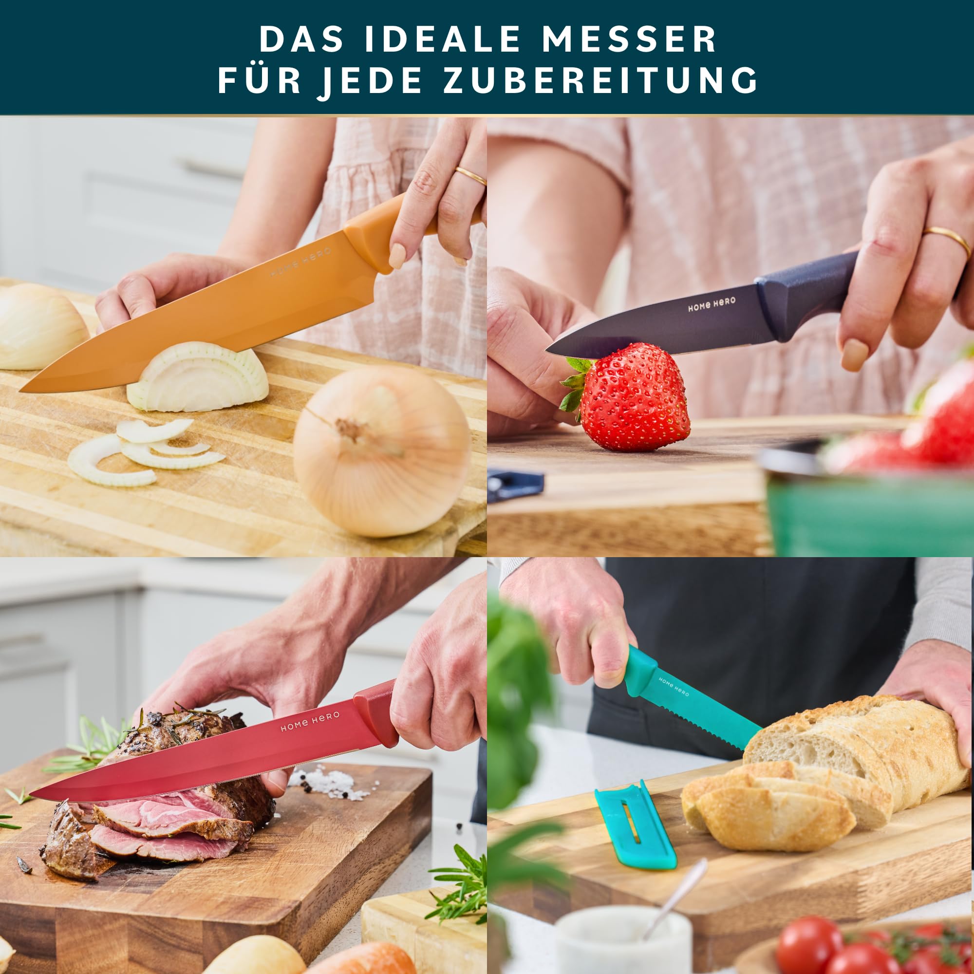 Home Hero Küchenmesser - Professionelle Küchenmesser aus Edelstahl - Messer- und Küchenutensilien-Set (11 Stück mit Scheide – Mehrfarbig)