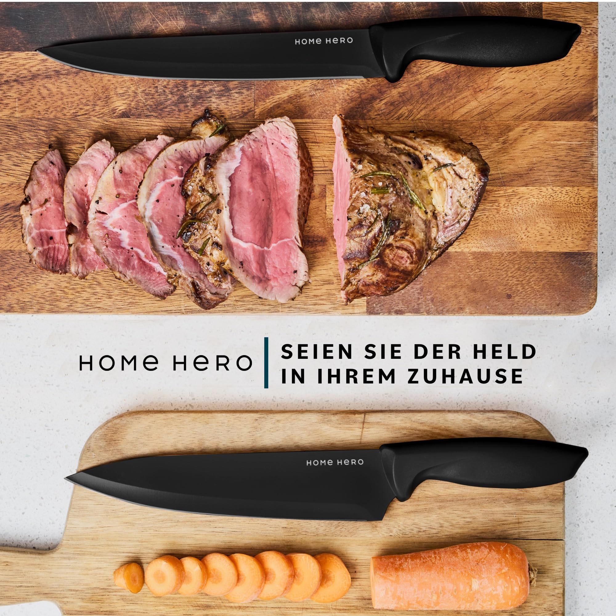 Home Hero Messerset mit Messerschärfer - Scharfe Küchenmesser Set - Messerblock Kochmesser Set Edelstahl Messer Set (5 Messer, 5 Scheiden, Messerschärfer - Schwarz)