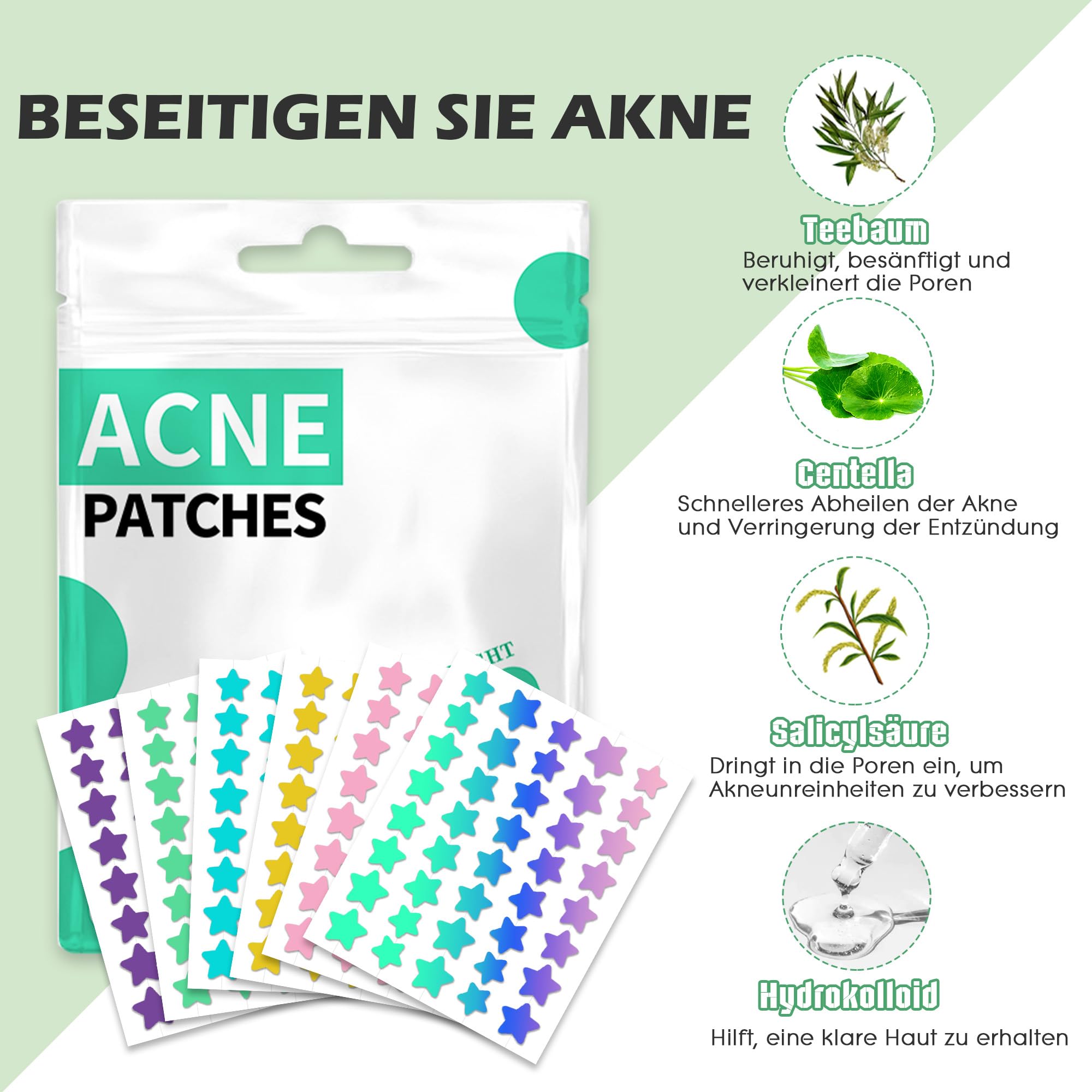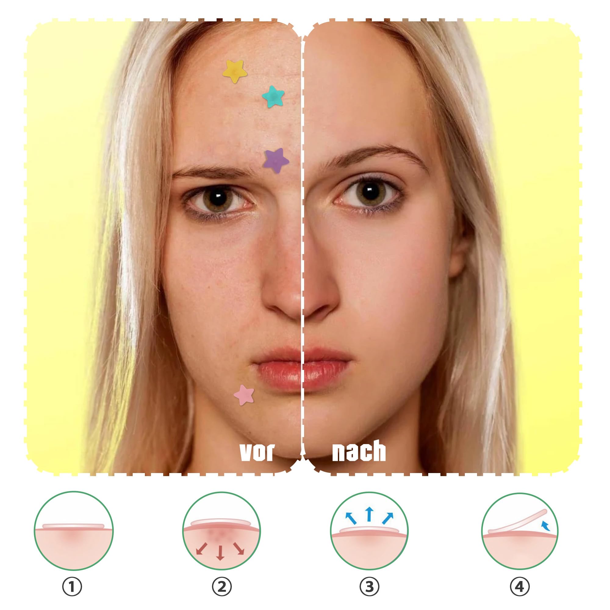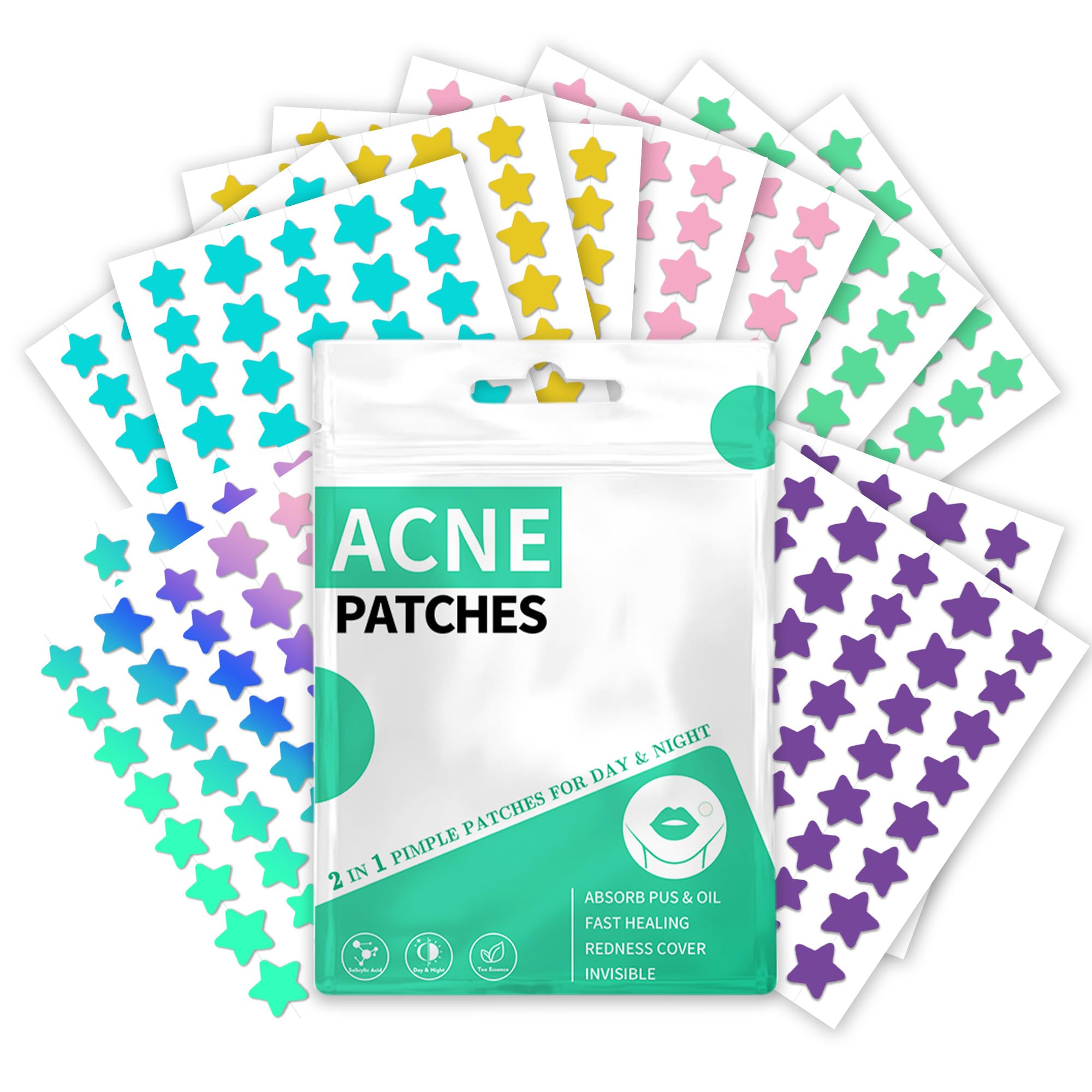 Pimple Patches Hydrokolloid Unsichtbare Pickel Patch mit Teebaumöl Tag und Nacht Verwenden Pimple Patch Akne Patches Wasserdichte Atmungsaktive Acne Patch Pflaster (480 Stück, Star)