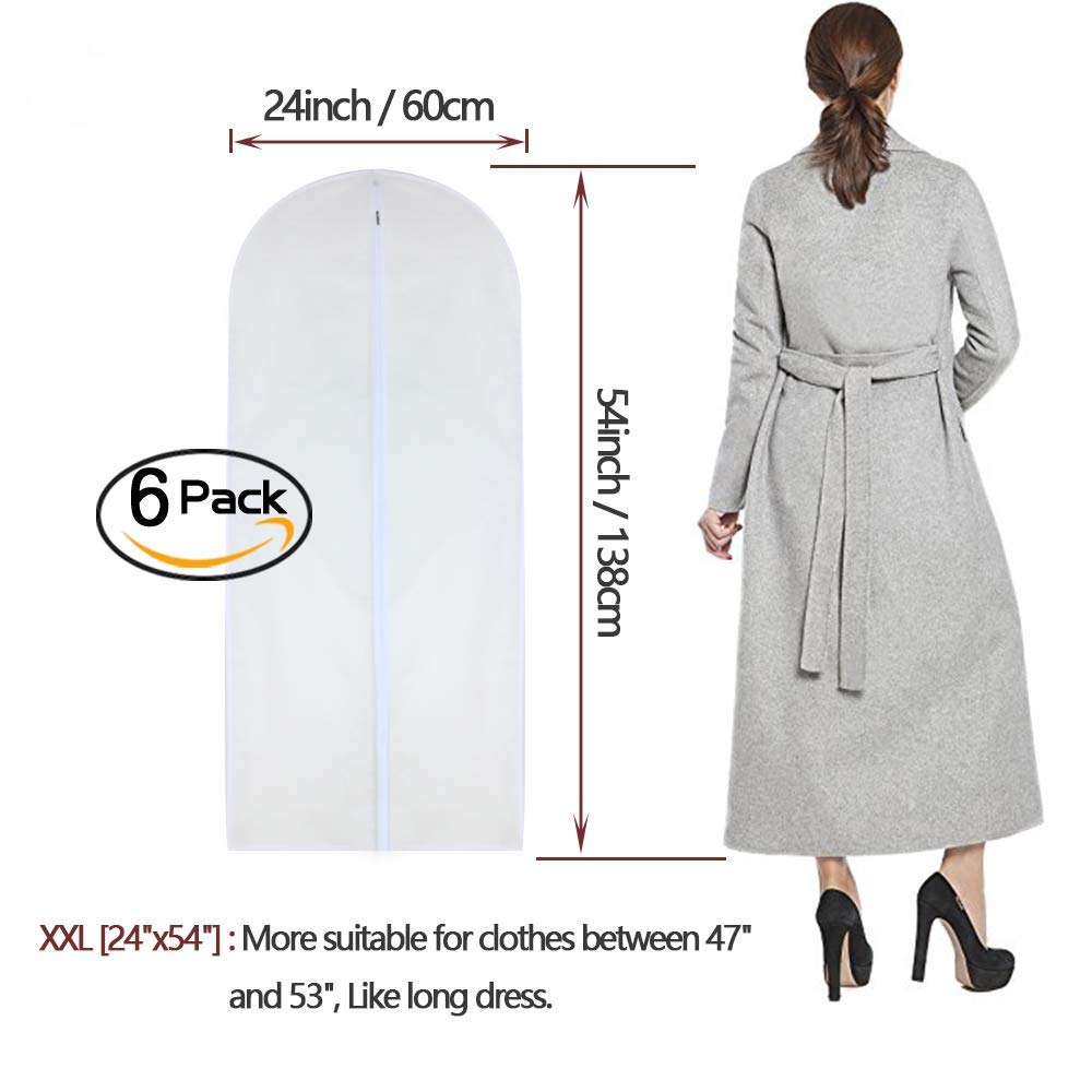 HomeClean Kleidersack Durchsichtig 60cm x 140cm Langes Kleid Mottenfest Kleidersäcke Weiss Atmungsaktiv Durchgehender Reissverschluss Staubschutz für Kleidung Aufbewahrungsschrank Packung mit 6 Stück