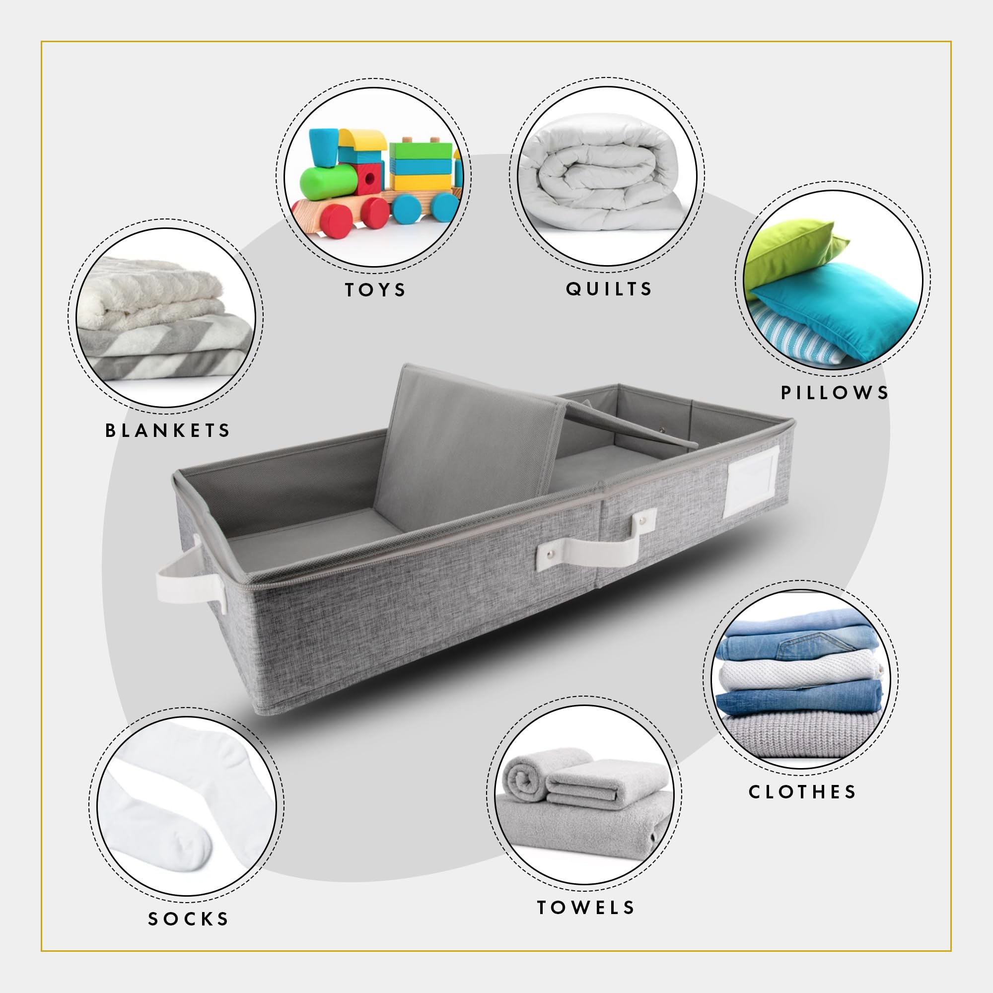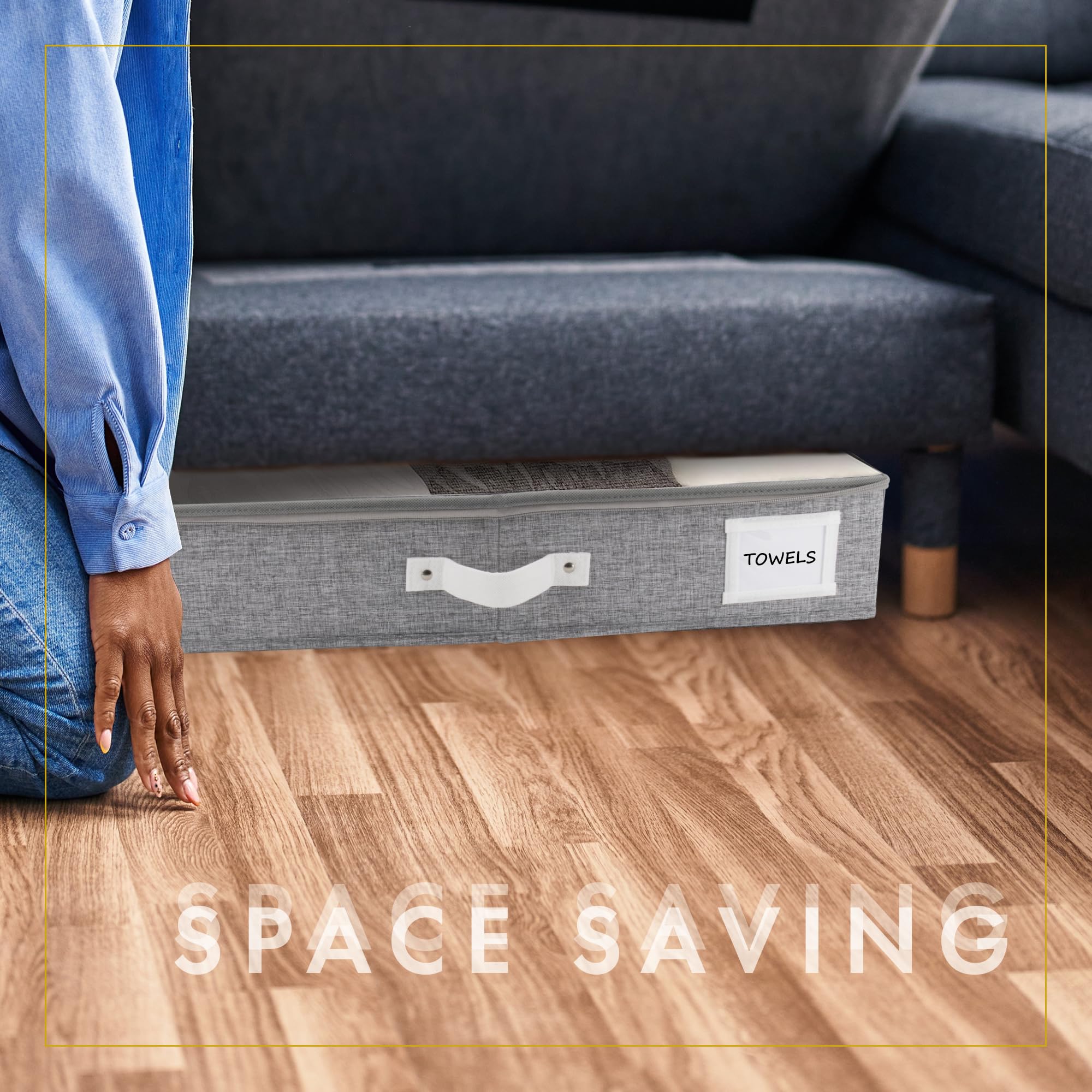 HOMELUX THEORY Unterbett-Aufbewahrungsbehälter, Schlafzimmer unter dem Bett, Schublade, Organizer mit Behältern und Deckeln, mittlere Unterbett-Kleidung, ideal für Decke, Stoff und Schuhe, Hellgrau, 2