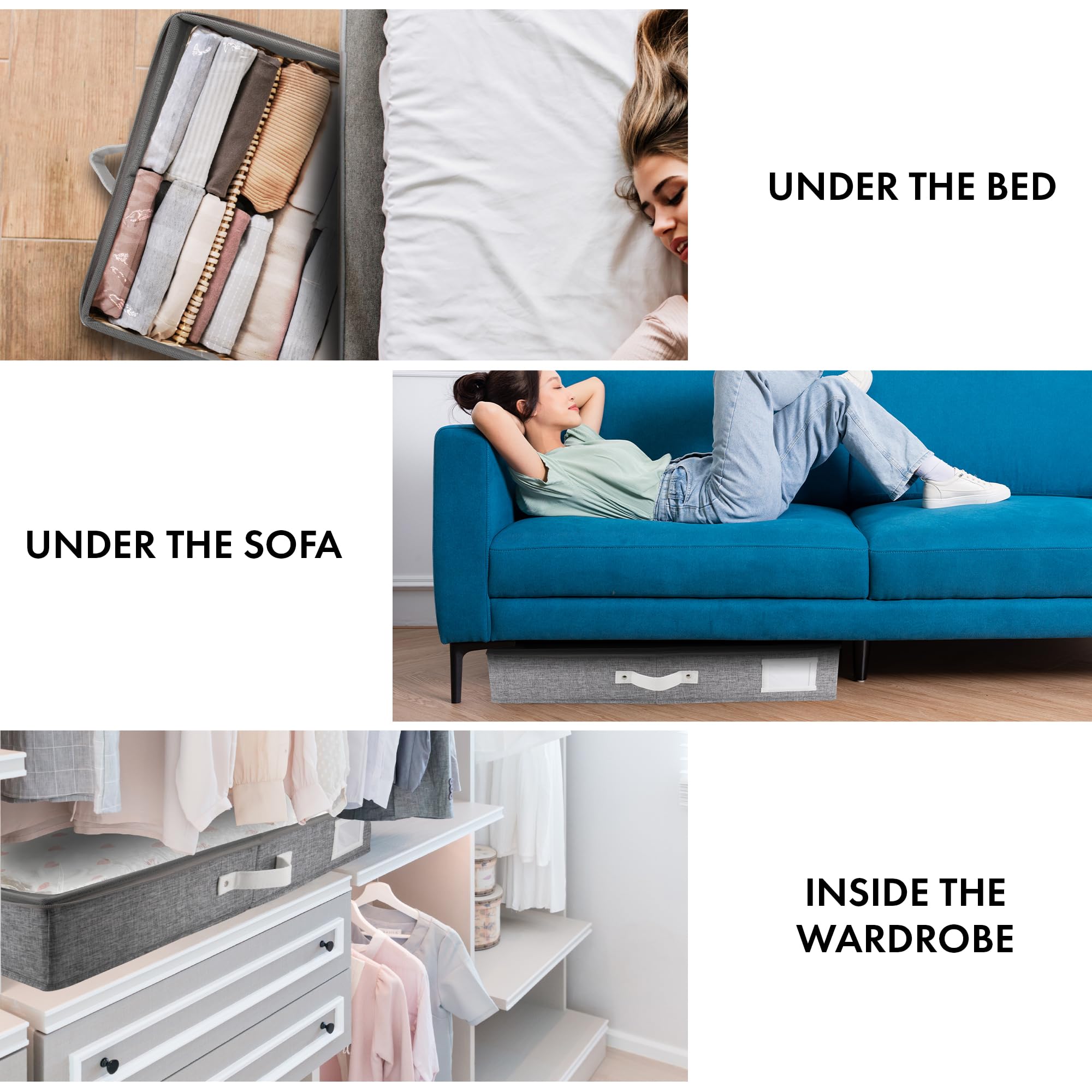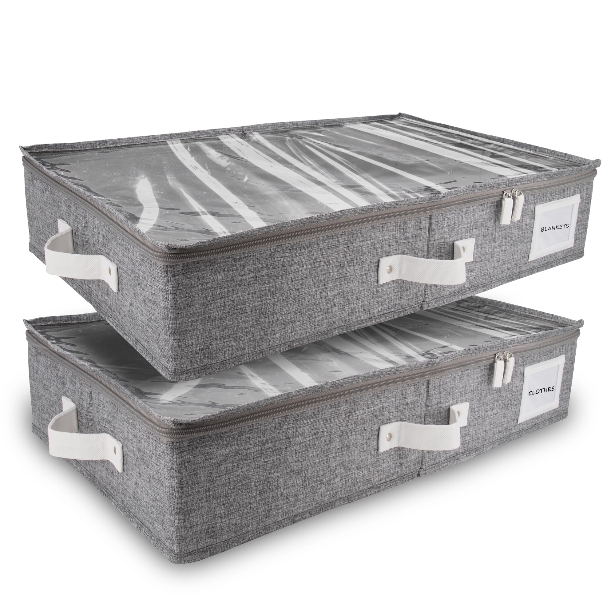 HOMELUX THEORY Premium Unterbett-Aufbewahrungsbehälter, extra dicker Karton auf allen Seiten, 83 x 43 x 15 cm, Unterbett-Aufbewahrungsbehälter, doppelte sichere Griffe und transparente PVC-Oberseite,