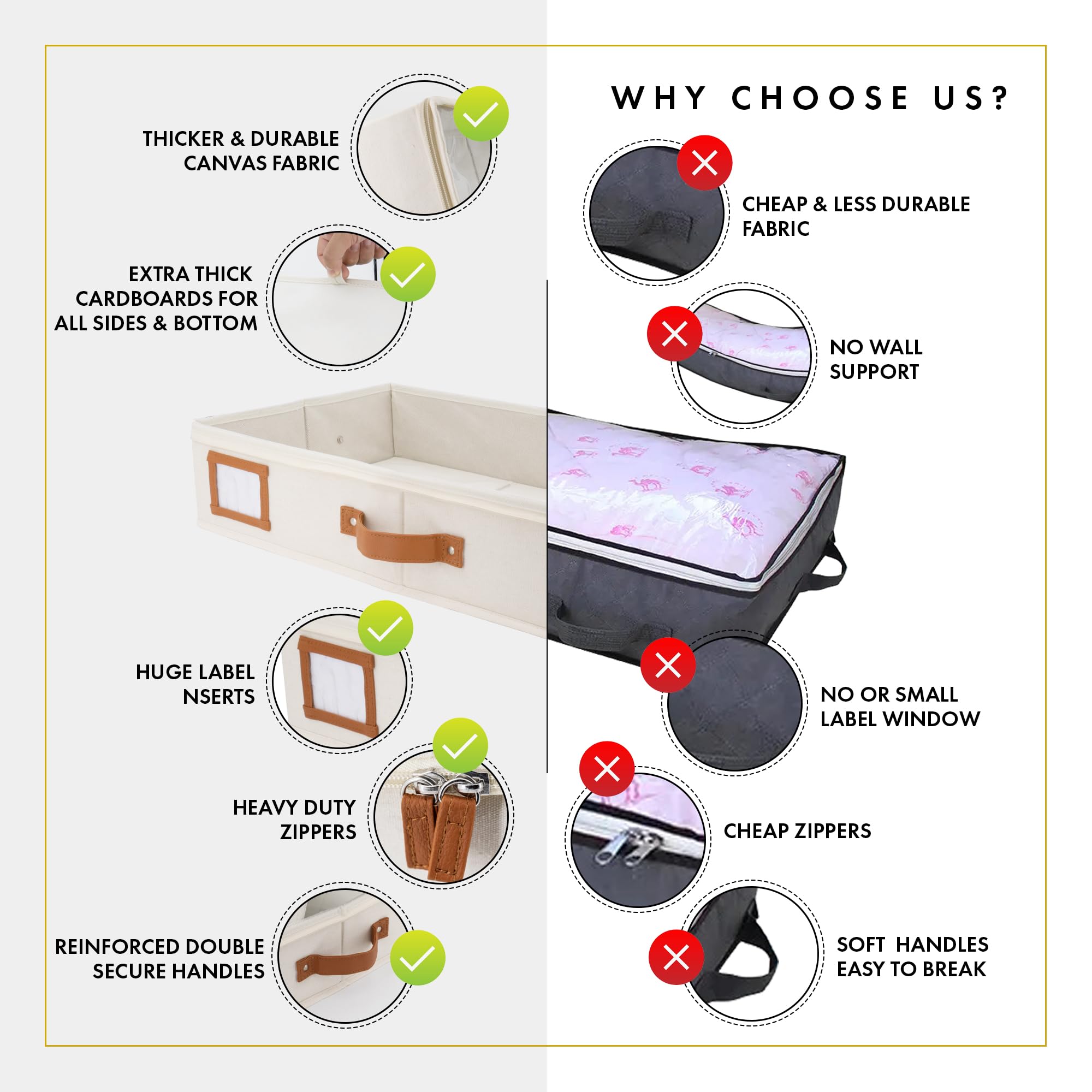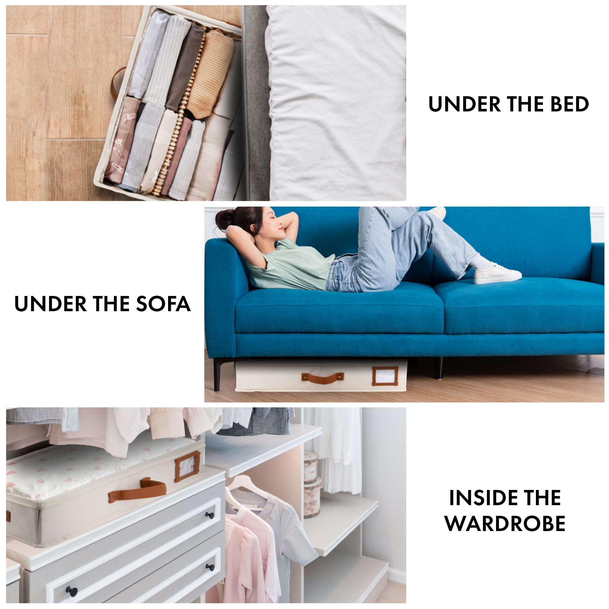 HOMELUX THEORY Unterbett-Aufbewahrungsbehälter, Schlafzimmer unter dem Bett, Schublade, Organizer mit Behältern und Deckeln, mittlere Unterbett-Kleidung, ideal für Decke, Stoff und Schuhe, Elfenbein,