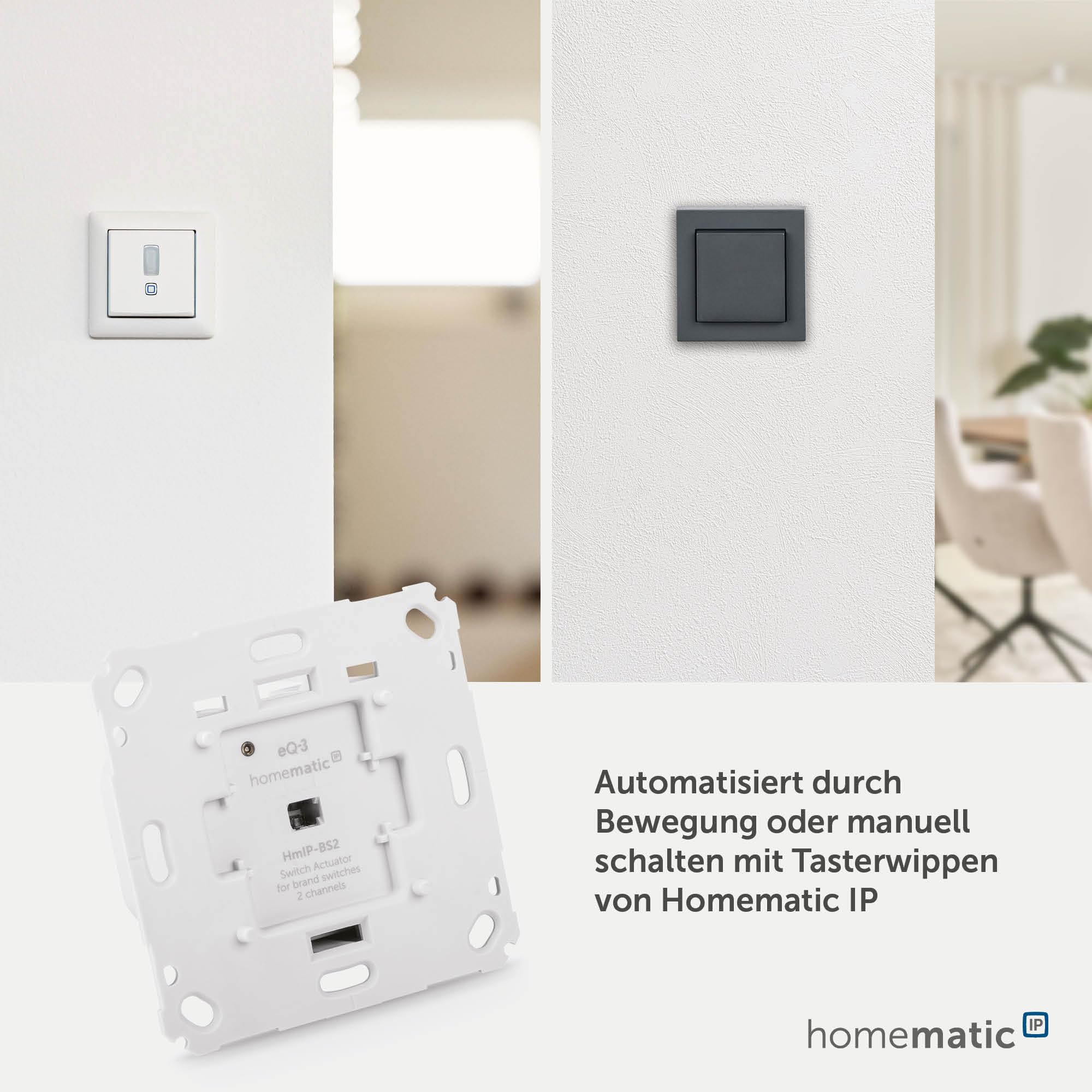 Homematic IP Smart Home Schaltaktor für Markenschalter – 2-fach, zwei Leuchten smart schalten, Energie sparen, 156757A0