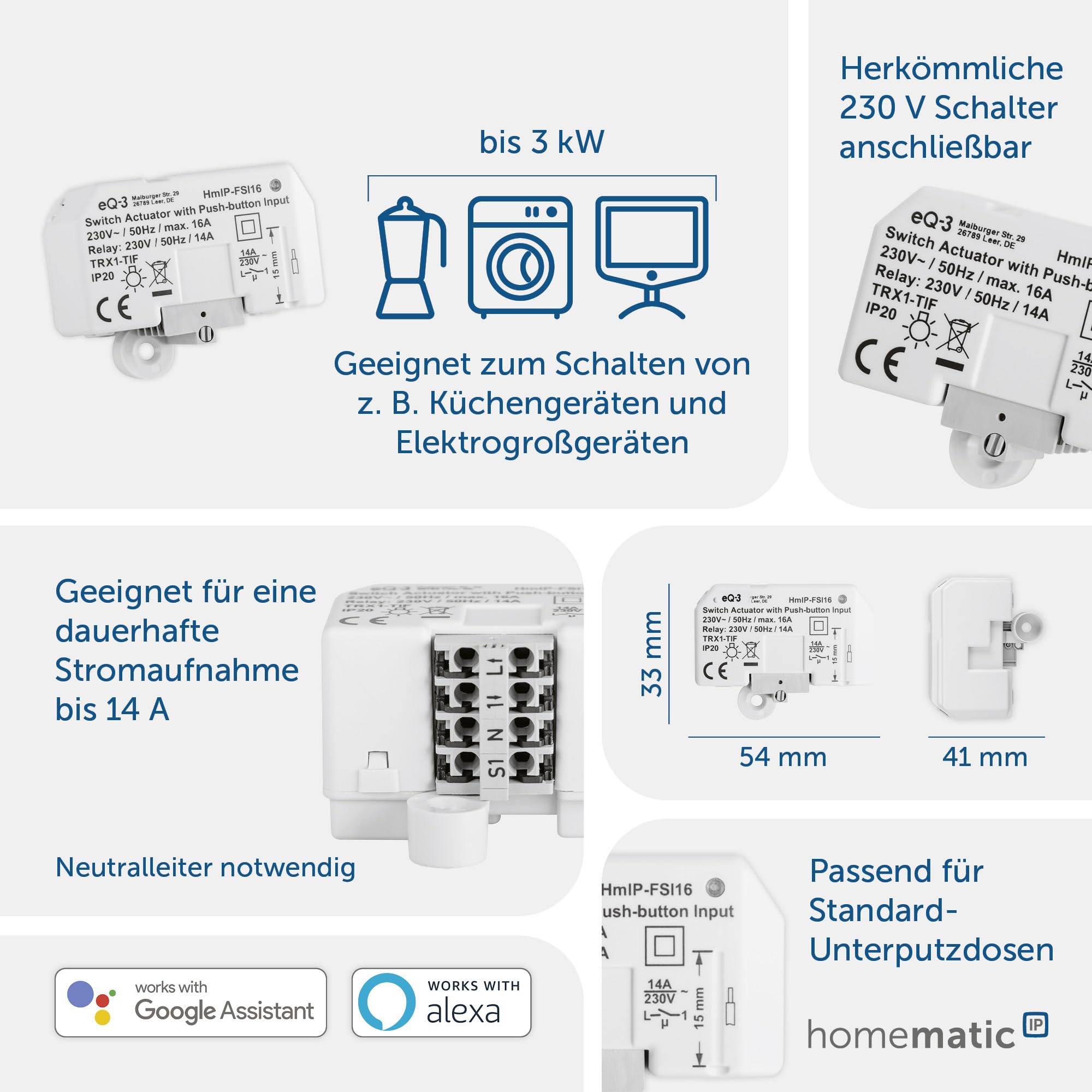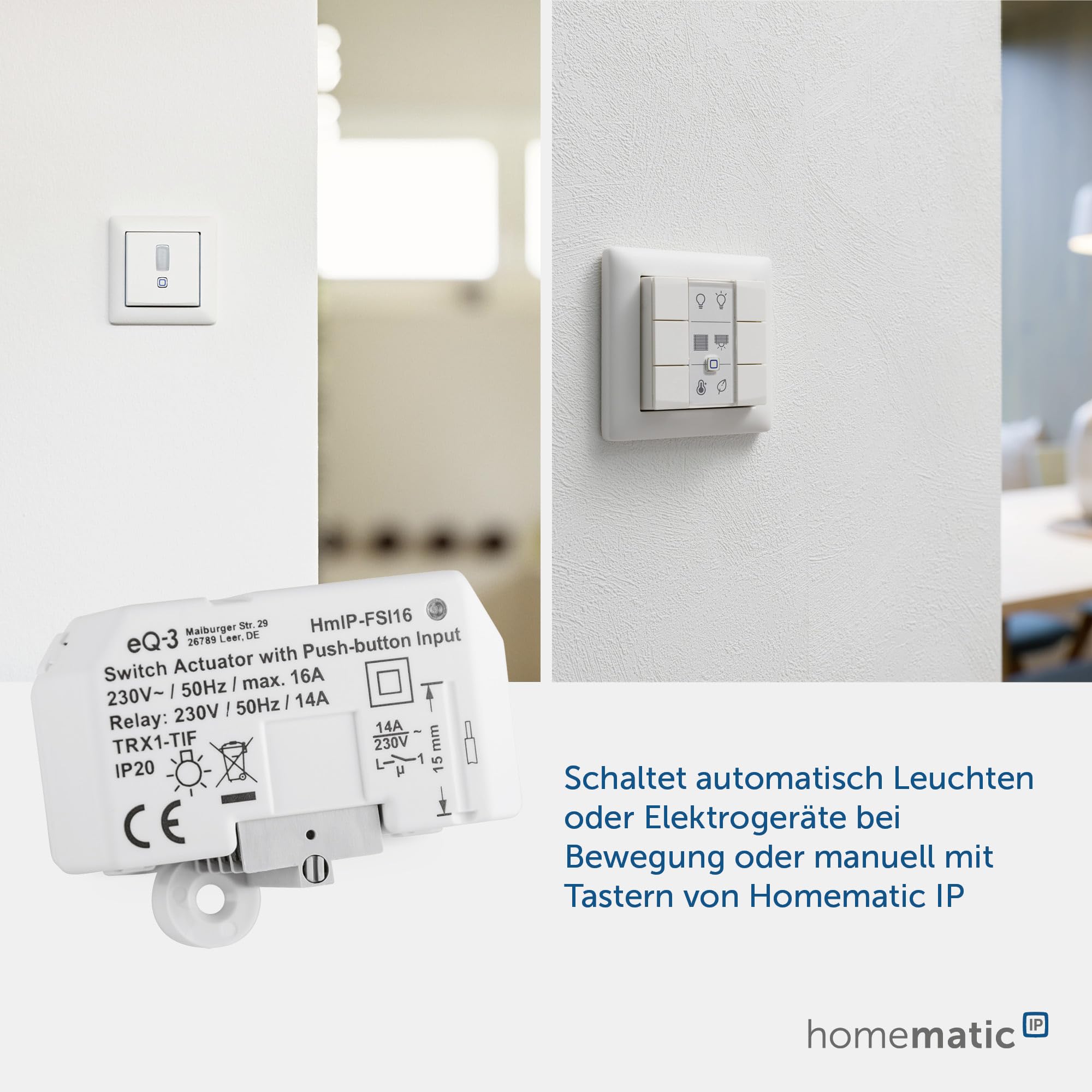 Homematic IP Smart Home Schaltaktor mit Tastereingang (16 A) – Unterputz, steuert Geräte und Leuchten per App, Alexa & Google Assistant, Energie sparen, 154346A0