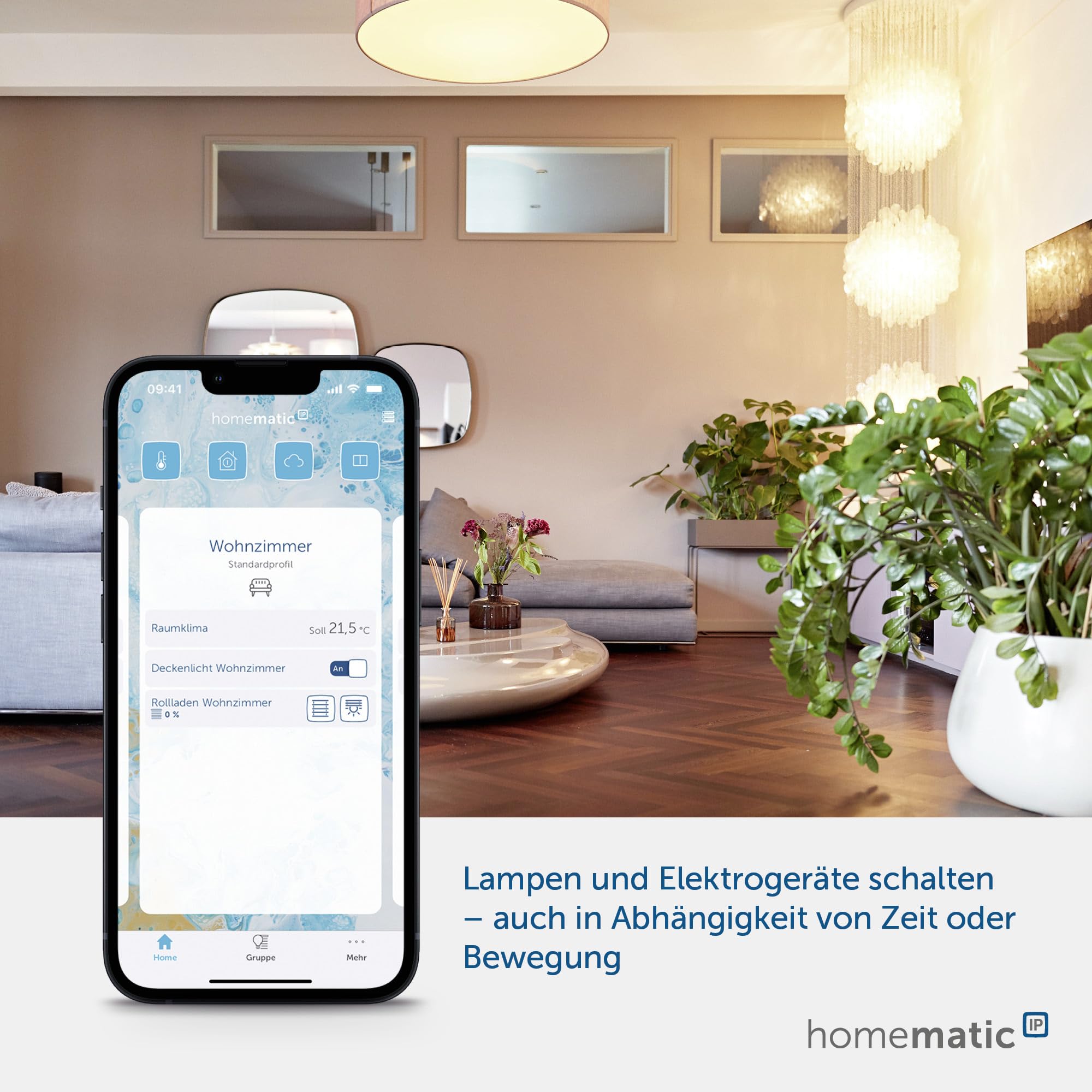 Durch einstellbare Zeitprofile kann das Schalten der Beleuchtung individuell an die Tagesabläufe der Bewohner angepasst werden. Flexible Kombinationsmöglichkeiten mit anderen Homematic IP Geräten ermöglichen zahlreiche weitere Steuerungsfunktionen und Automatisierungen.