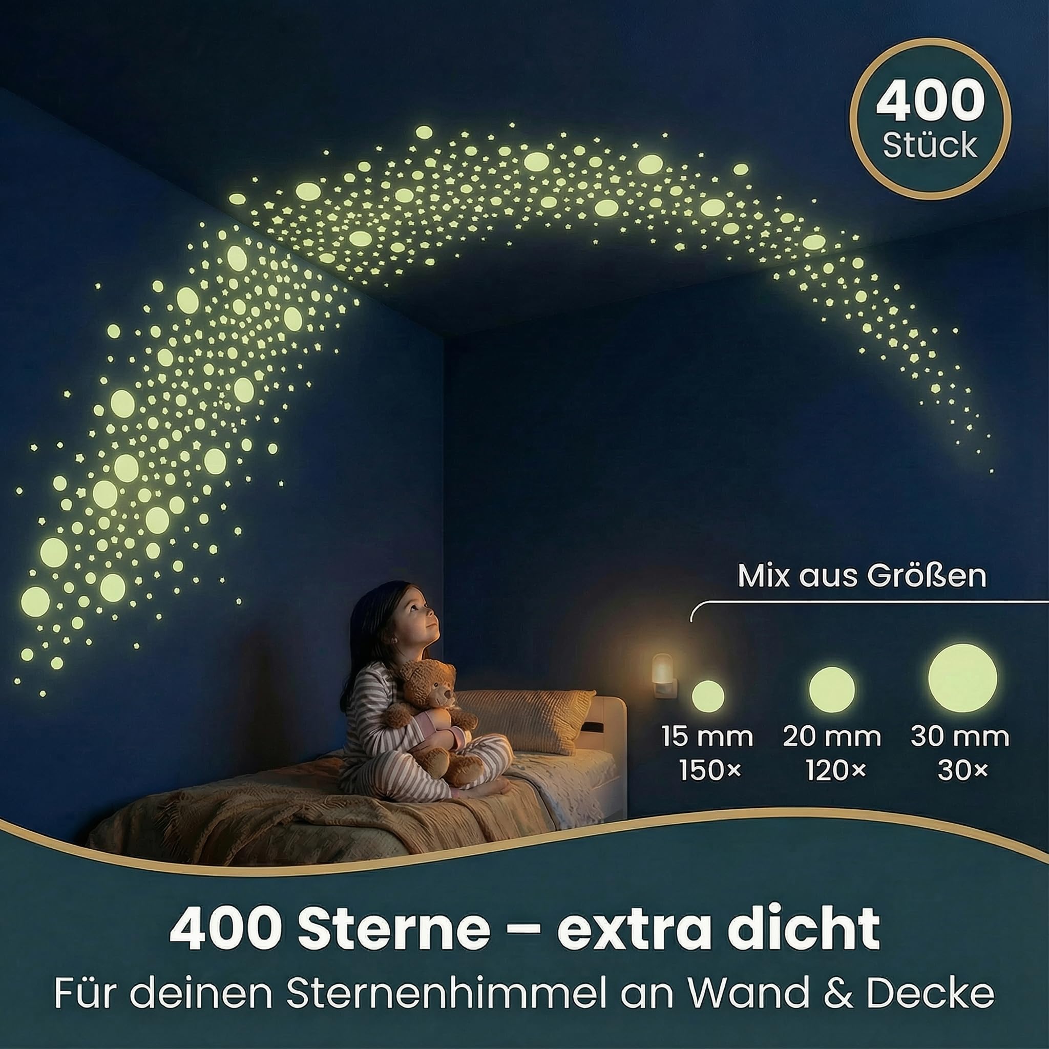 Leuchtsterne Kinderzimmer [400 Stück] - Leuchtsterne selbstklebend für Wand und Decke, leuchtende Sterne für Kinderzimmer, Sternenhimmel Aufkleber, Leuchtsticker, fluoreszierende Sterne