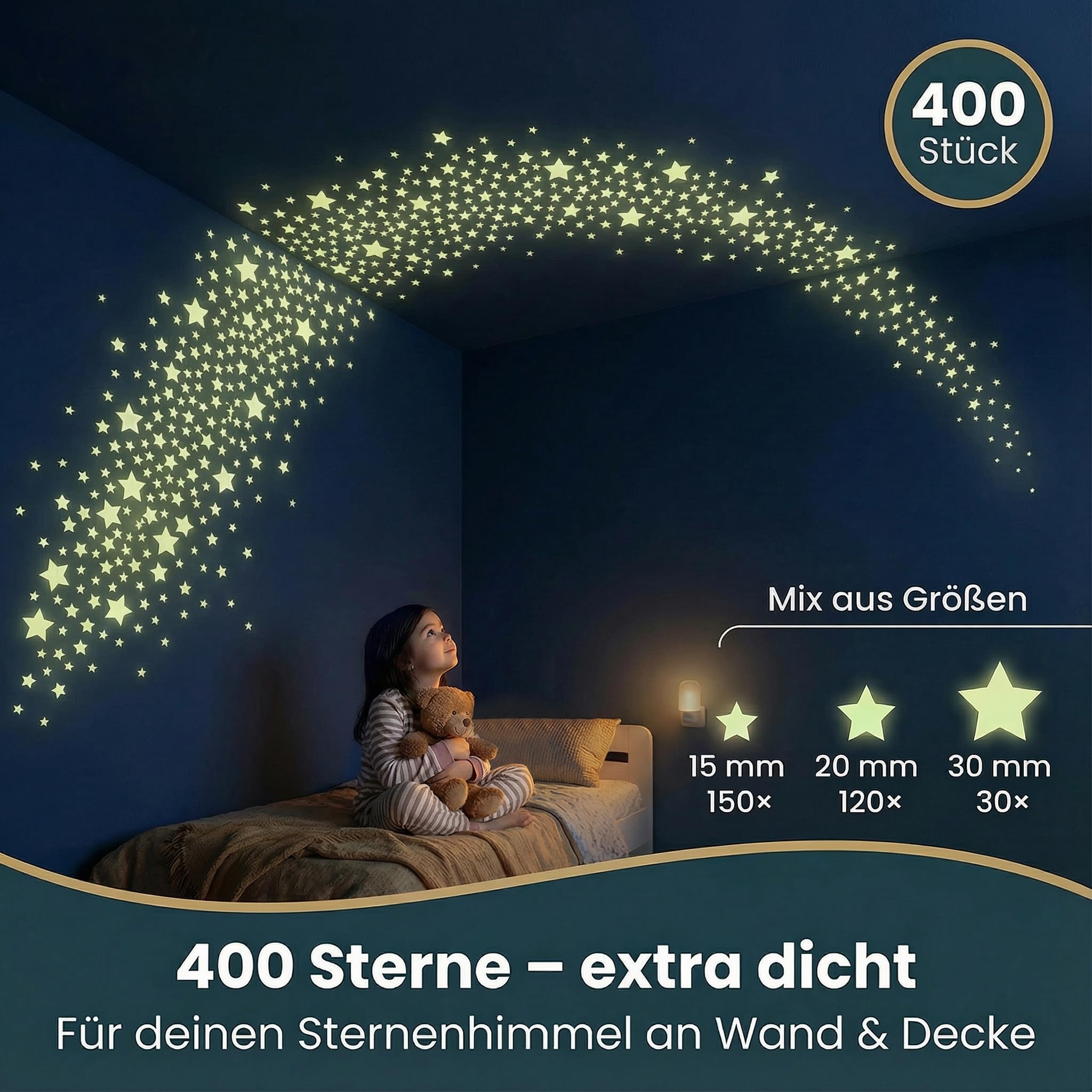 Homery Leuchtsterne Kinderzimmer [400 Stück] Leuchtsterne selbstklebend für Wand und Decke, leuchtende Sterne für Kinderzimmer, Sternenhimmel Aufkleber, Leuchtsticker, fluoreszierende Sterne