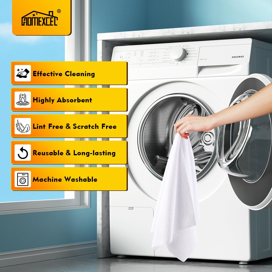 HOMEXCEL Weiss Microfasertücher 100 Stück, Mikrofasertücher Mikrofaser Reinigungstücher Putzlappen Küch Geschirrtücher für Küche,Glas, Auto, Motorrad, Fenster, 30 x 30 cm