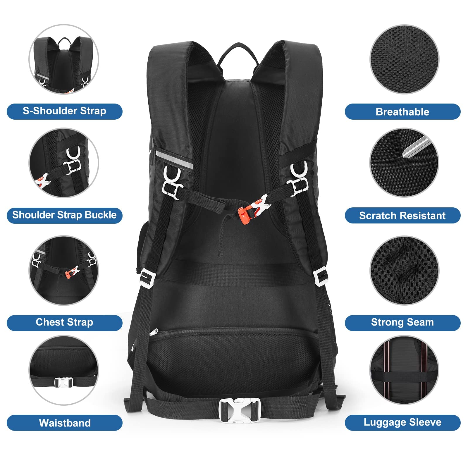 HOMIEE Wanderrucksack Herren Damen 45L Wasserdichter Rucksack Leichter Trekkingrucksack Gross Reiserucksack Sportrucksack mit Reflexstreifen für Campingplätze Radfahren Bergsteigen Reisen