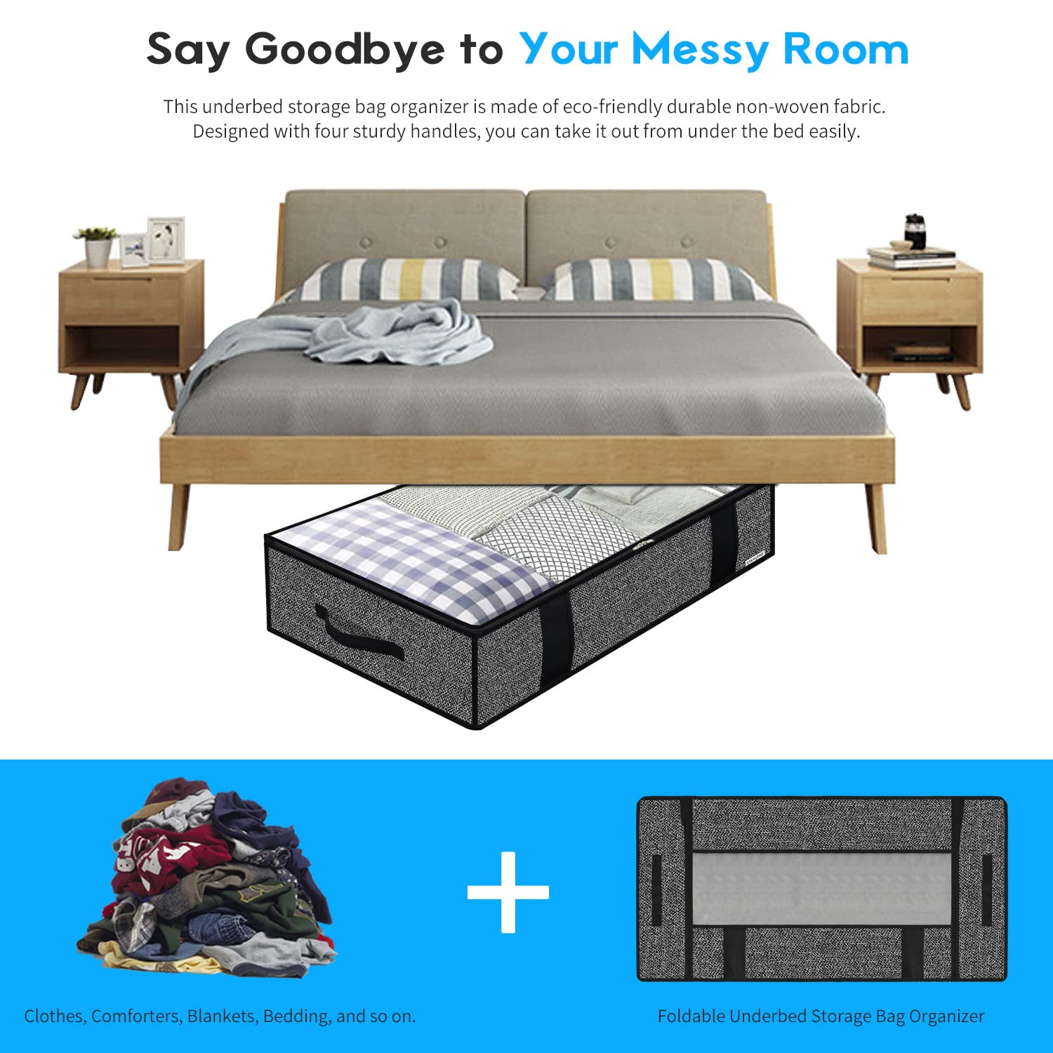 homyfort 2 Stück Premium Unterbettkommode mit Sichtfenster, Unterbett-Aufbewahrungstasche Kleideraufbewahrung, Decken Organisator Lagerbehälter, 4 Haltegriffen, 100x 50x 15 cm, Schwarz Leinen, DEXAUBBP2
