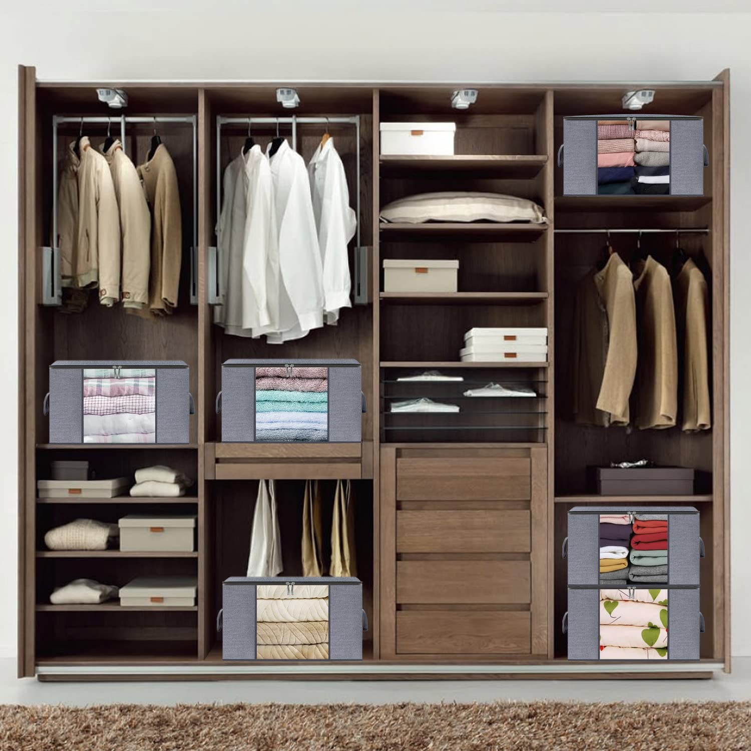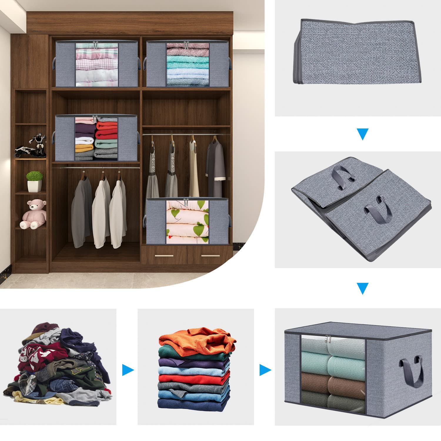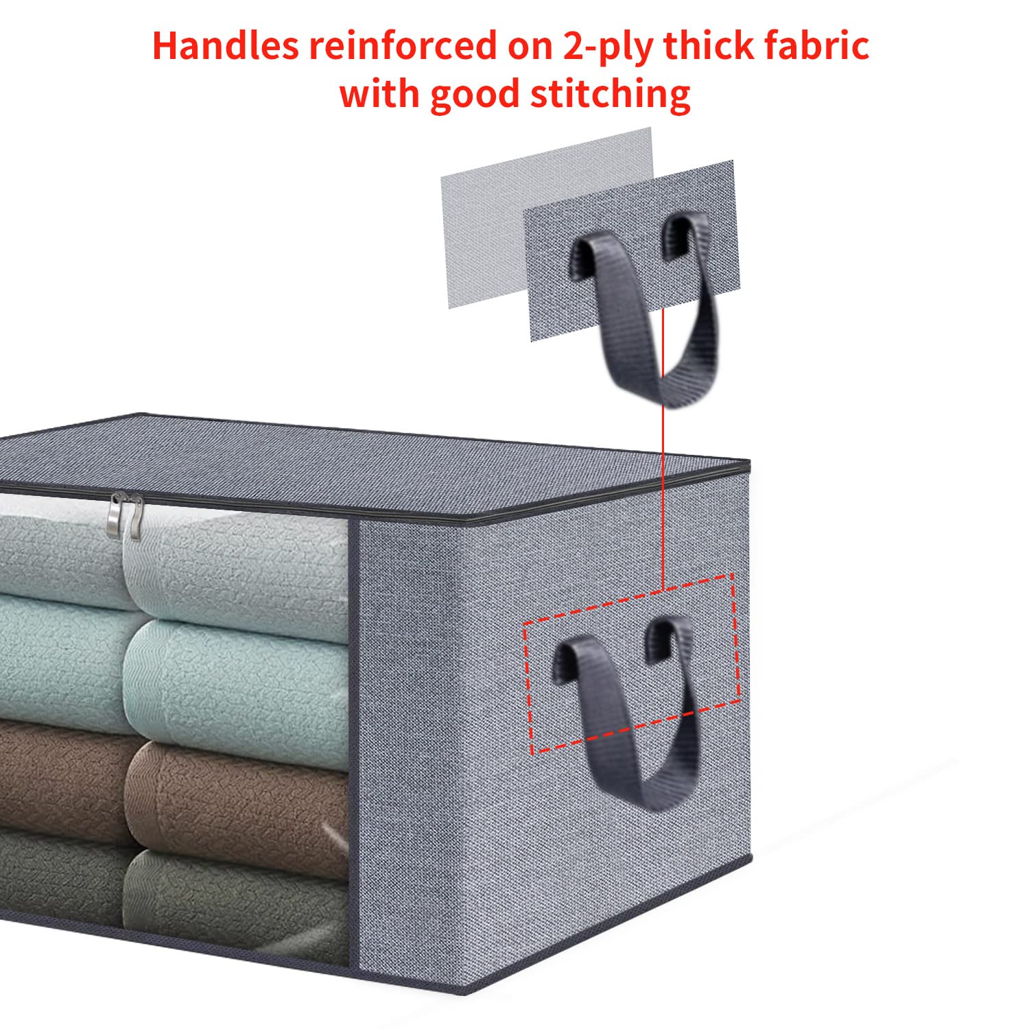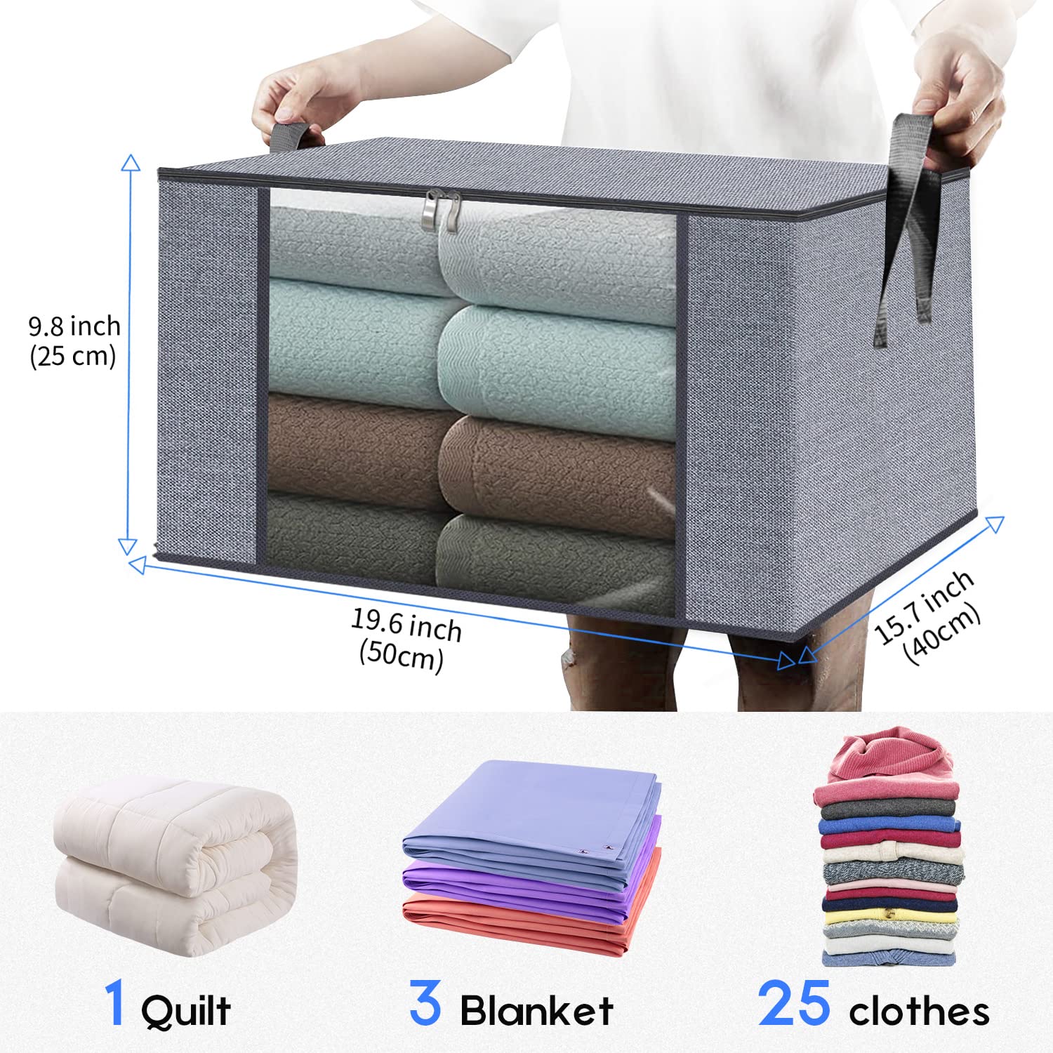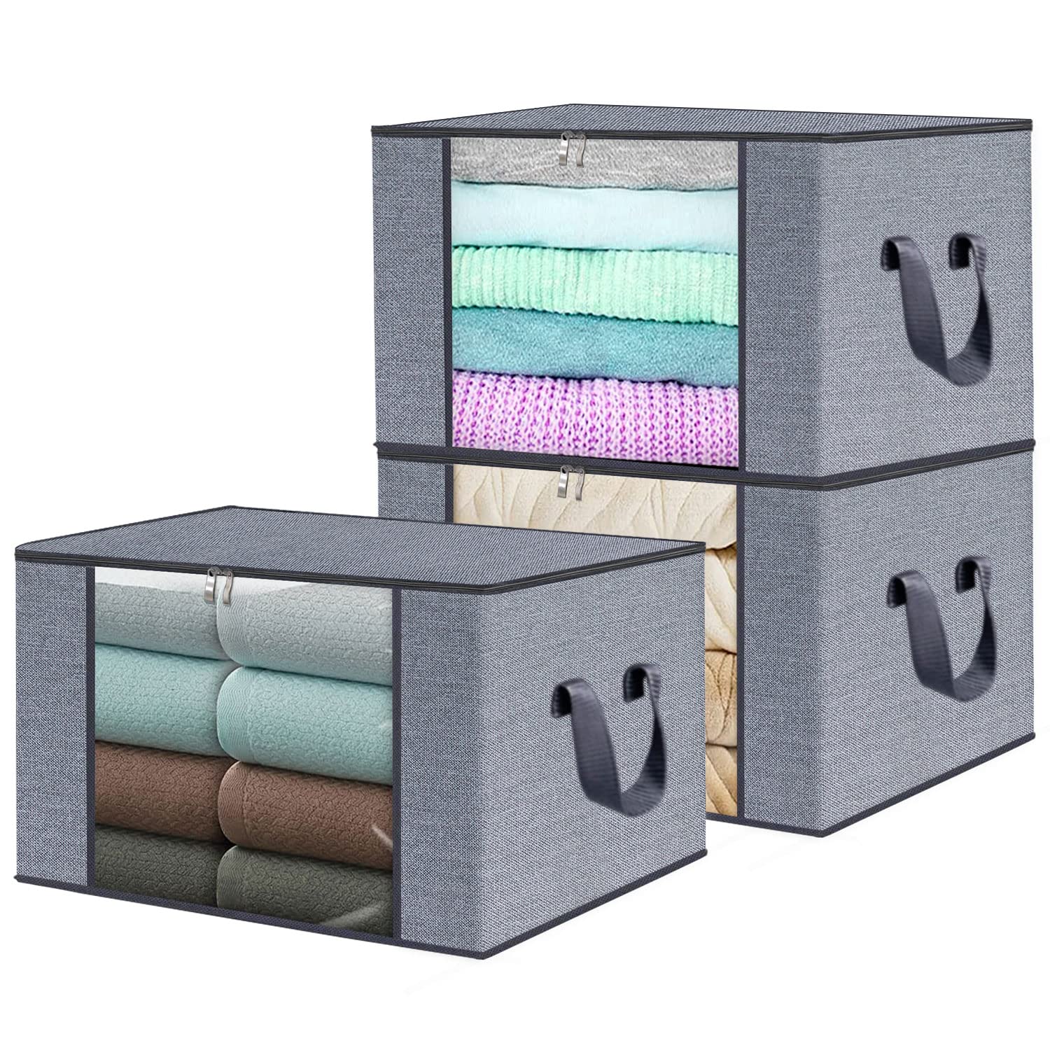 homyfort 3 Stück Aufbewahrungstasche für Bettdecken und Kissen - Kleidung Lagerplätze, Decken Organisator Lagerbehälter, Haus bewegen Tasche Feuchtigkeit Geschützt, 50x40x25cm 50L, Hellgrau, X3MR50S