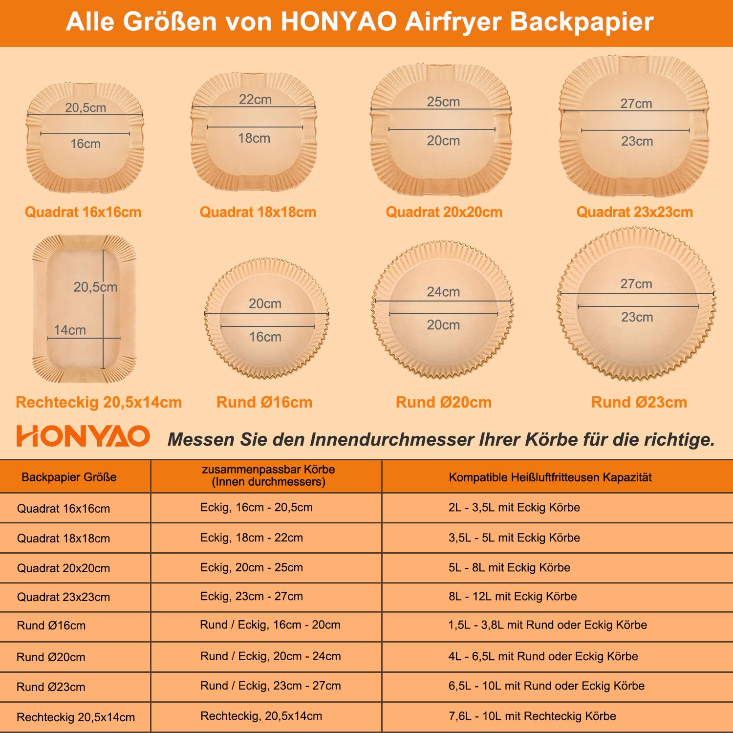 HONYAO Backpapier für Heissluftfritteuse 2-3,5 L, 200 Stück Quadrat 16x16 cm Air fryer Baking Papier Liners Antihaft Einwegpapier Zubehör kompatible mit Philips Cosori Xiaomi Airfryer