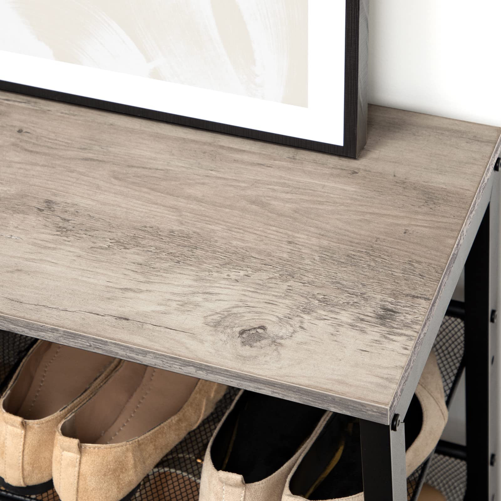 Sie werden feststellen, dass sogar ein Schuhbank so schön sein kann. Die Platte jeder Schicht kann auf flach oder geneigt eingestellt wird. Es hängt alles von Ihnen oder der Höhe Ihrer Schuhe ab. Anpassen ist so einfach und doch grossartig!