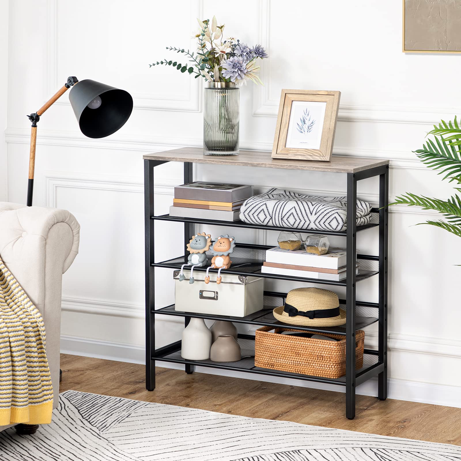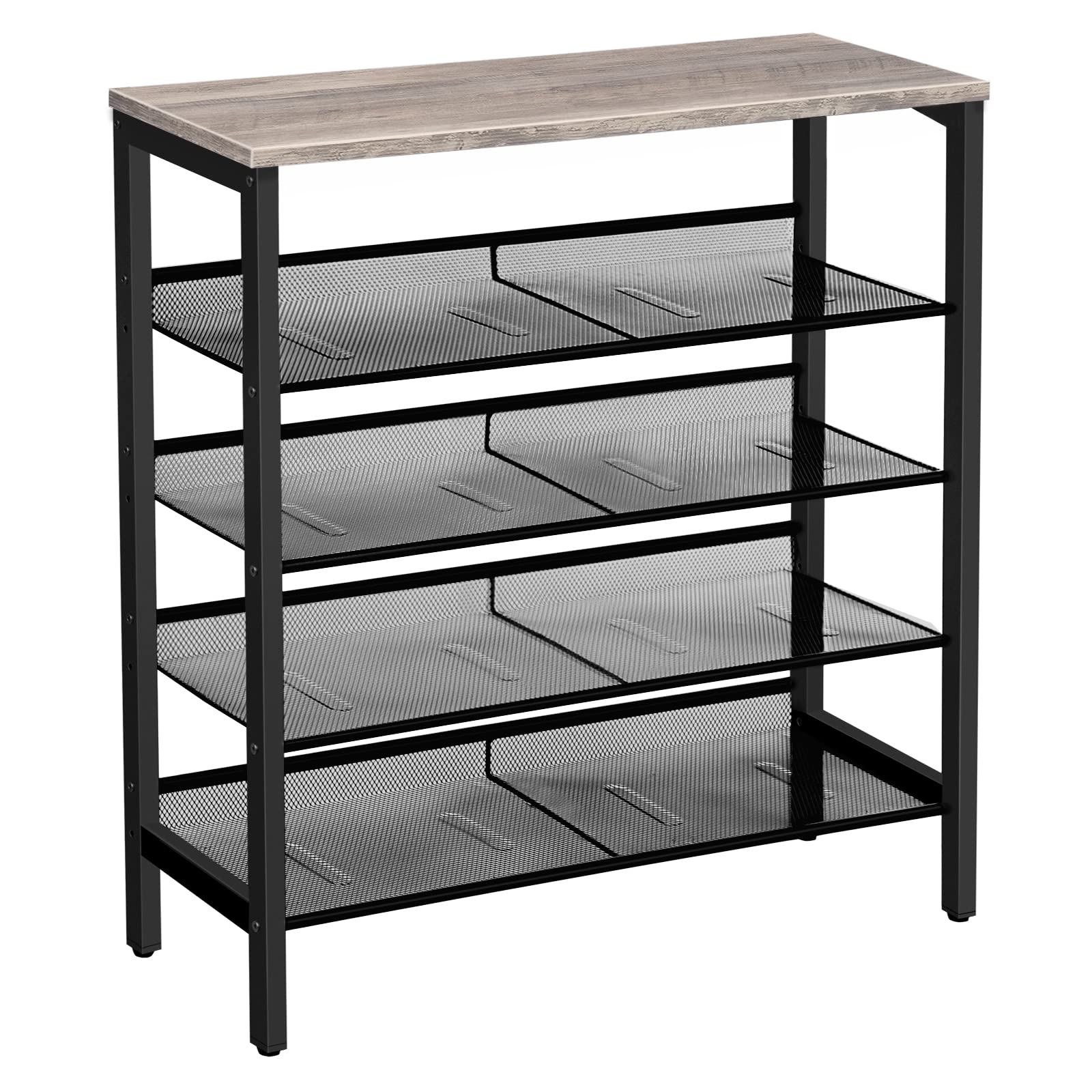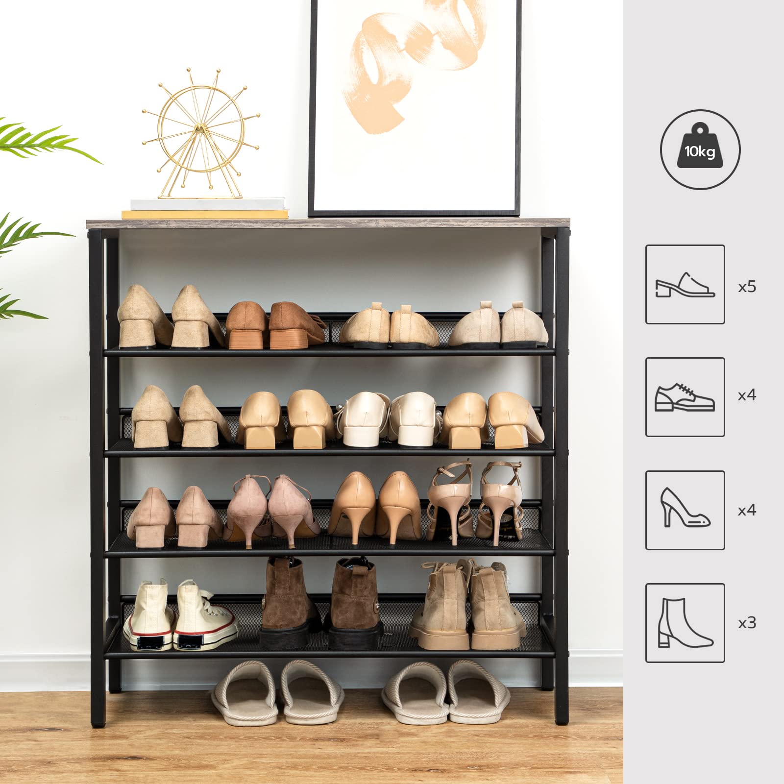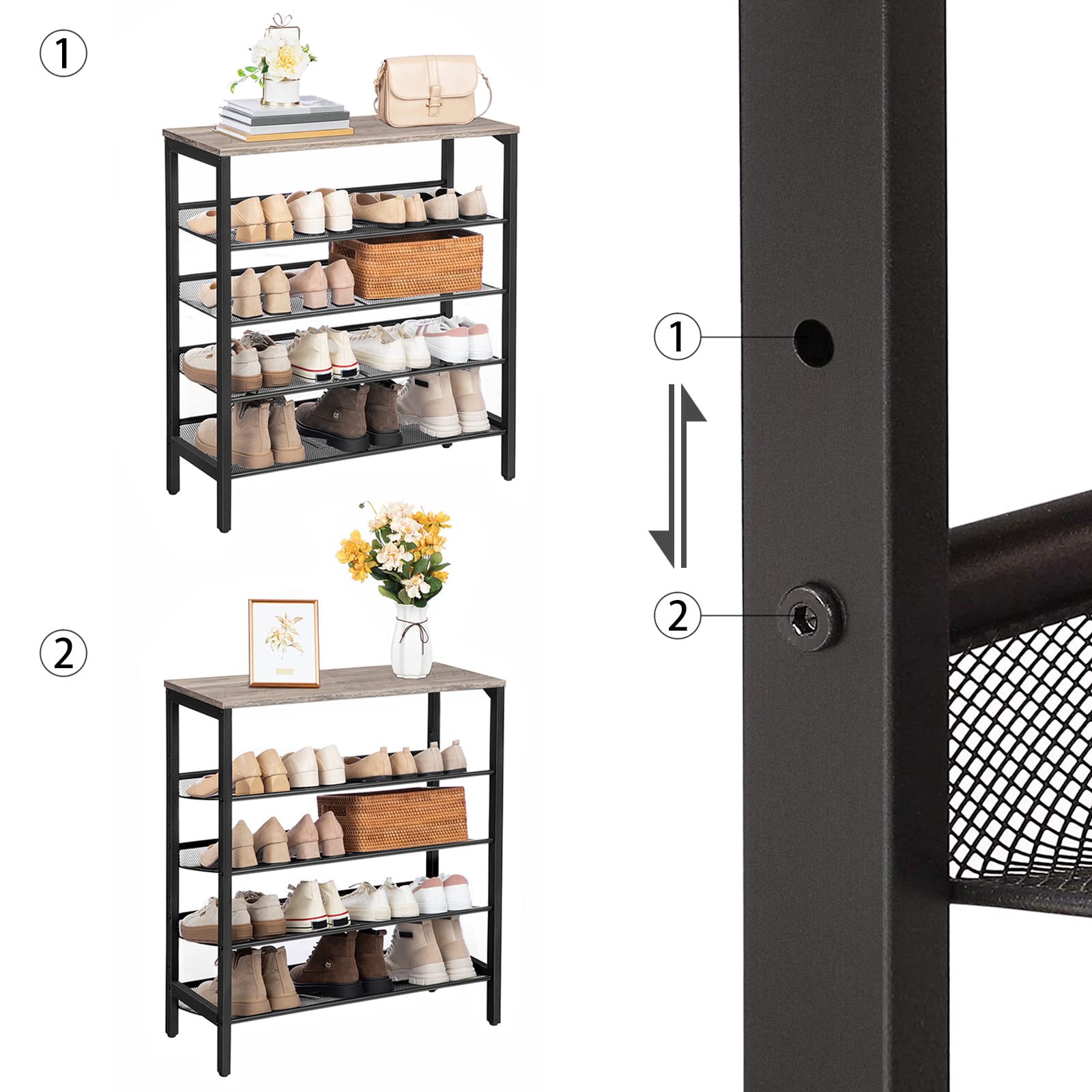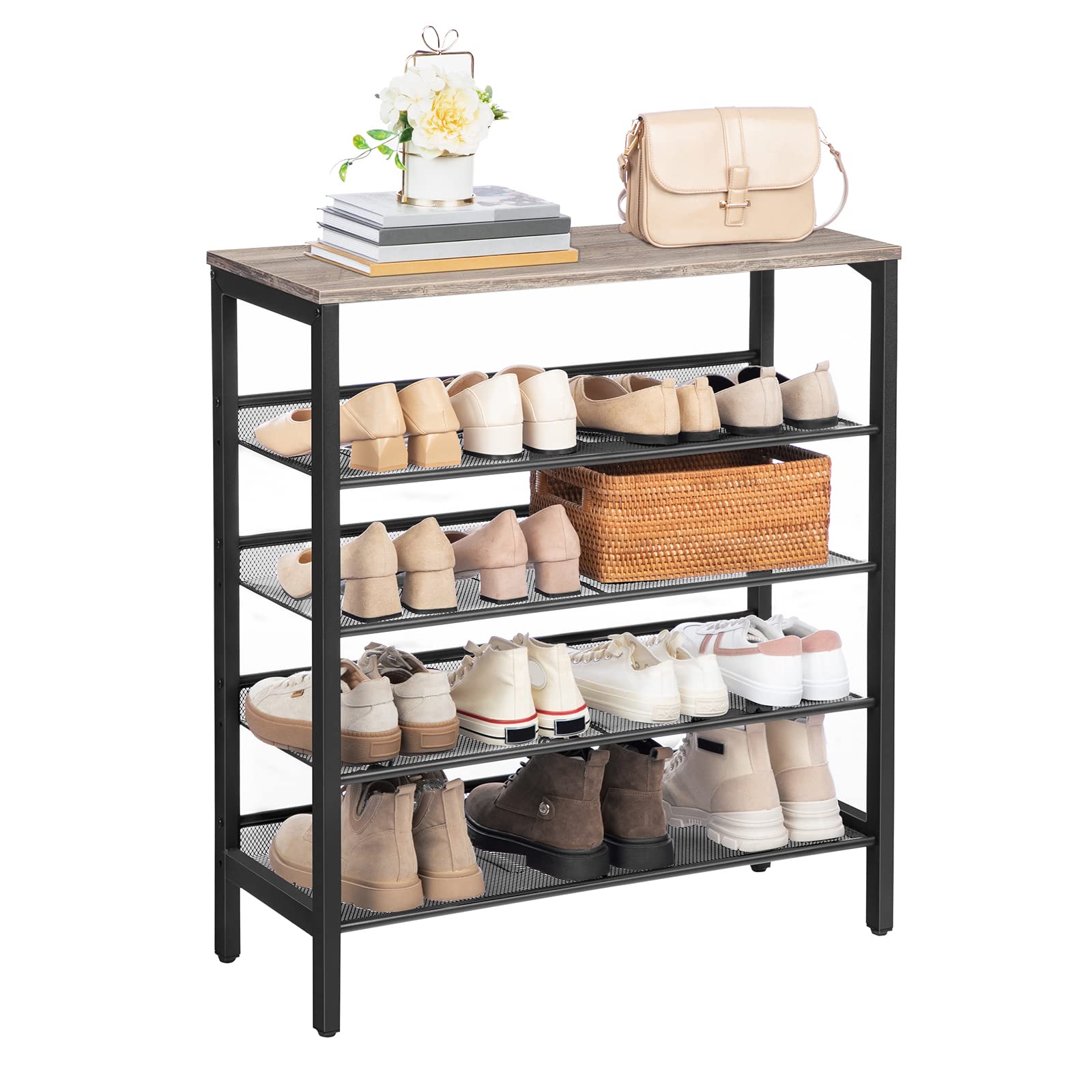 HOOBRO Schuhregal, 5-lagiges Schuhschrank, Verstellbares Schuhablage, Flach und Neigbar, Langlebig und Stabil, Metall, Eingang, Korridor, Industrie, Greige-Schwarz EBG01XJ01