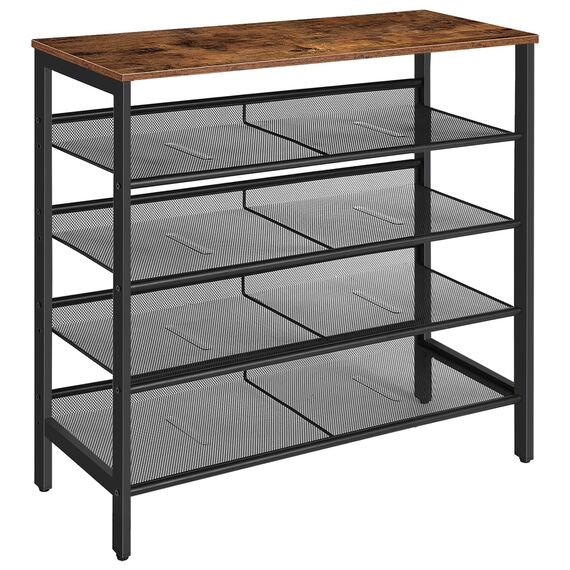 HOOBRO Schuhregal, 5-lagiges Schuhschrank, Verstellbares Schuhablage, Flach und Neigbar, Langlebig und Stabil, Metall, Eingang, Korridor, Industrie, vintagebraun-schwarz EBF01XJ01
