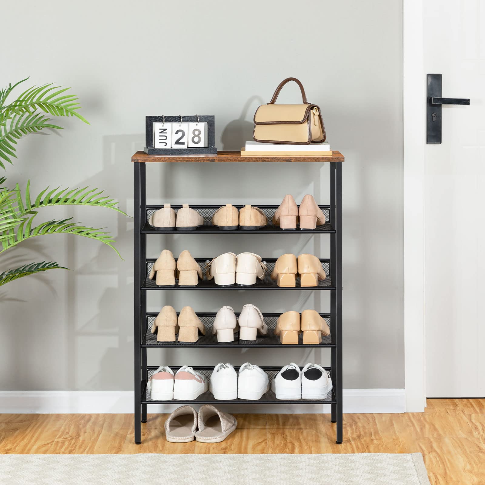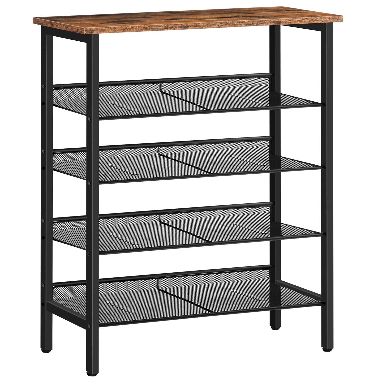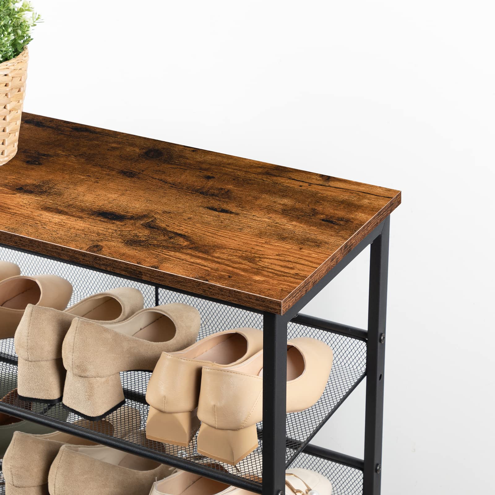 HOOBRO 5-lagiges Schuhregal, Verstellbares Schuhablage, schmal Schuhschrank, Flach und Neigbar, Stabil, Metall, Eingang, Korridor, Industrie, vintagebraun-schwarz EBF106XJ01