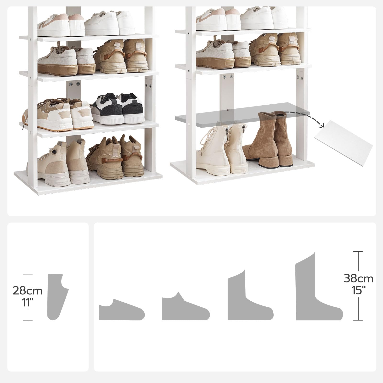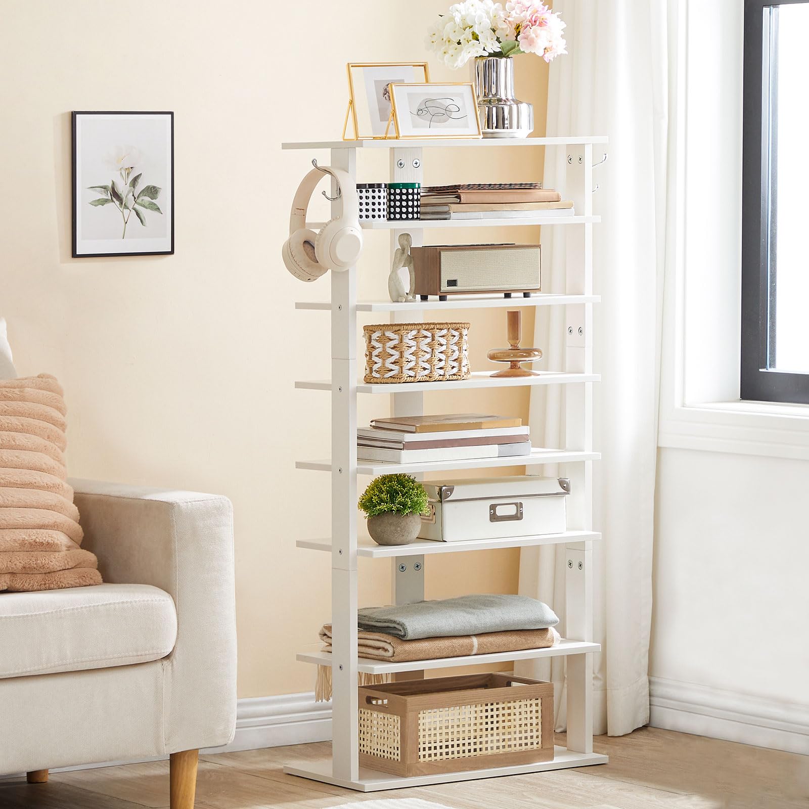 HOOBRO 8-lagiges Schuhregal, schmales Schuhablage, 50 cm Schuhschrank mit 2 Haken, Ablagegestelle, platzsparend, Eingang, Wohnzimmer, Weiss EWT750XJ01