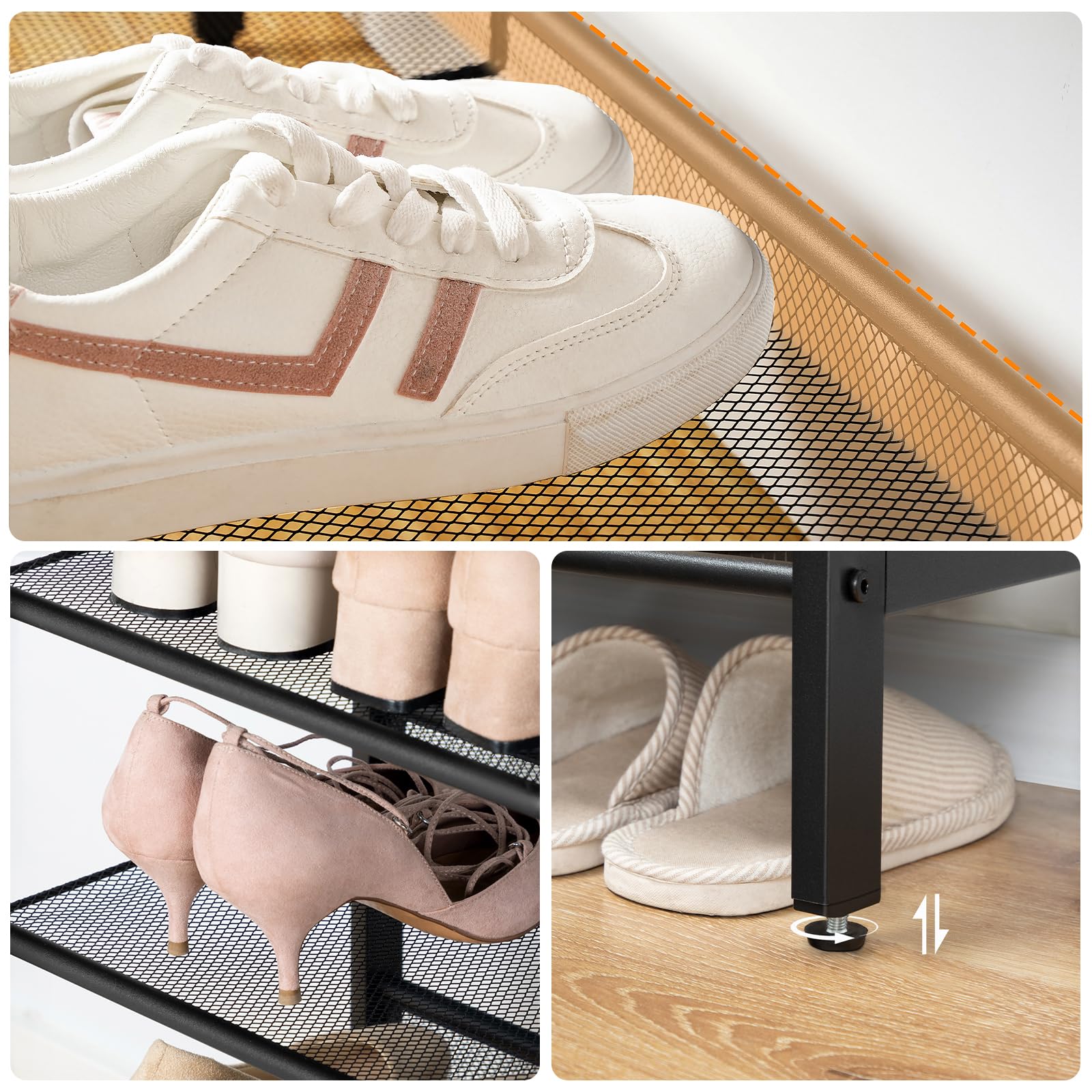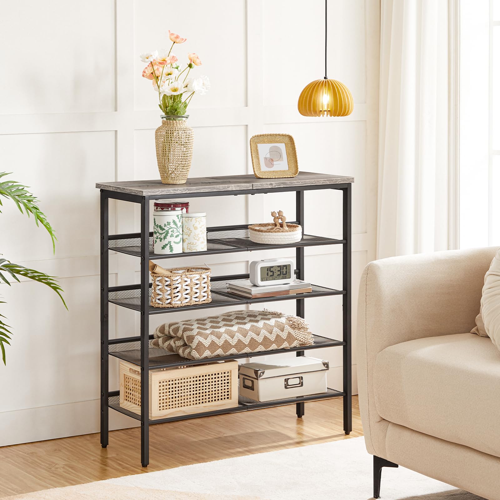 HOOBRO Schuhregal, 5-stöckiges Schuhablage, Schuhschrank, verstellbares Metallgitterregal, Geräumige Oberseite, für 16-20 Paar Schuhe, Eingang, Korridor, Industrie, Greige-Schwarz EBG12XJ01