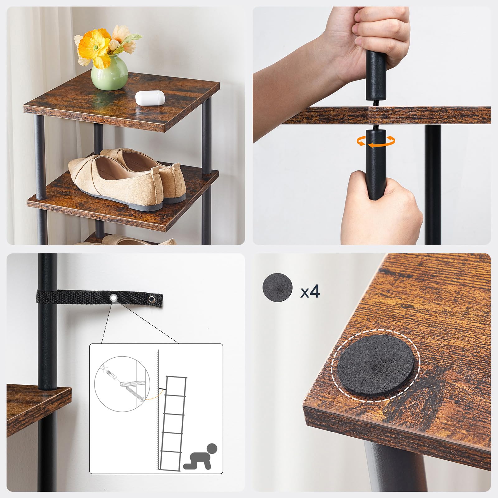 HOOBRO Schuhregal, 6-lagiges Eckschuhregal, schmales Schuhablage, Schuhschrank, Schuhständer, Flur, Schlafzimmer, Dunkelbraun-Schwarz EBF21XJ01
