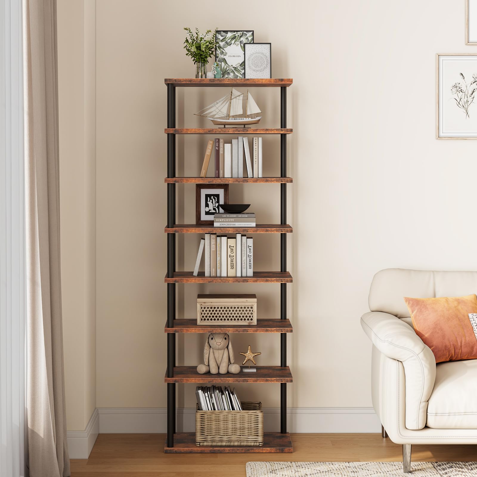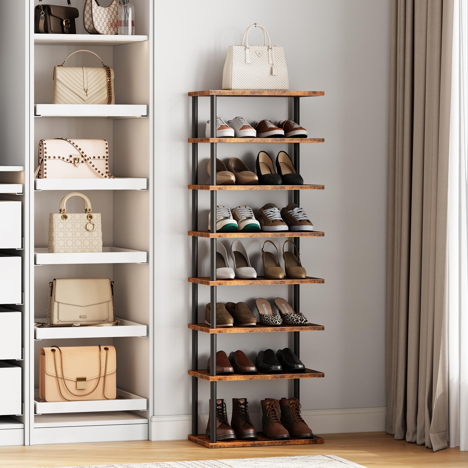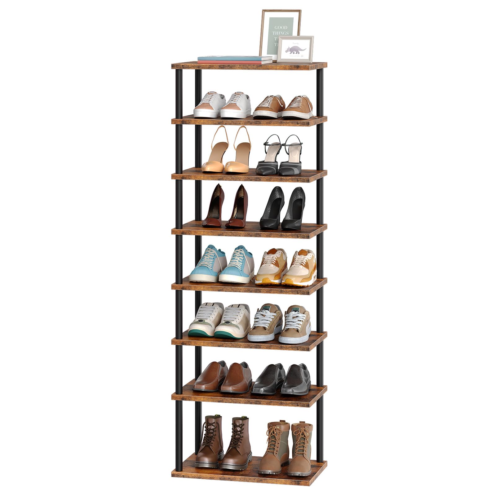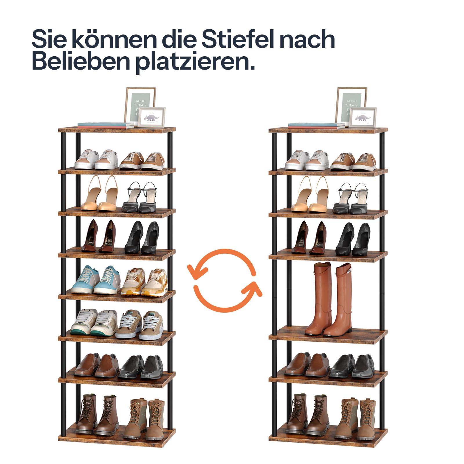 HOOBRO Vertikales Schuhregal, 8-lagiges Schuhregal, schmales Schuhablage, Schuhschrank, Schuhständer, Verdrehstruktur, für Eingang, Flur, Wohnzimmer, Schlafzimmer, Vintagebraun und Schwarz EBF488XJ01