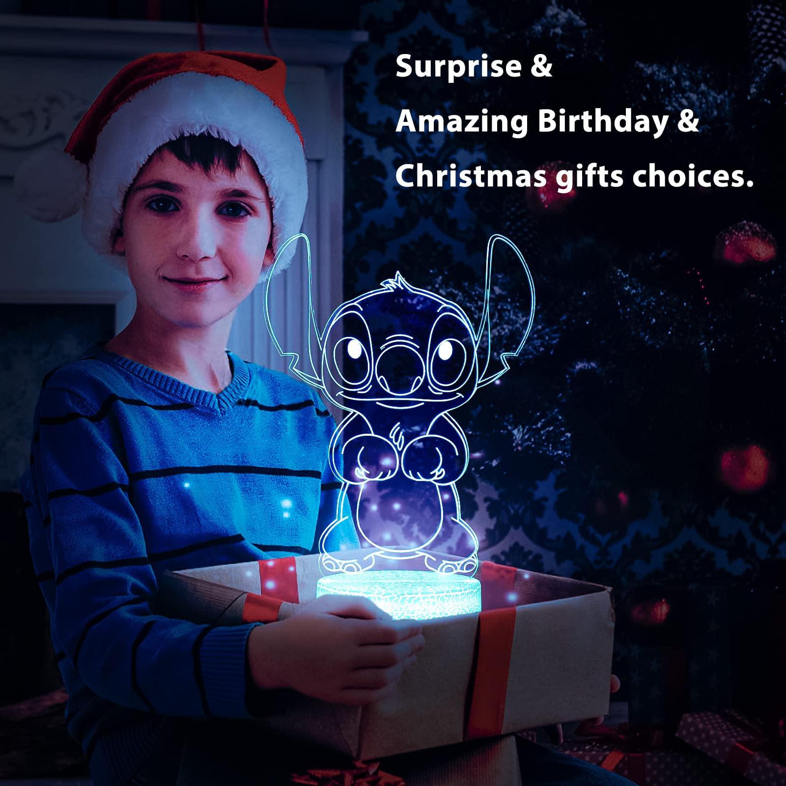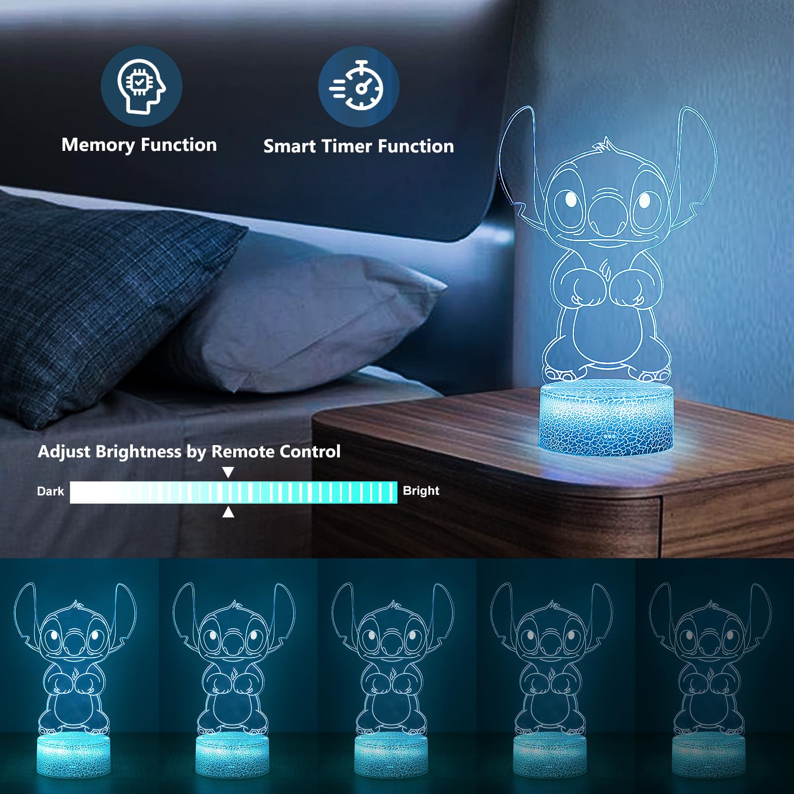 Hoofun Stitch Lampe mit Timer, 16 Farben 3D LED Illusion Anime Nachtlicht mit Fernbedienung, Memory-Funktion und Smart Touch, Stich Stuff Merch Geschenk für Kinder Geburtstag Zimmer Deko