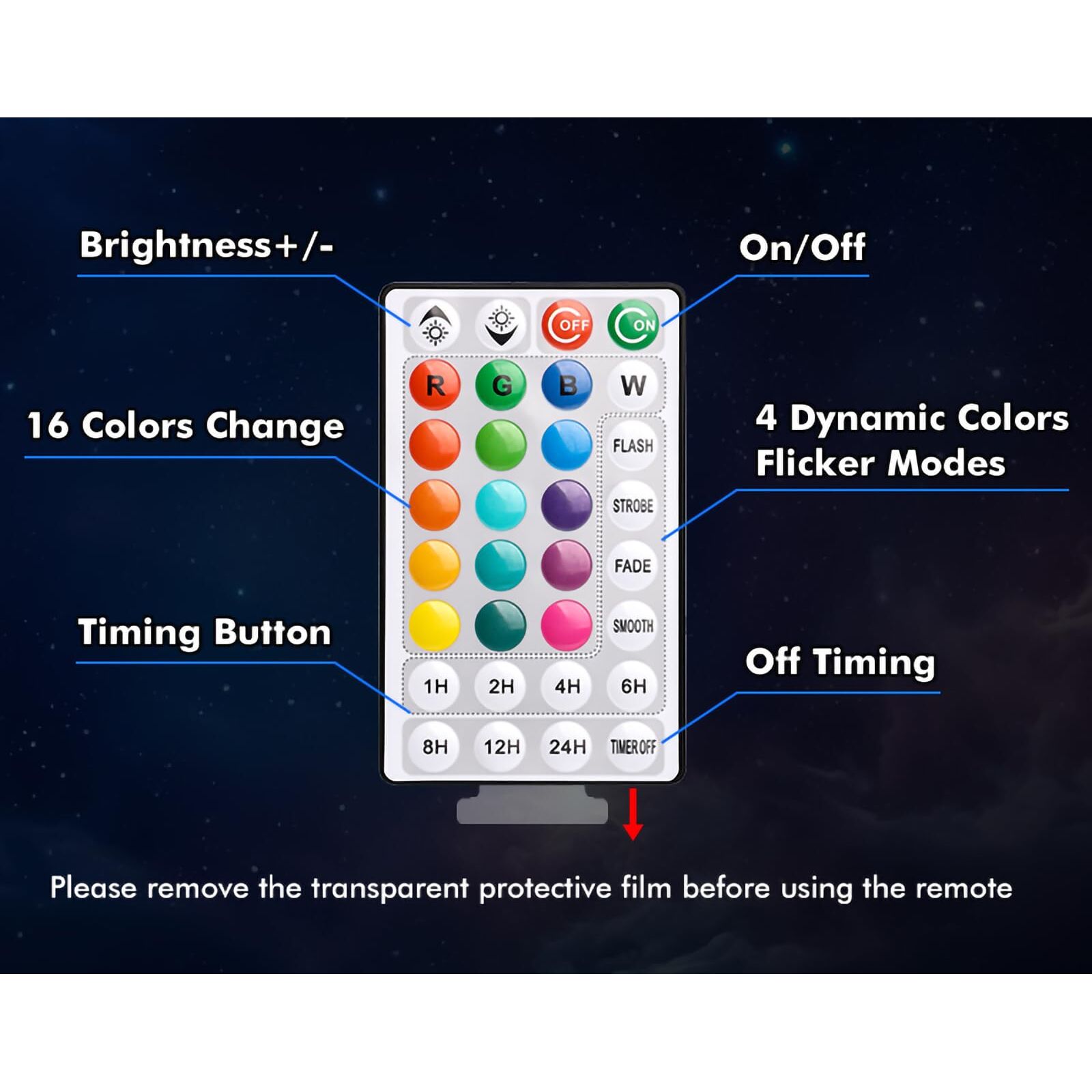 Produktname: Hoofun ST 3D LED Nachtlicht Typ: Schlafzimmer, Tisch, Nachtlampe, Dekoration Spannung: 5V Leistung: 3W Materialien: Acryl, ABS Gewicht: 0,24 Kilogramm Abmessungen: 21*15*6cm Lebensdauer: mehr als 10 Millionen Stunden Stromversorgung: USB-Kabel (Adapter nicht im Lieferumfang enthalten) oder 3AA-Batterie (nicht im Lieferumfang enthalten) Wie benutzt man: Drücken Sie + Steuern Sie die Fernbedienung. 1. 16 Farbwechsel: Rot-Grün-Blau-Gelb-Lila-Cyan-Weiss 2. Jeder Schlüssel, einzigartiger Farbwechsel 3. Bei der nächsten Berührung ändern sich 16 Farben automatisch, gleichmässig und reibungslos 4. Berühren Sie Weiter, 16 Farben ändern sich automatisch Energie sparen. Stromverbrauch: 0,012 kWh/24 Stunden LED-Lebensdauer: 10.000 Stunden Es kann als leichte Dekoration im Schlafzimmer, Kinderzimmer, Wohnzimmer, in der Bar, im Geschäft, im Café, im Restaurant usw. platziert werden. Das Paket enthält: 1x Acrylplatte 1x ABS-Basis 1x USB-Kabel 1x Fernbedienung 1x Bedienungsanleitung Beratung: 1. Um das Licht heller zu machen, entfernen Sie bitte vor dem Gebrauch die Schutzfolie. 2. Die Schutzfolie kann entfernt werden. Damit die Fernbedienung normal funktioniert, stellen Sie sicher, dass Sie das Papier von der Unterseite der Fernbedienung entfernen und dass sich zwischen ihnen keine Hindernisse befinden.