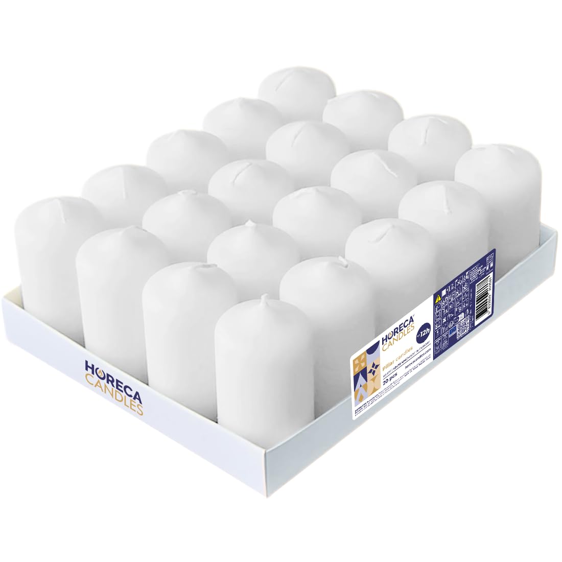 Horeca Candles - Stumpenkerzen - Weiss - Ø 4 x 7 cm - 20er Set Blockkerzen - Lange Brenndauer 12 Stunden - Ohne Duft - Kerzen für Haushalt, Feiern und Gastronomie