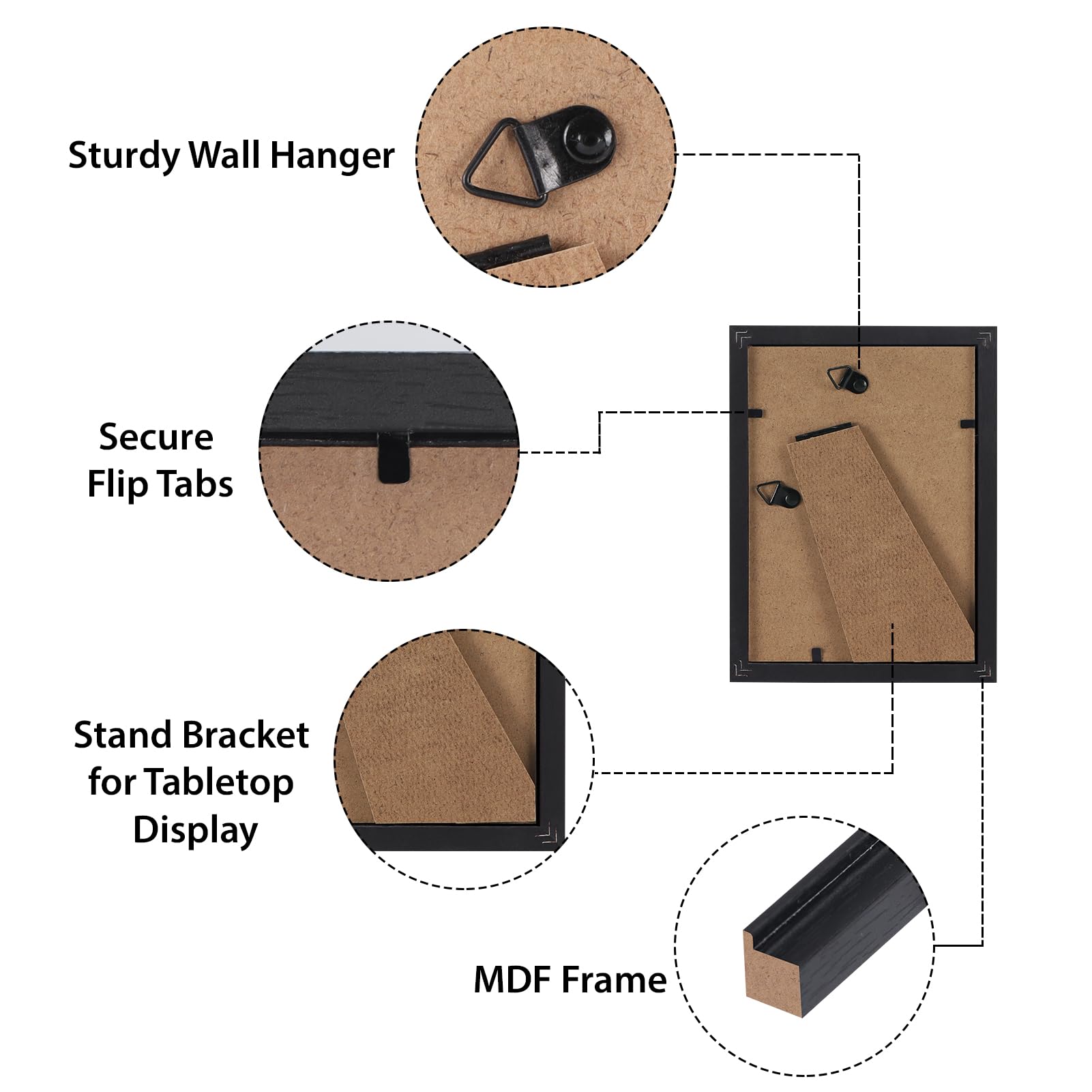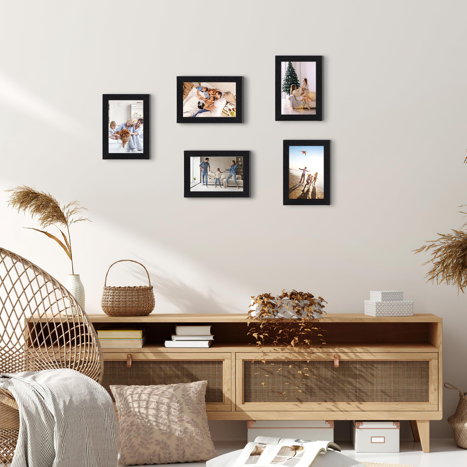 HORLIMER 15er Bilderrahmen Set 10x15 cm, Schwarz Bilderrahmen mit Holzmaserung, Fotorahmen Collage für 15x10 Fotos und Bilder, Wand- oder Tischaufstellung
