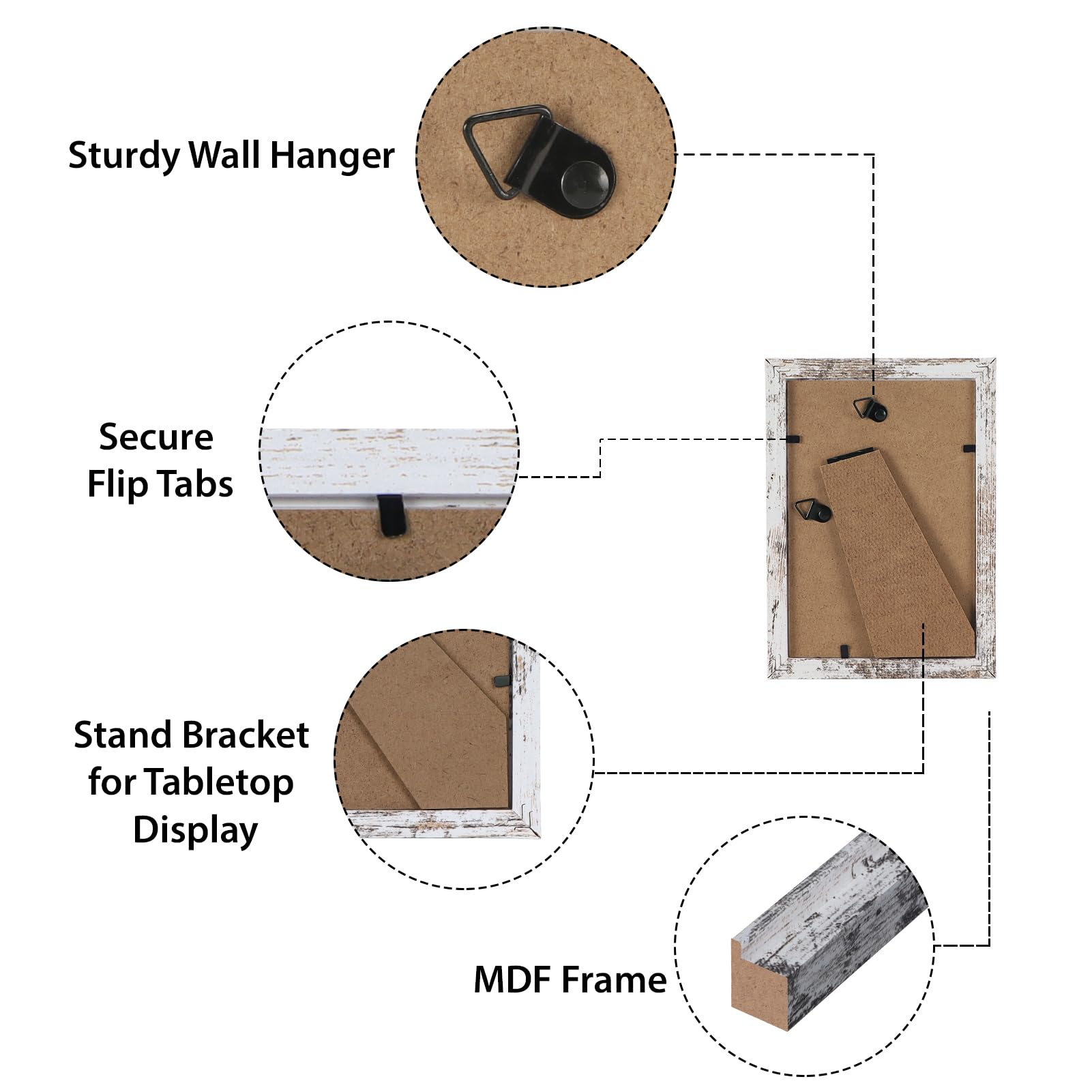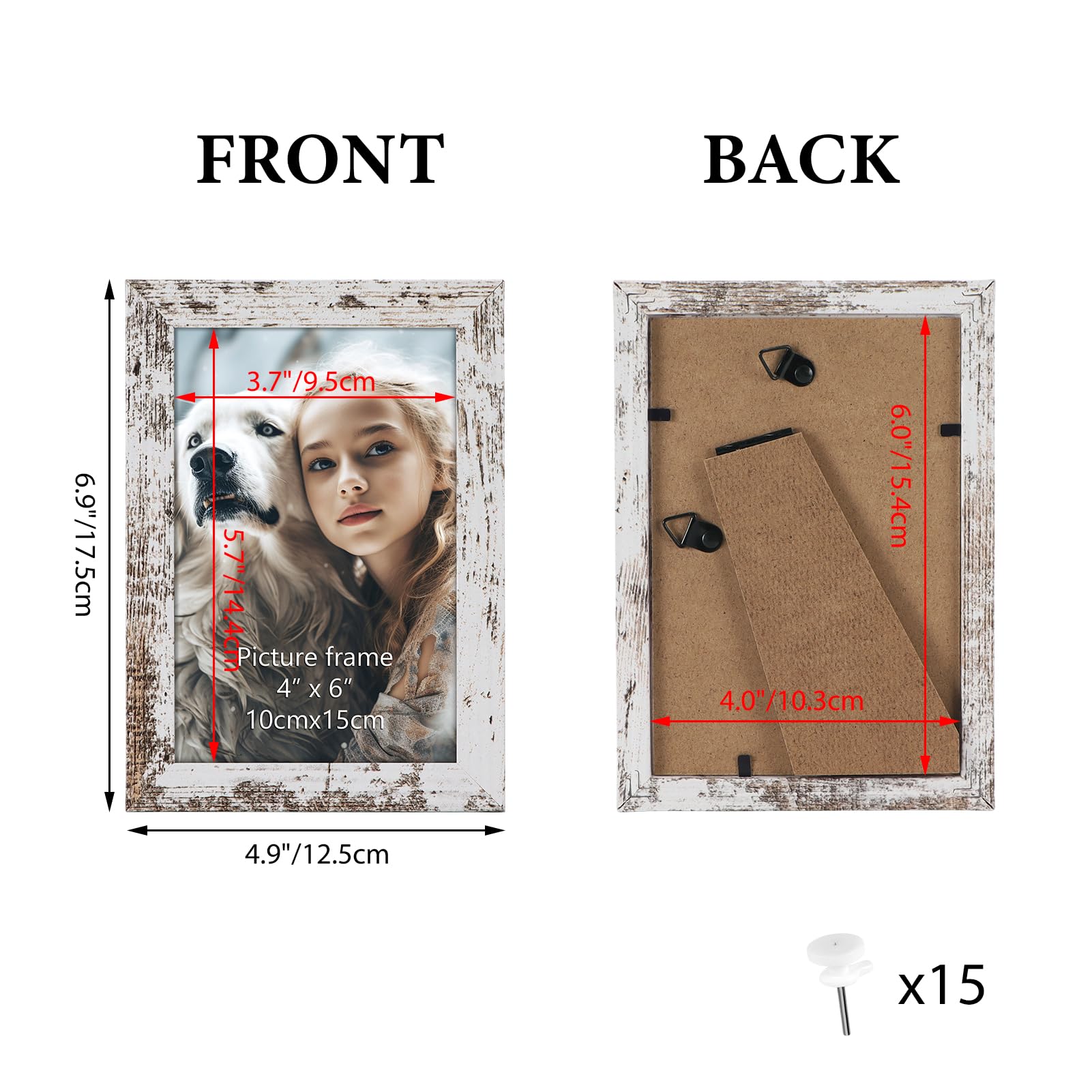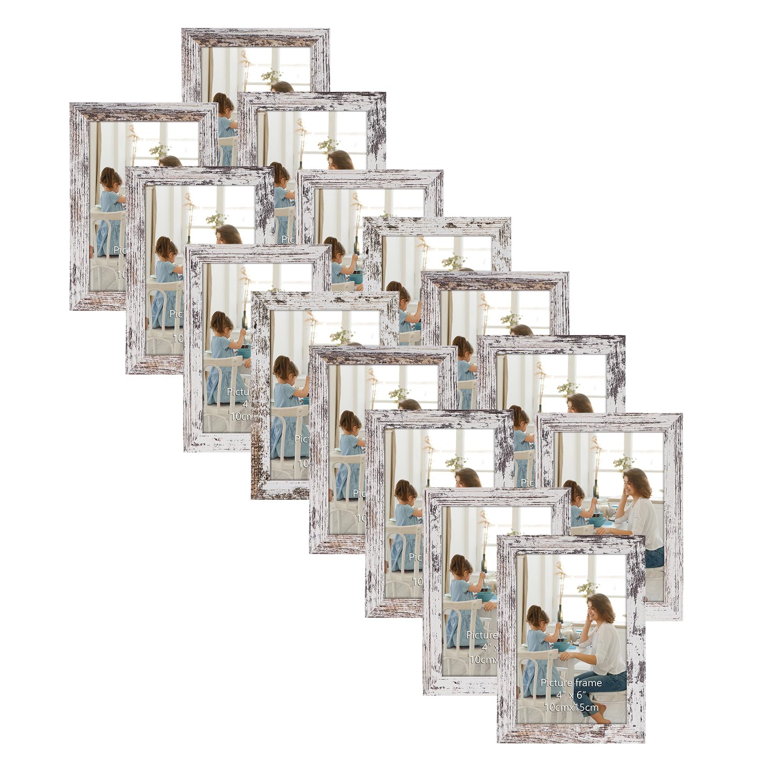 HORLIMER 15er Set Bilderrahmen 10x15 cm, Vintage-Weiss mit Verwitterter Maserung, Rustikale Fotorahmen Collage für 15x10 Fotos und Bilder, Wand- oder Tischaufstellung
