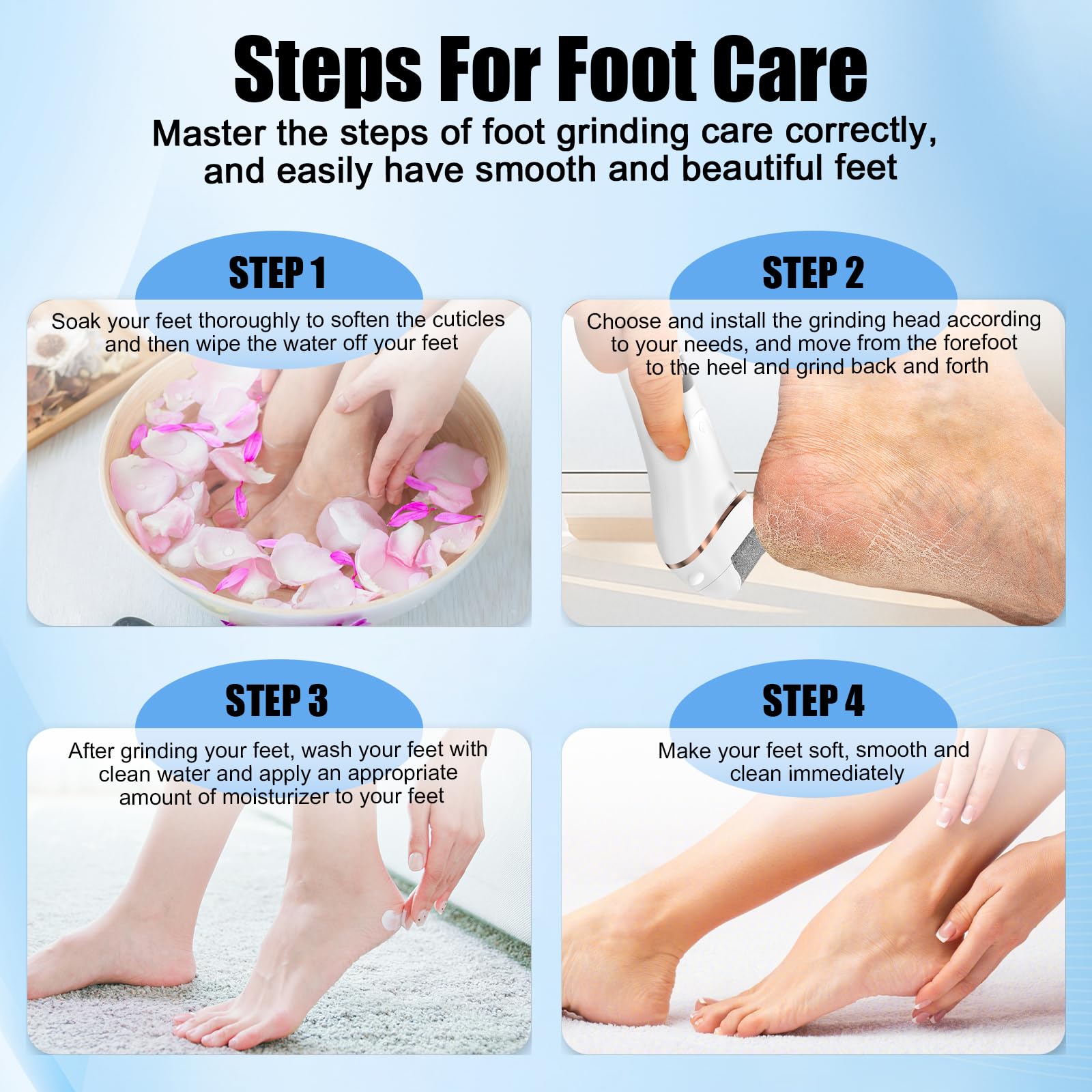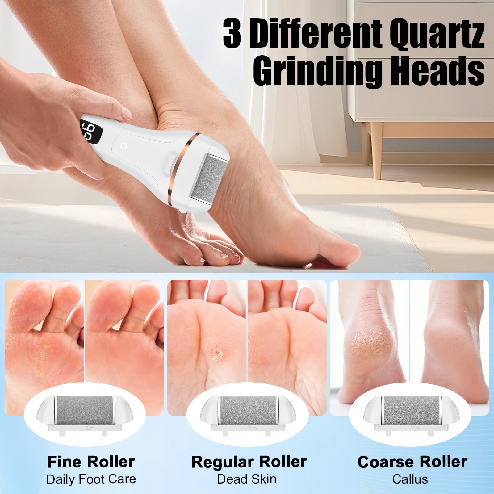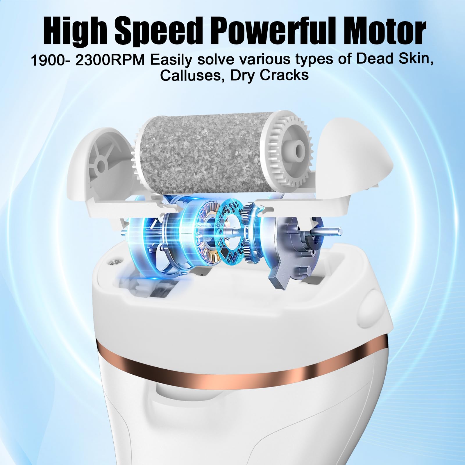 Hornhautentferner Elektrisch - Hornhaut Entfernen Fuss - Fusspflege Set Professionell mit 6 Ersatzrollen 2 Gear Hornhautentferner Pediküre Hornhautfeile Callus Remover für Fusspflege (Weiss-6)