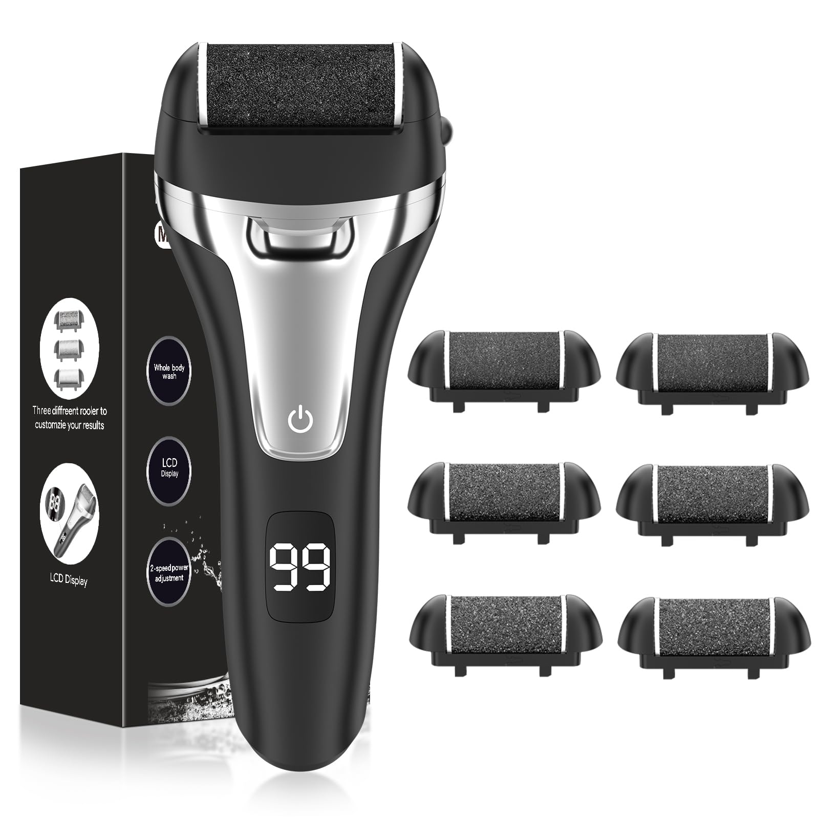 Hornhautentferner Elektrisch - Hornhaut Entfernen Fuß - Fusspflege Set Professionell mit 6 Ersatzrollen 2 Gear Hornhautentferner Pediküre Hornhautfeile Callus Remover für Fußpflege (Schwarz-6)