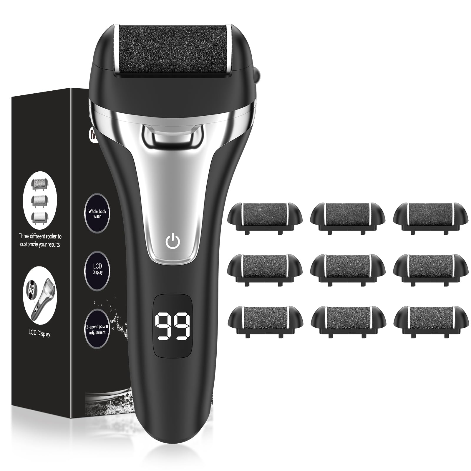 Hornhautentferner Elektrisch - Hornhaut Entfernen Fuss - Fusspflege Set Professionell mit 9 Ersatzrollen 2 Gear Hornhautentferner Pediküre Hornhautfeile Callus Remover für Fusspflege (Schwarz-9)