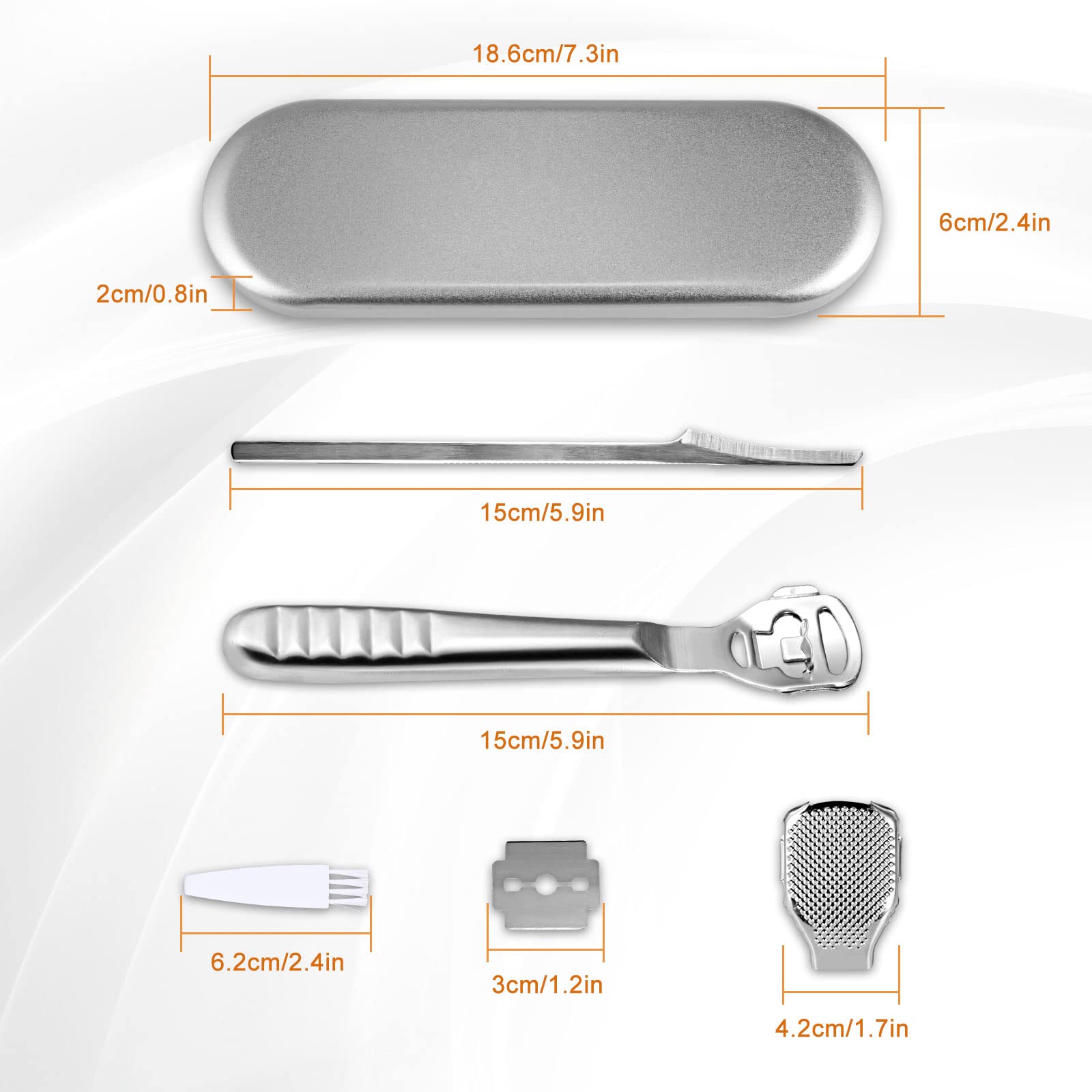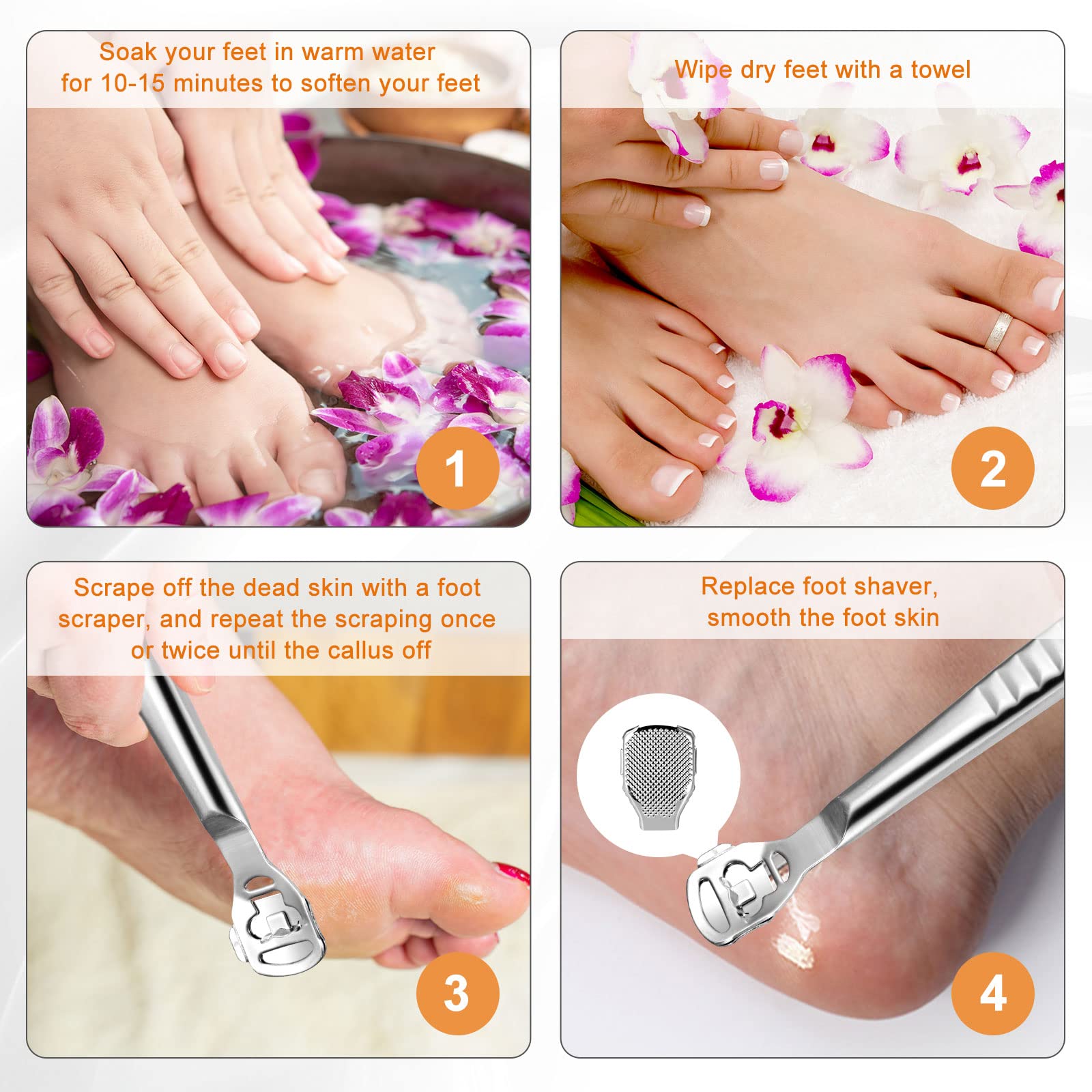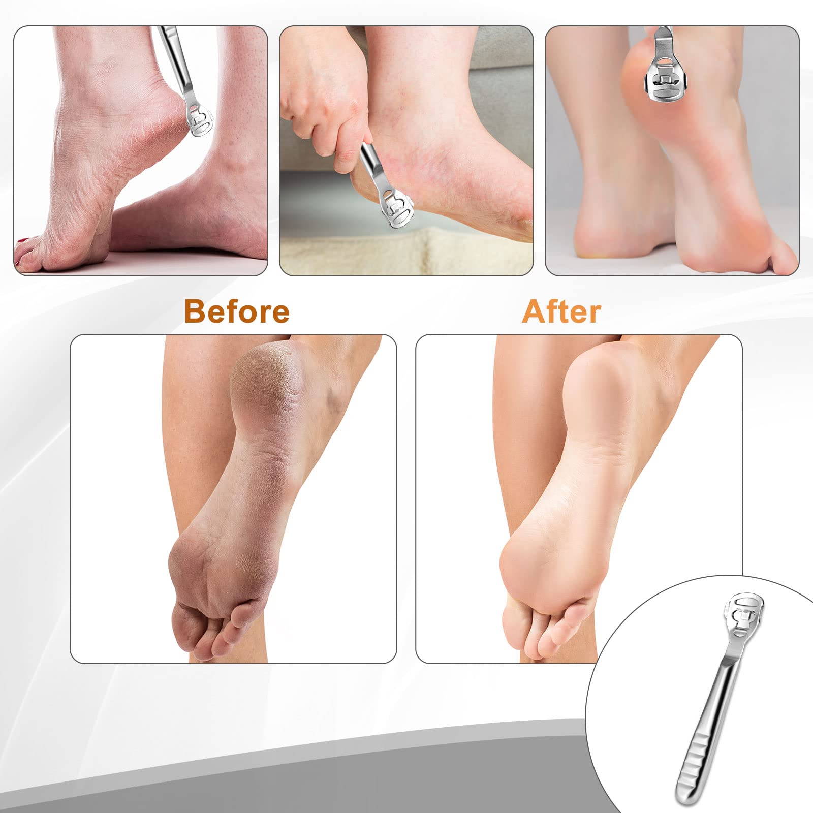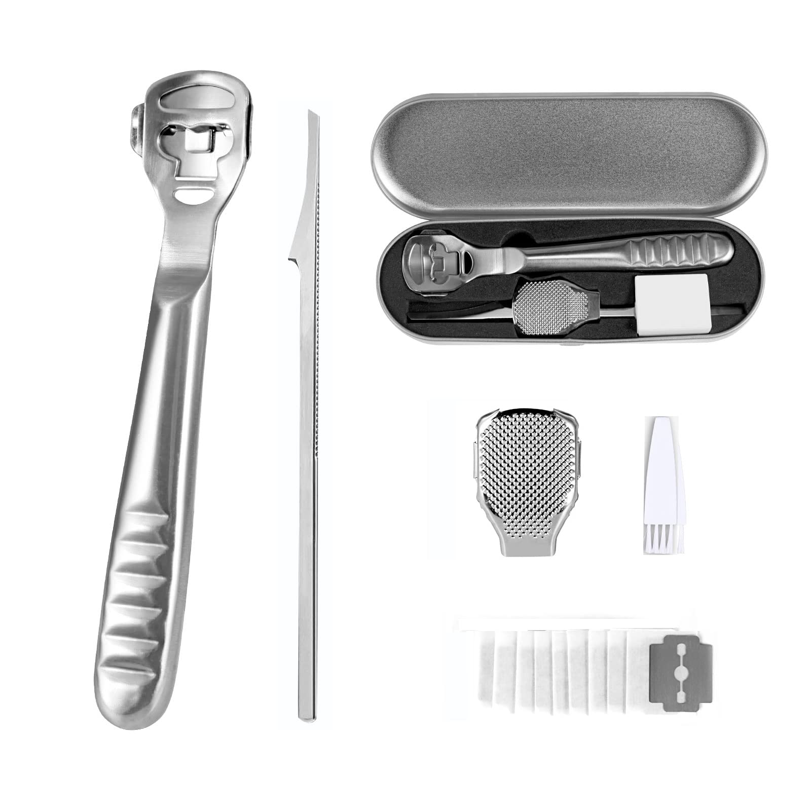 Hornhauthobel Fussschaber - Fussfeile Hornhautentferner Füsse Hornhautrasierer - Edelstahl Fussraspel Harte Haut Ferse Hornhautentfernung Pediküre Set für Hand Füsse Fusspflege mit 10 Ersatzklingen Silber