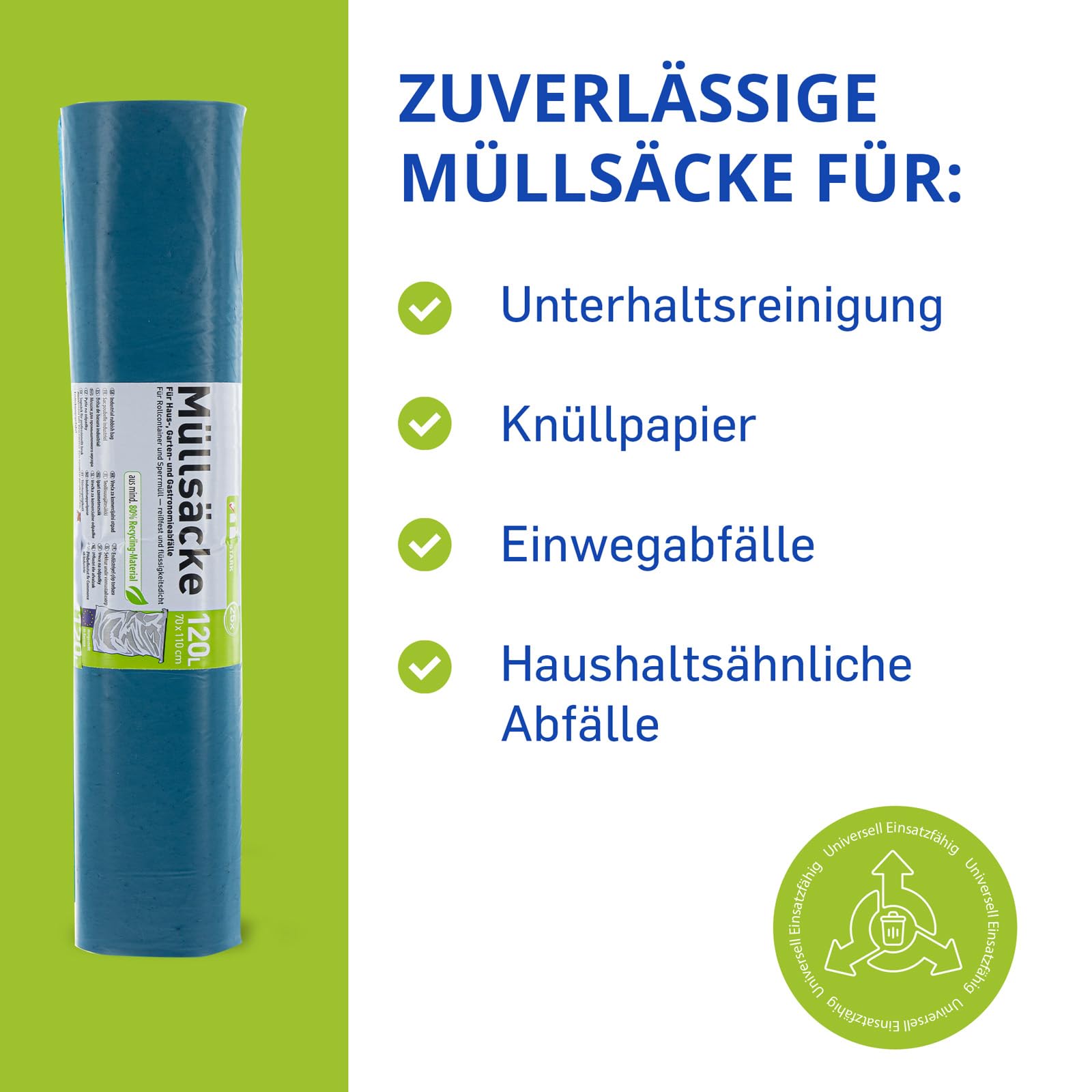Hossi's Wholesale – 120 Liter Abfallsäcke, 4 Rollen à 25 Stück – Blaue Müllsäcke für Haus-, Garten- & Gastronomieabfälle – reissfeste Müllbeutel mit 39my Stärke (700 x 1100 mm)