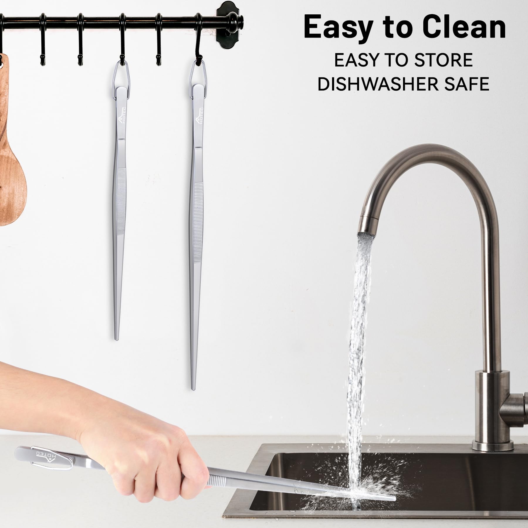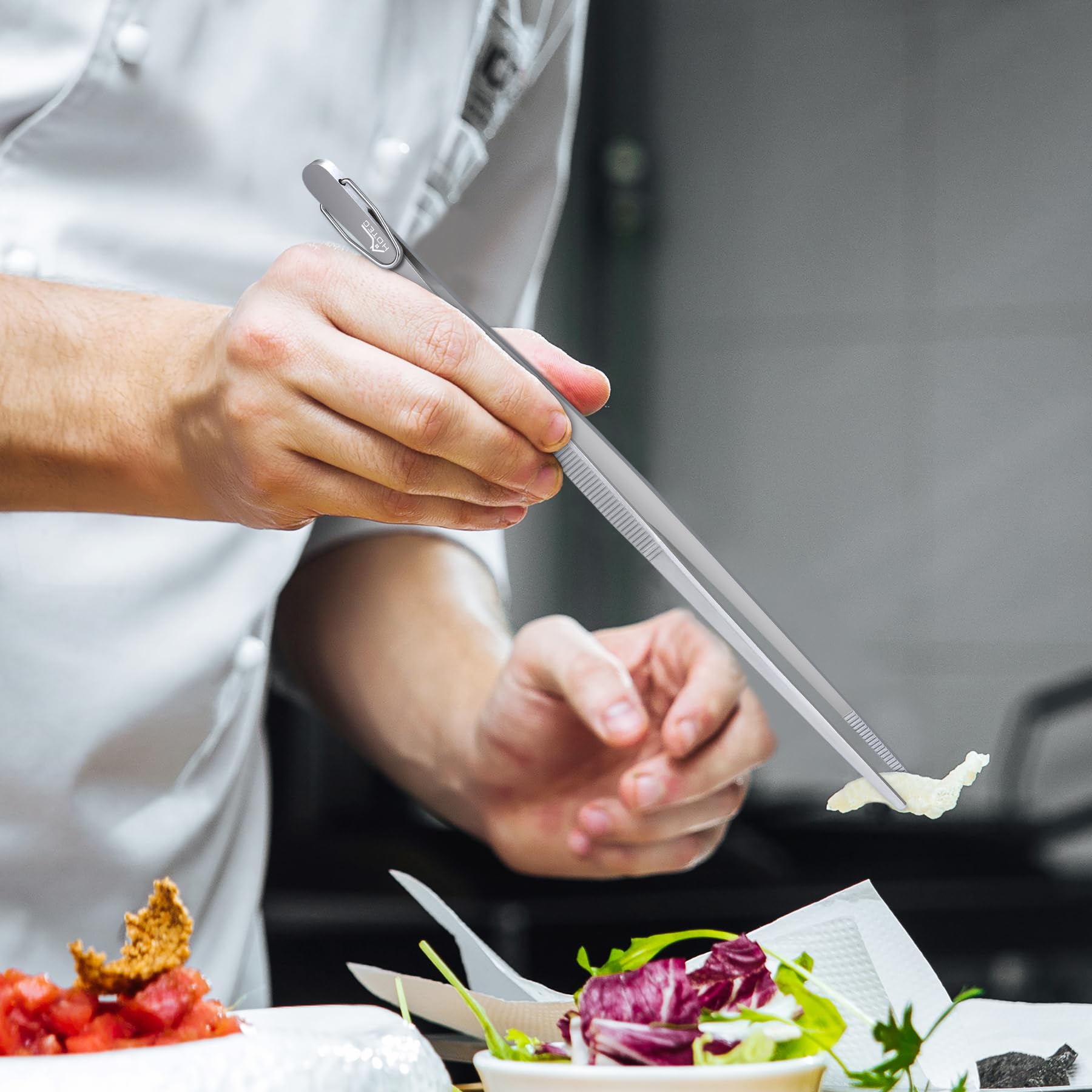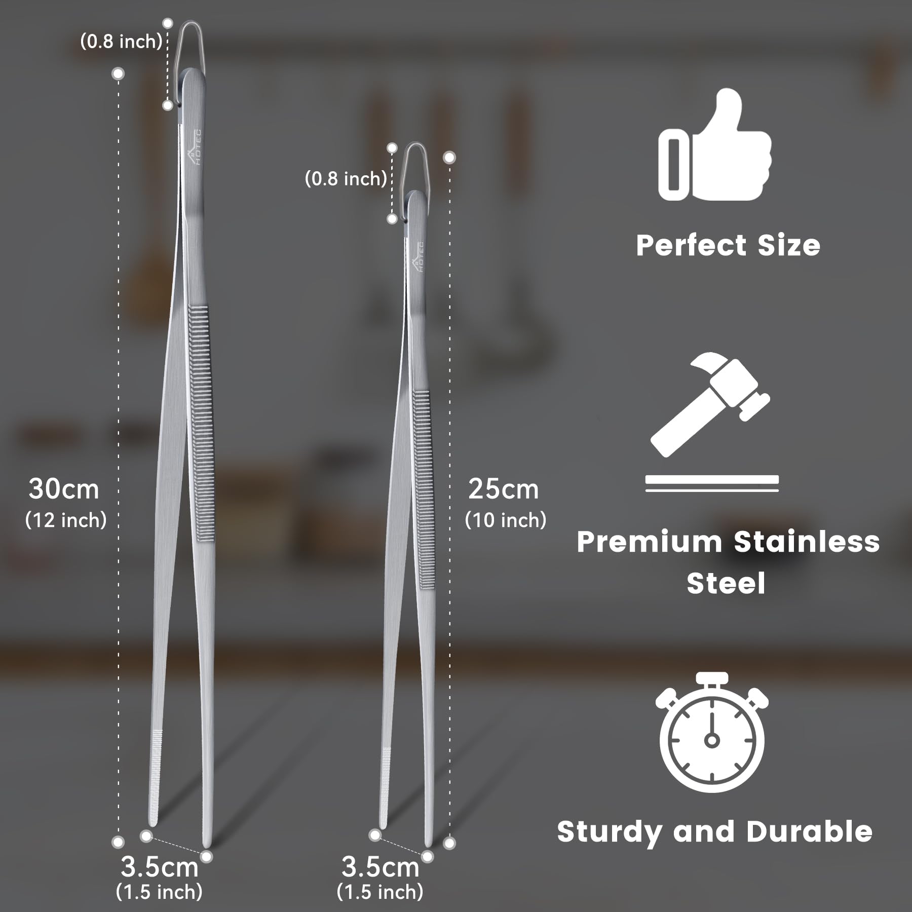 Hotec Edelstahl-Küchenpinzette, professionelle Küchenzange zum Kochen, Grillen und Backen, extra lange Lebensmittelpinzette, Set von 2,30.5zoll,25.4zoll