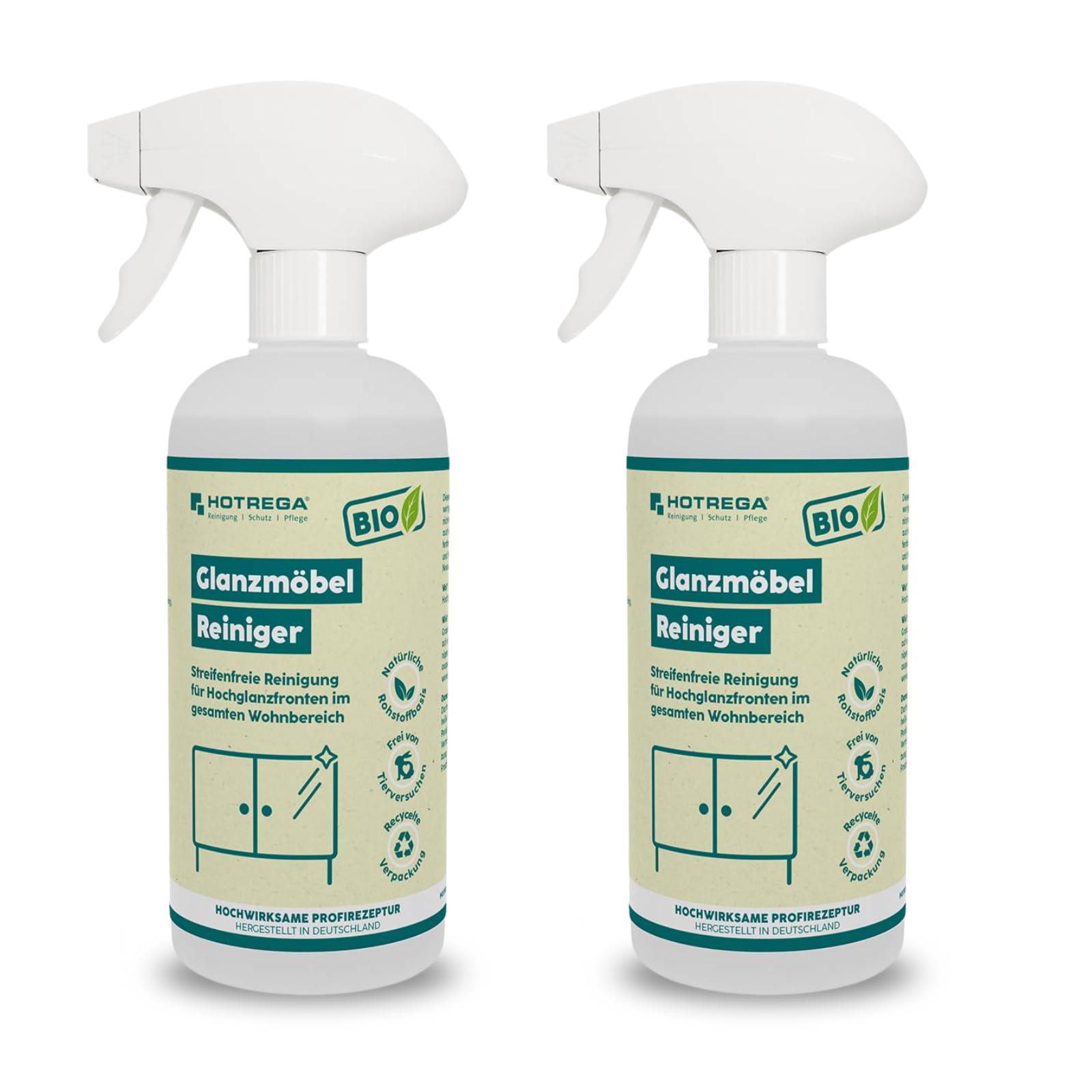 HOTREGA Küchenfronten-Reiniger Hochglanz 2x 500 ml | Streifenfrei & pH-neutral | Entfernt Fingerabdrücke | Für lackierte, folierte & glänzende Flächen