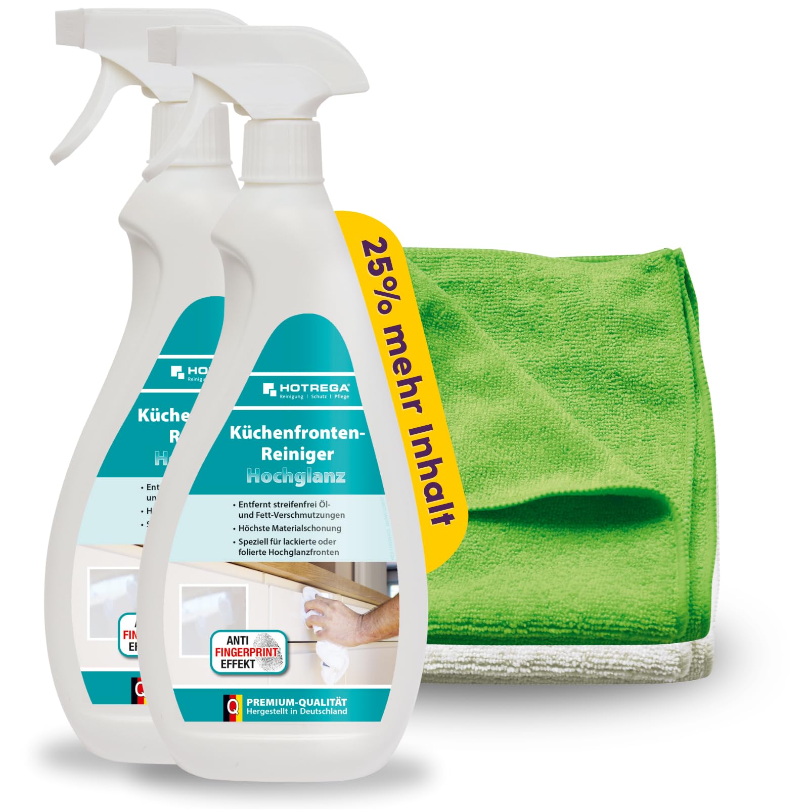 HOTREGA Küchenfronten-Reiniger Hochglanz 2x 500 ml | Streifenfrei & pH-neutral | Entfernt Fingerabdrücke | Für lackierte, folierte & glänzende Flächen