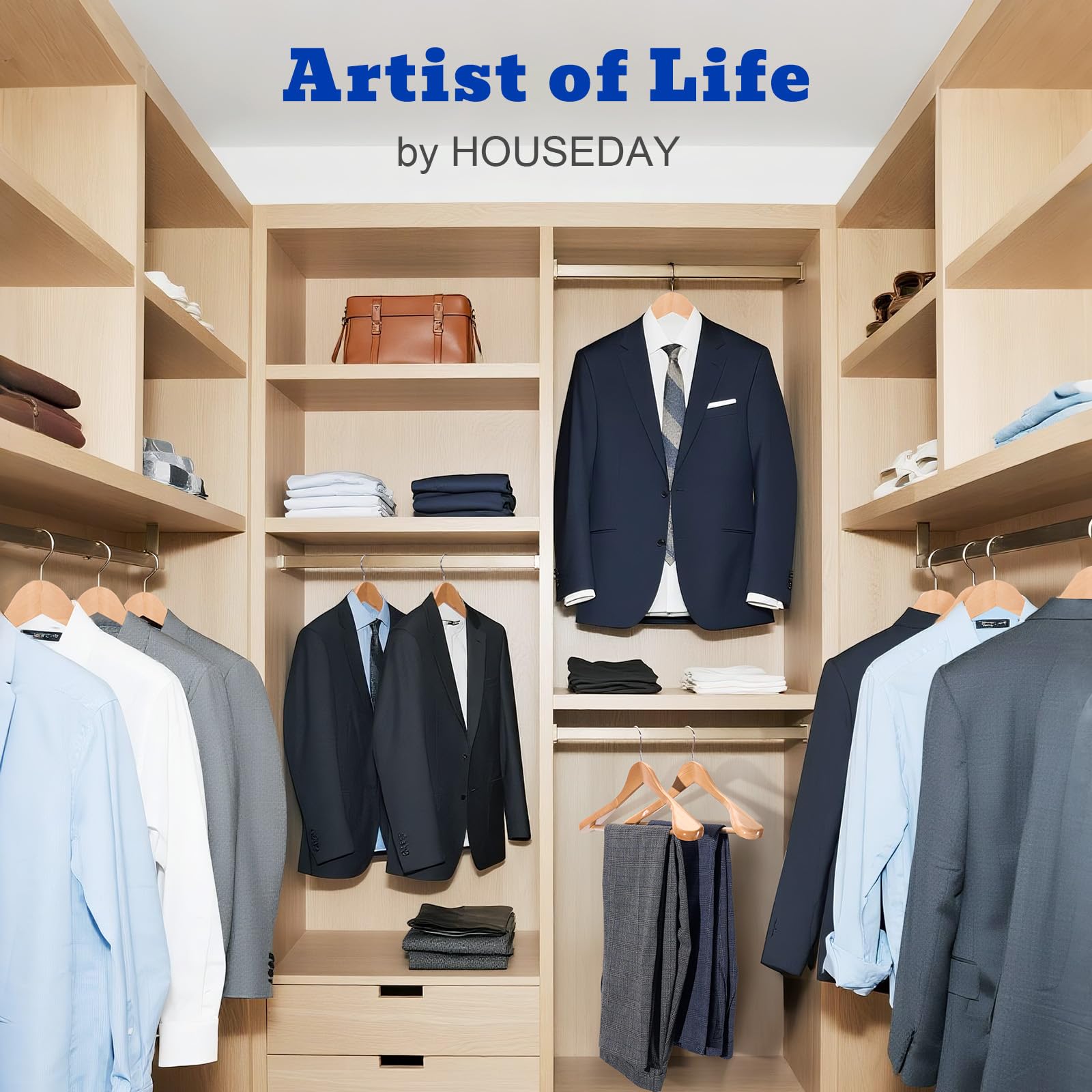 HOUSE DAY Kleiderbügel Holz Breit Natur 6X rutschfest Kleiderbügel Stabil Jackbügel Anzugbügel Holzbügel, Breite Schultern rutschfeste Hosenstangen Drehbare Haken