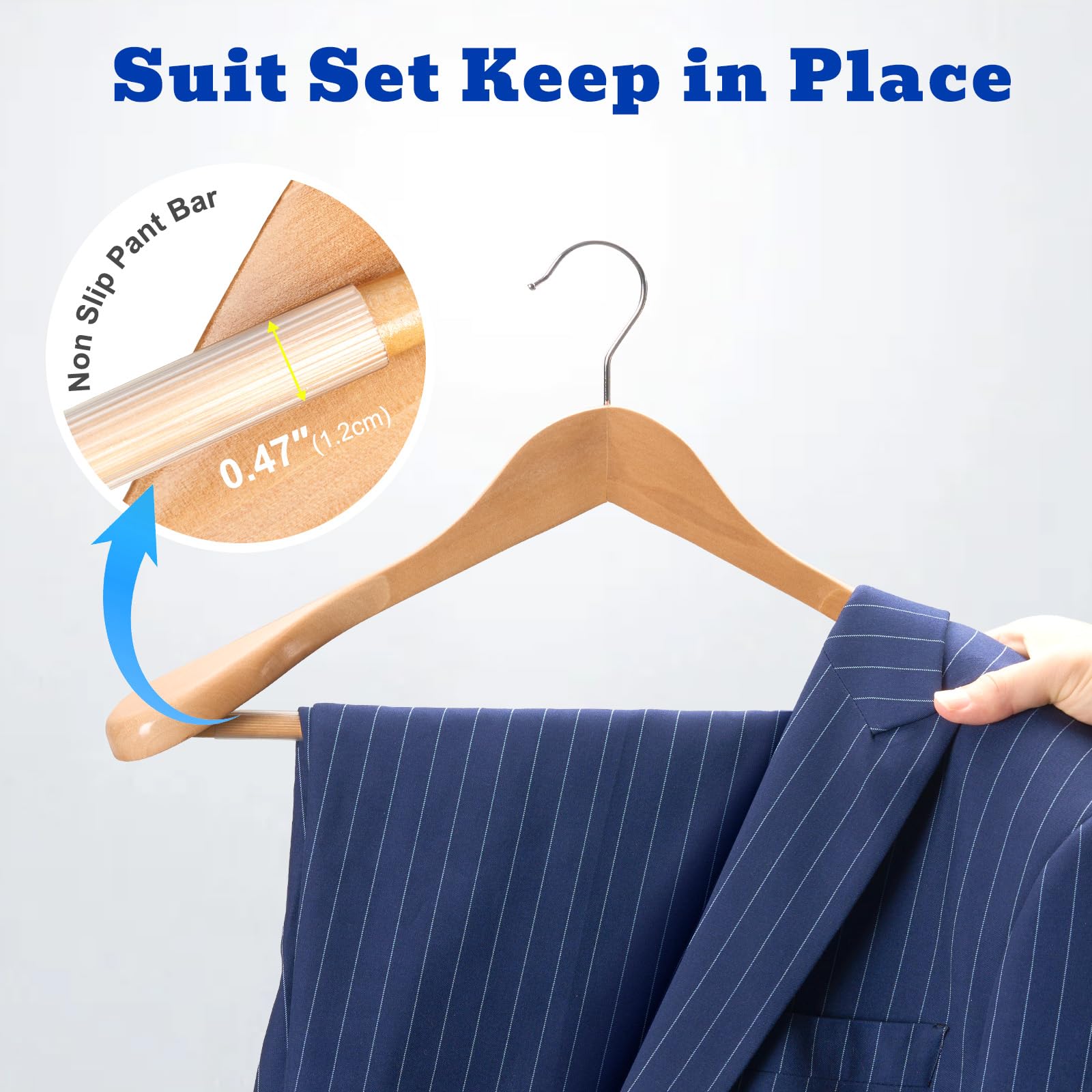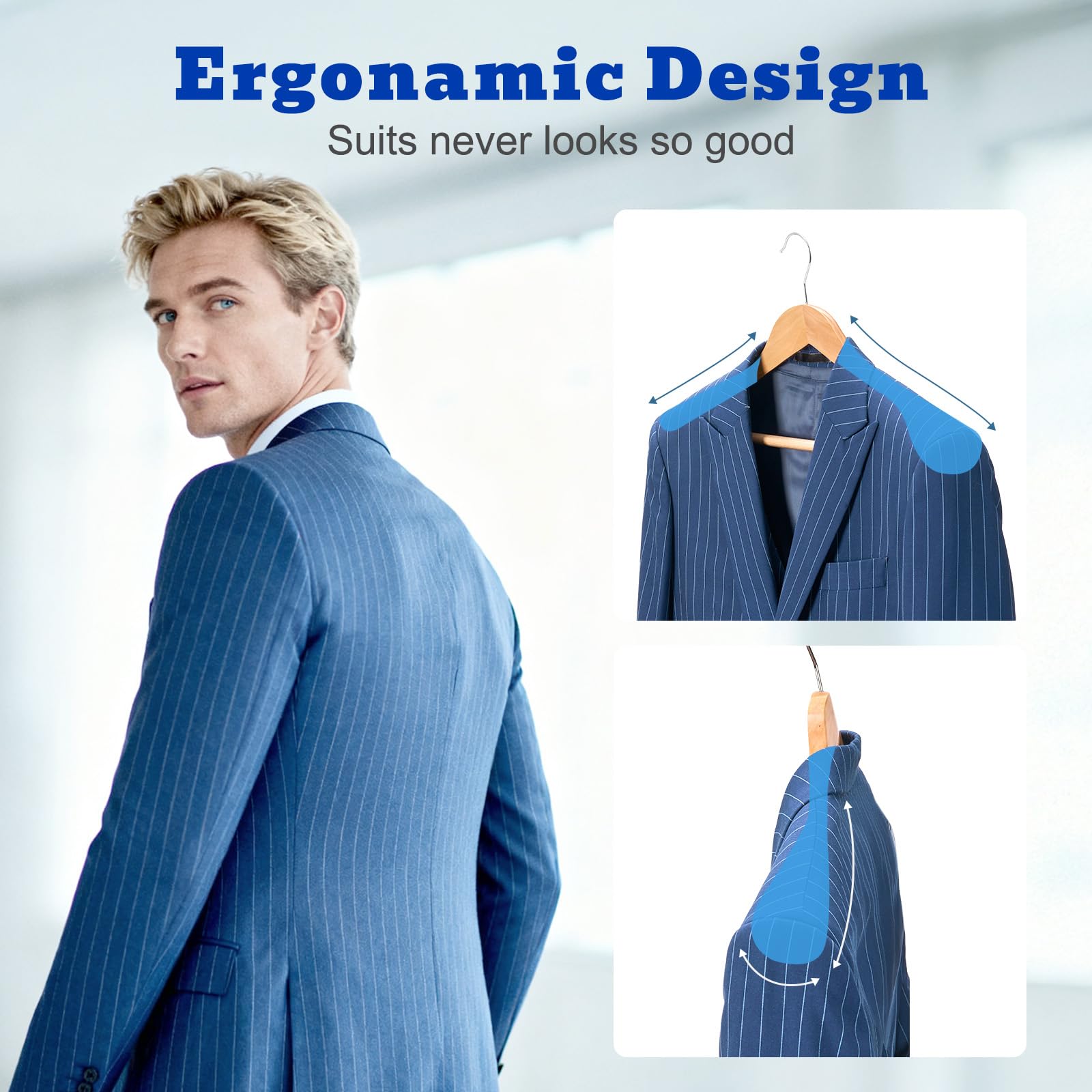 Die naturen Kleiderbügel, die aus hochwertigem Holz herstellt sind, können die Kleidung bis 9 kg aufhängen. Die Naturen Holzbügel sind passend für Winderjacken, Mäntel, Anzüge, Kleider, Hosen, Jeans. Die Holzkleiderbügel mit grösseren Schultern sind breiter als andere Holzbügel im Markt. Die Kleiderbügel aus Holz haben drehbare Haken und Anti-Rutsch-Materialien auf der Kleiderstange, die passend zum Aufhängen der Hosen.
