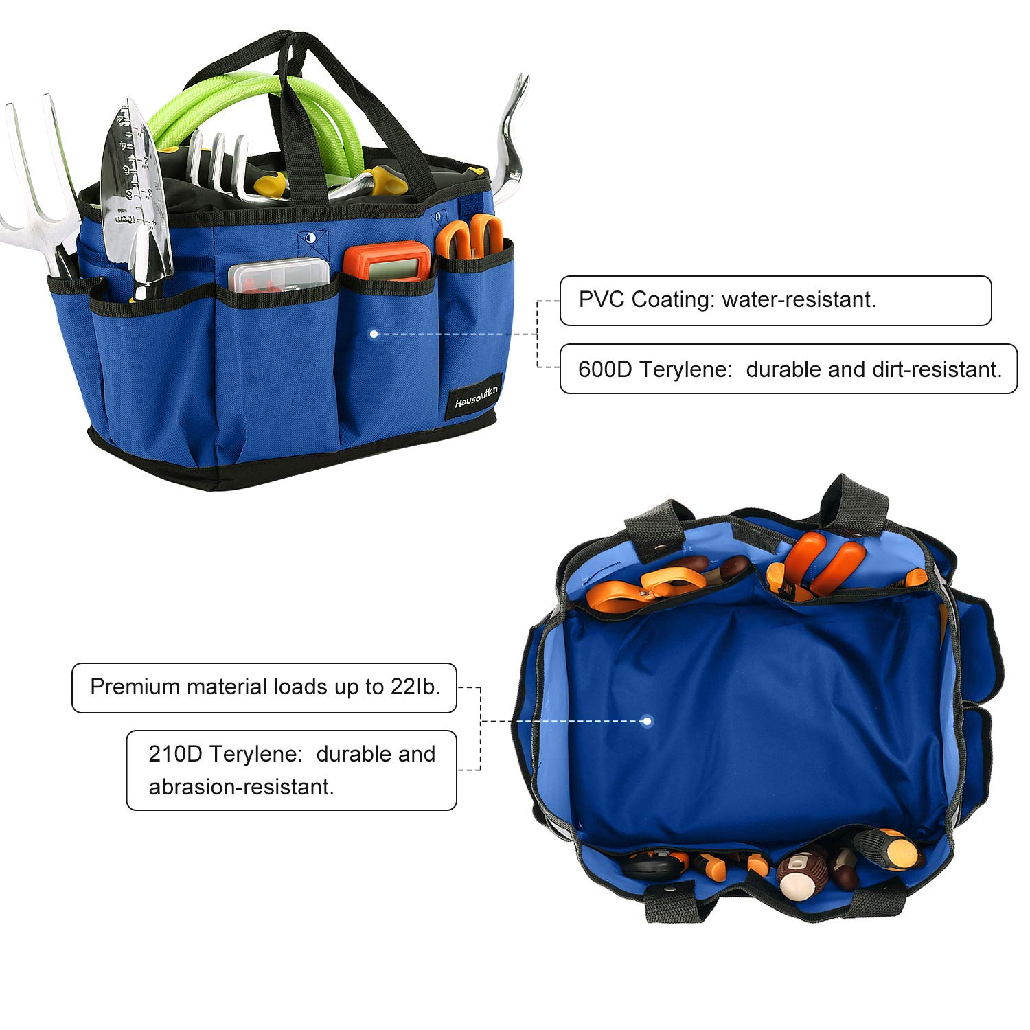 Housolution Garten Werkzeugtasche, Deluxe Garten Werkzeug Aufbewahrungstasche und Gartengerätetasche mit Kleinen Taschen, Verschleissfest und Wiederverwendbar, 14 Zoll - Blau