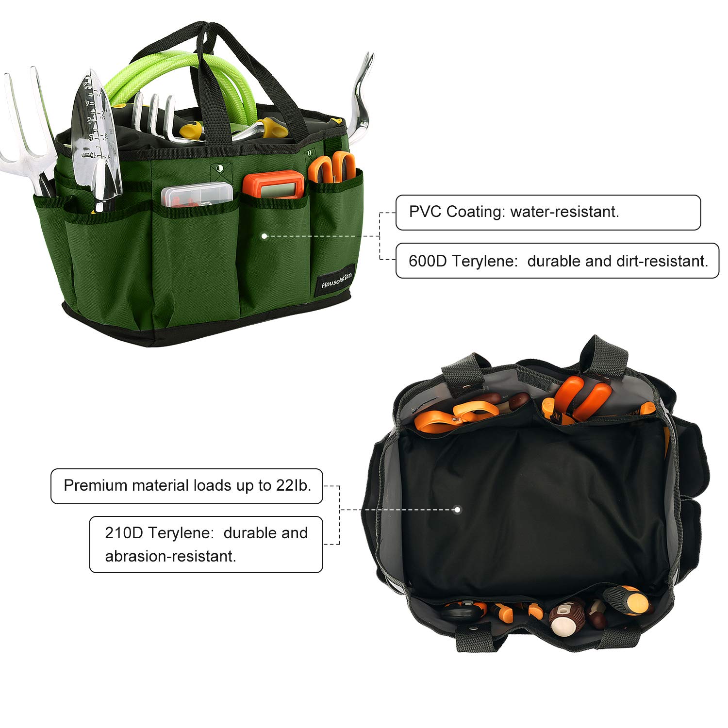 Housolution Garten Werkzeugtasche, Deluxe Garten Werkzeug Aufbewahrungstasche und Gartengerätetasche mit Kleinen Taschen, Verschleissfest und Wiederverwendbar, 14 Zoll, Dunkelgrün
