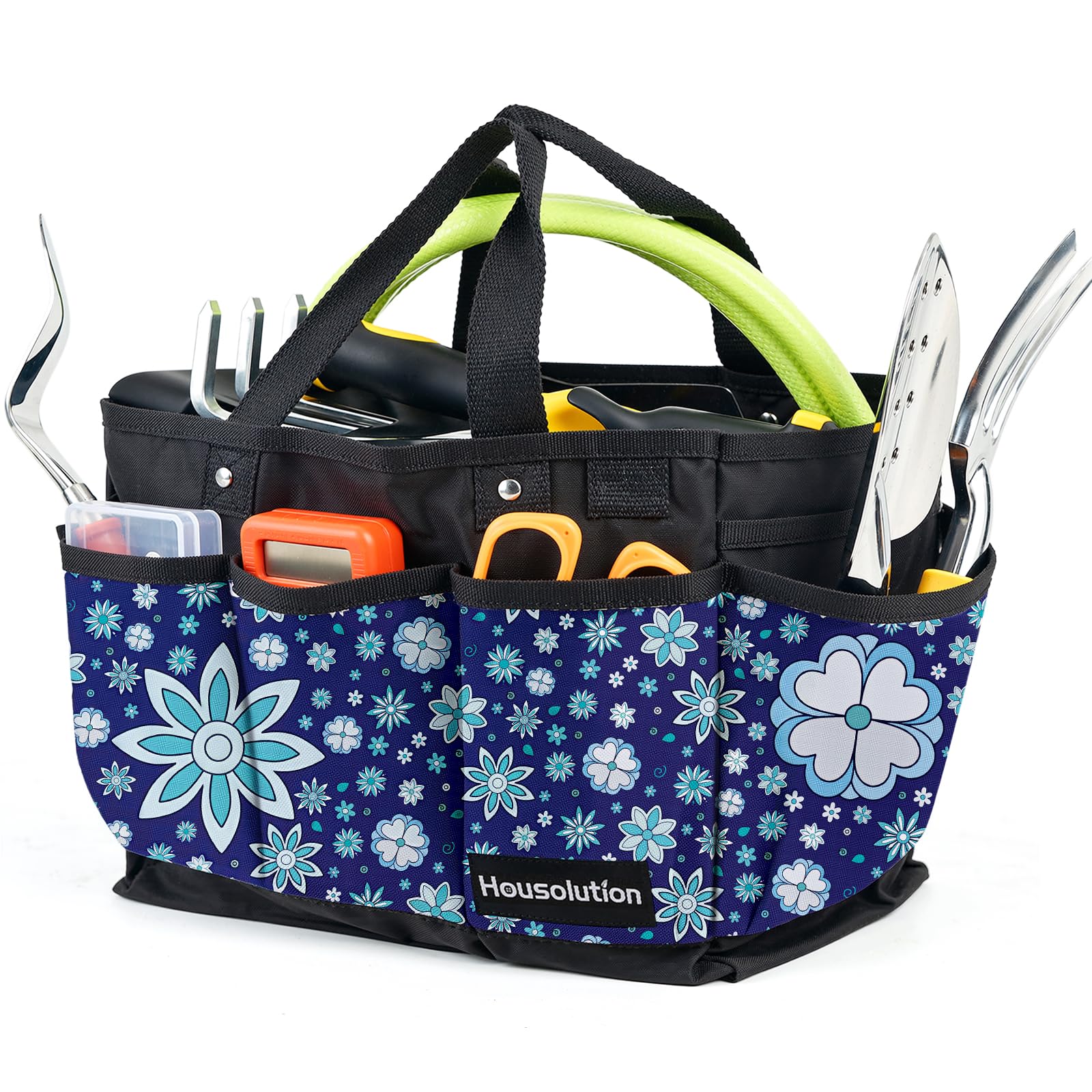Housolution Garten Werkzeugtasche, Deluxe Garten Werkzeug Aufbewahrungstasche und Gartengerätetasche mit Kleinen Taschen, Verschleissfest und Wiederverwendbar, 14 Zoll, Blau Blume