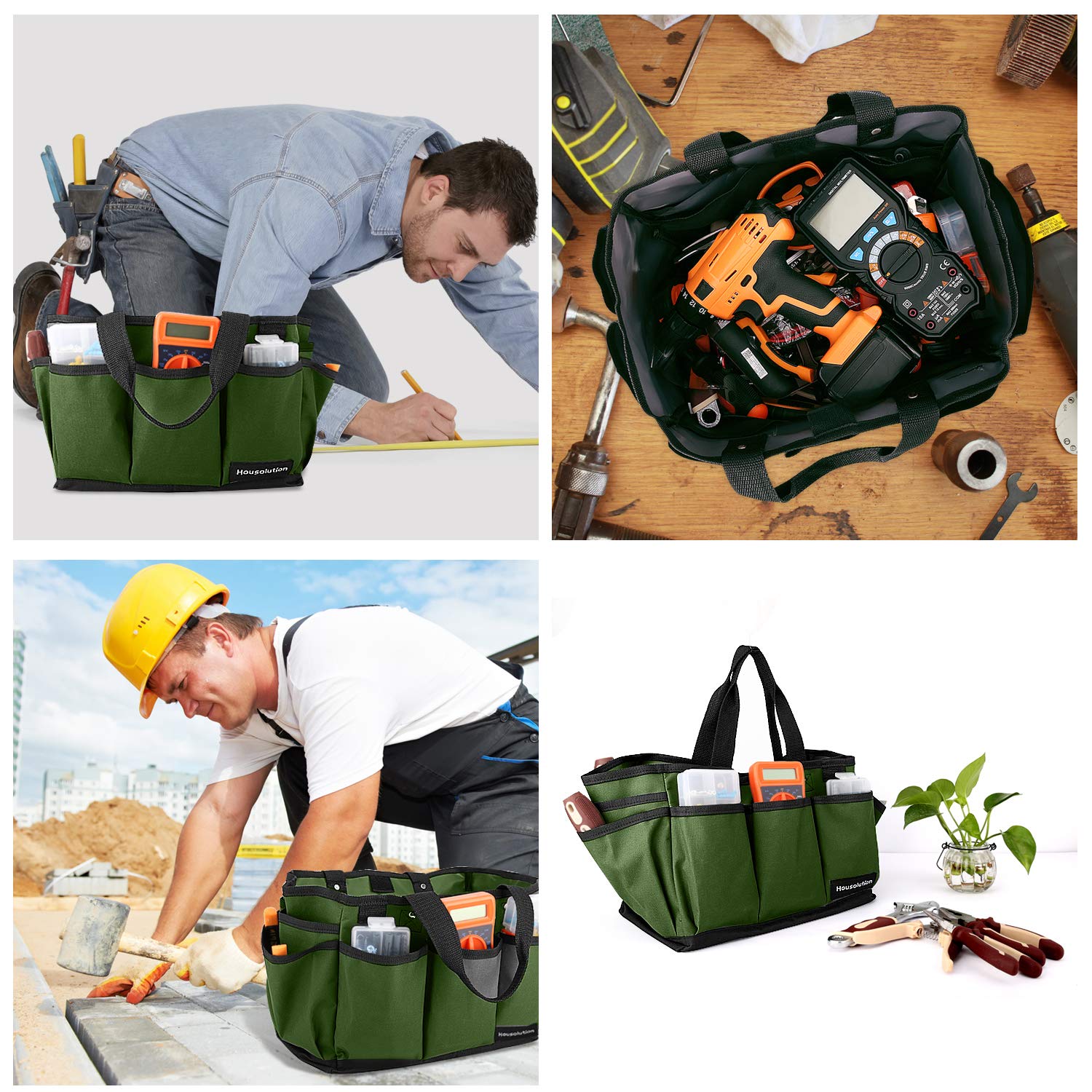 Housolution Garten Werkzeugtasche, Deluxe Garten Werkzeug Aufbewahrungstasche und Gartengerätetasche mit Kleinen Taschen, Verschleissfest und Wiederverwendbar, 12 Zoll, Dunkelgrün