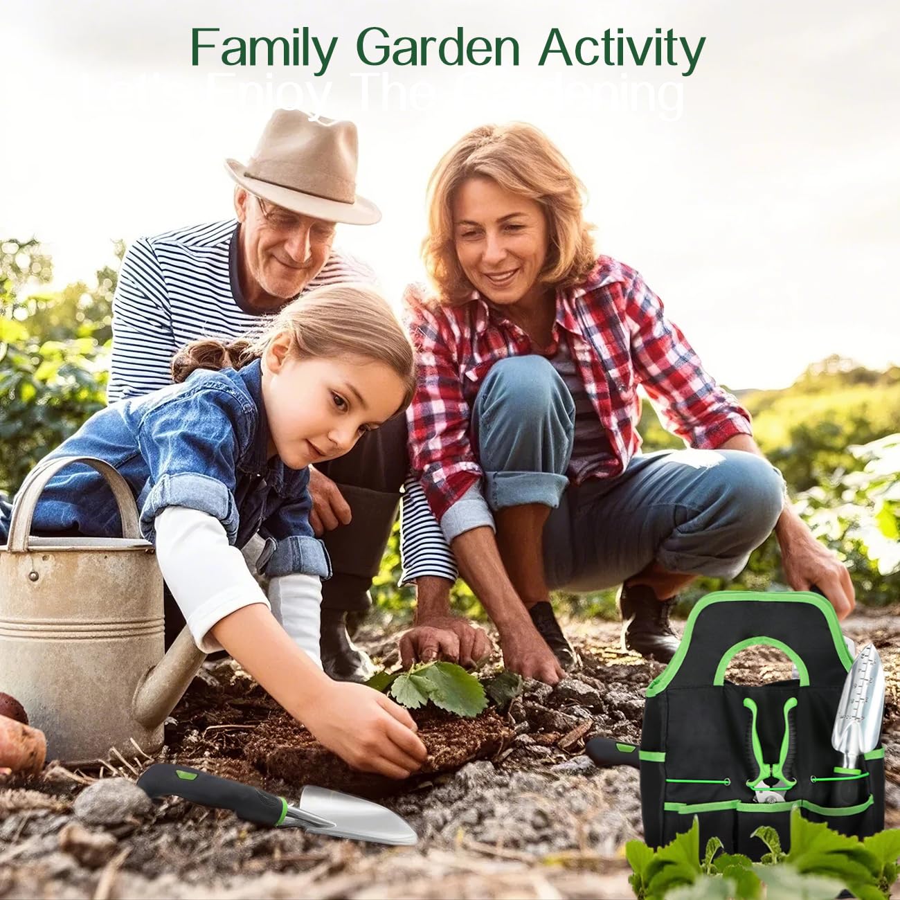 Housolution Gartengeräte Set, 8 PCS Gartenarbeit-Handwerkzeug-Set, Robust Aluminiumlegierung Gartenarbeit Zubehör mit Gummi Storage Tote Bag, Grün