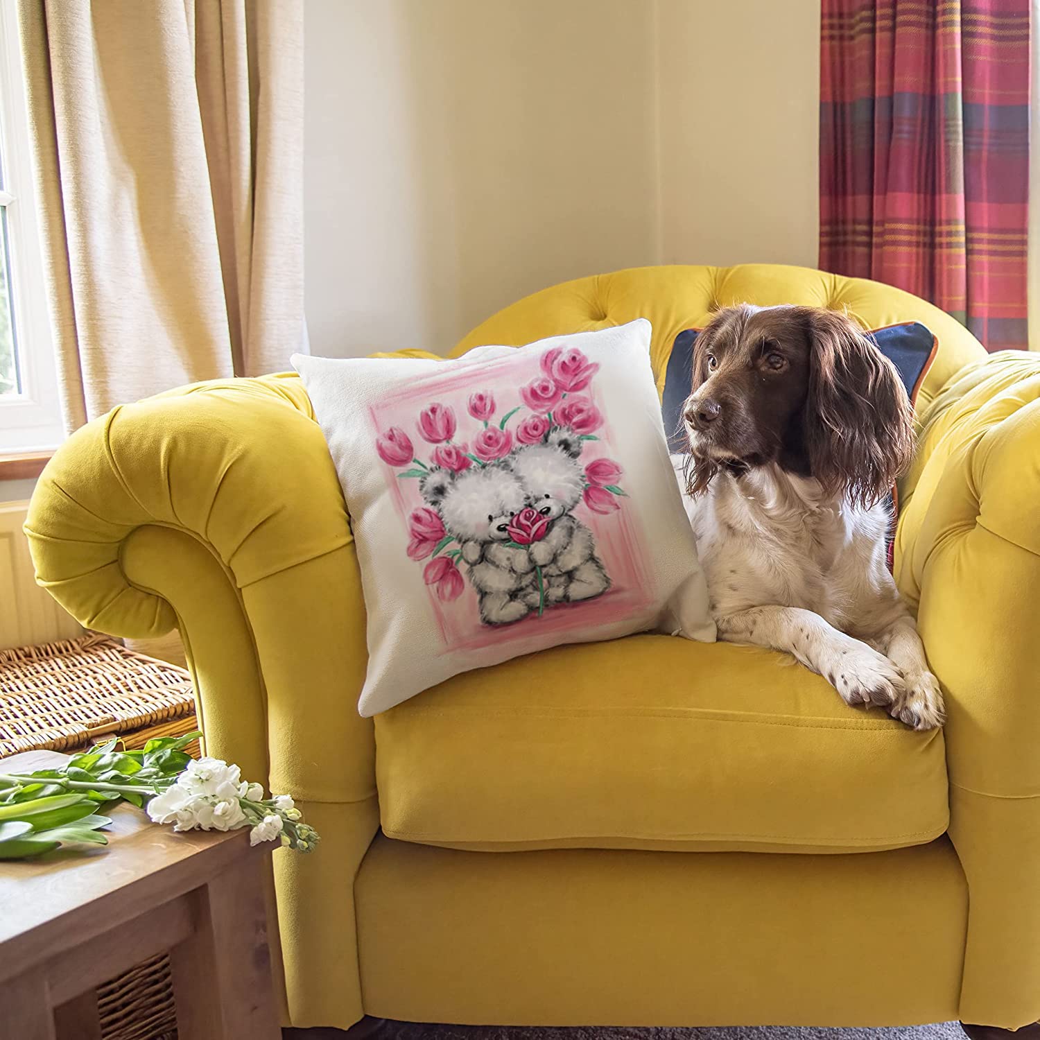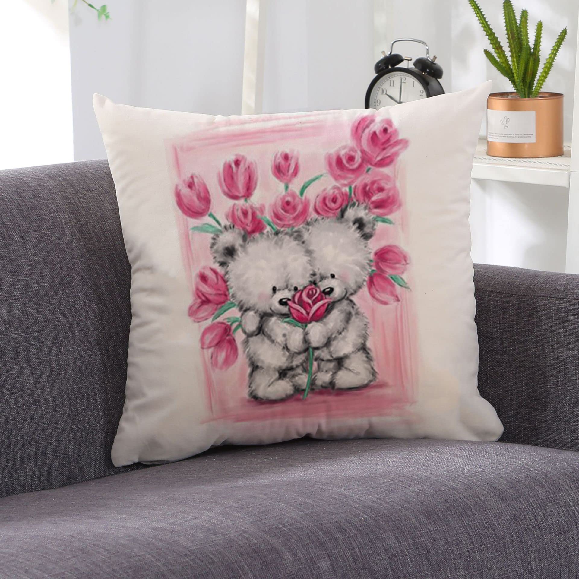 HUASHUZI Kissenbezug 40 x 40 cm mit rosa Br, niedlicher Kissenbezug fr Wohnzimmer, Couch, Bett, Sofa, Geschenke