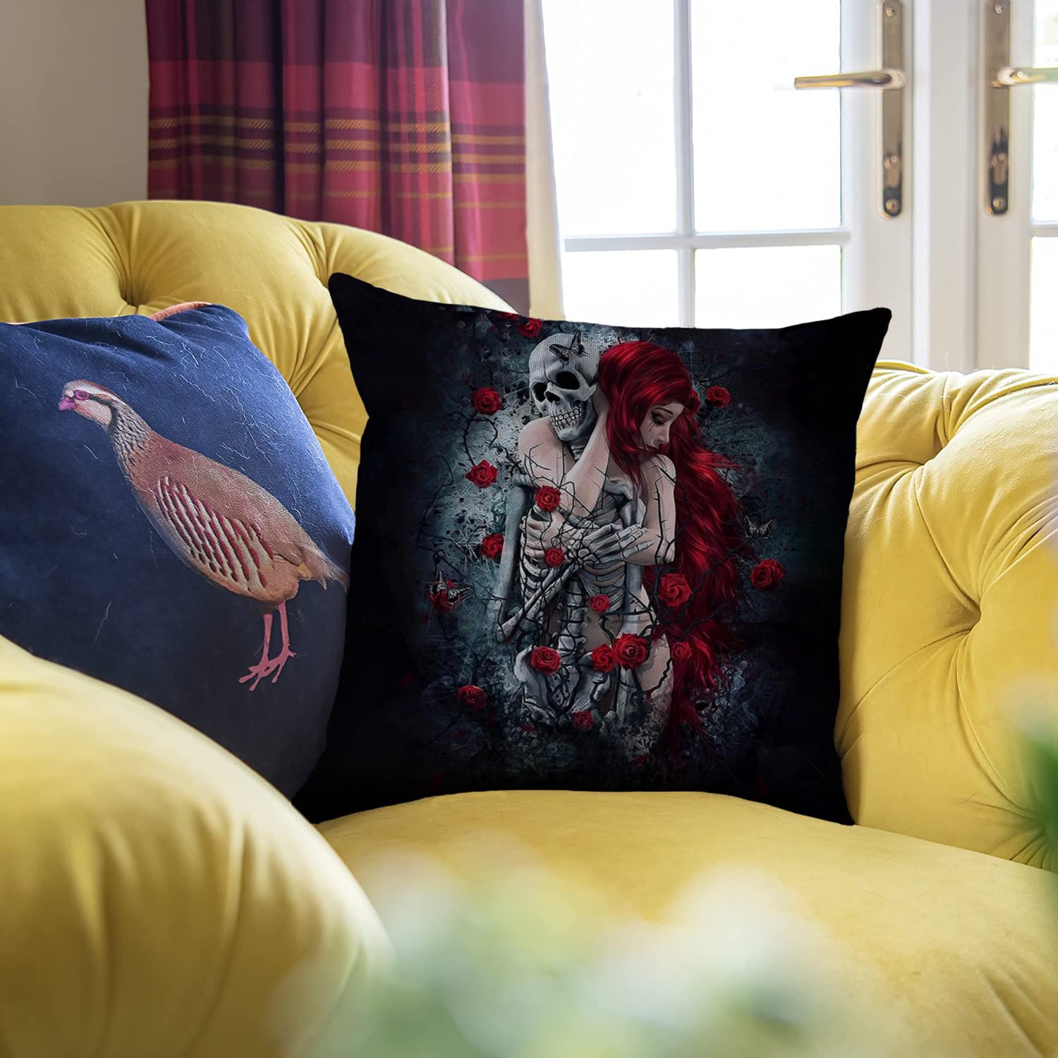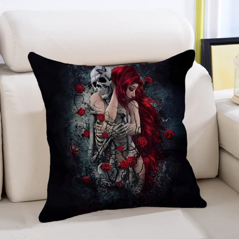 HUASHUZI Kissenbezug 40x40 cm Kissen Gothic Totenkopf therian Grunge Room Decor Accessoires Skull Skelett Wikinger deko Emo Goth Punk Witchy Hexe Fantasy Decor Geschenke für Frauen