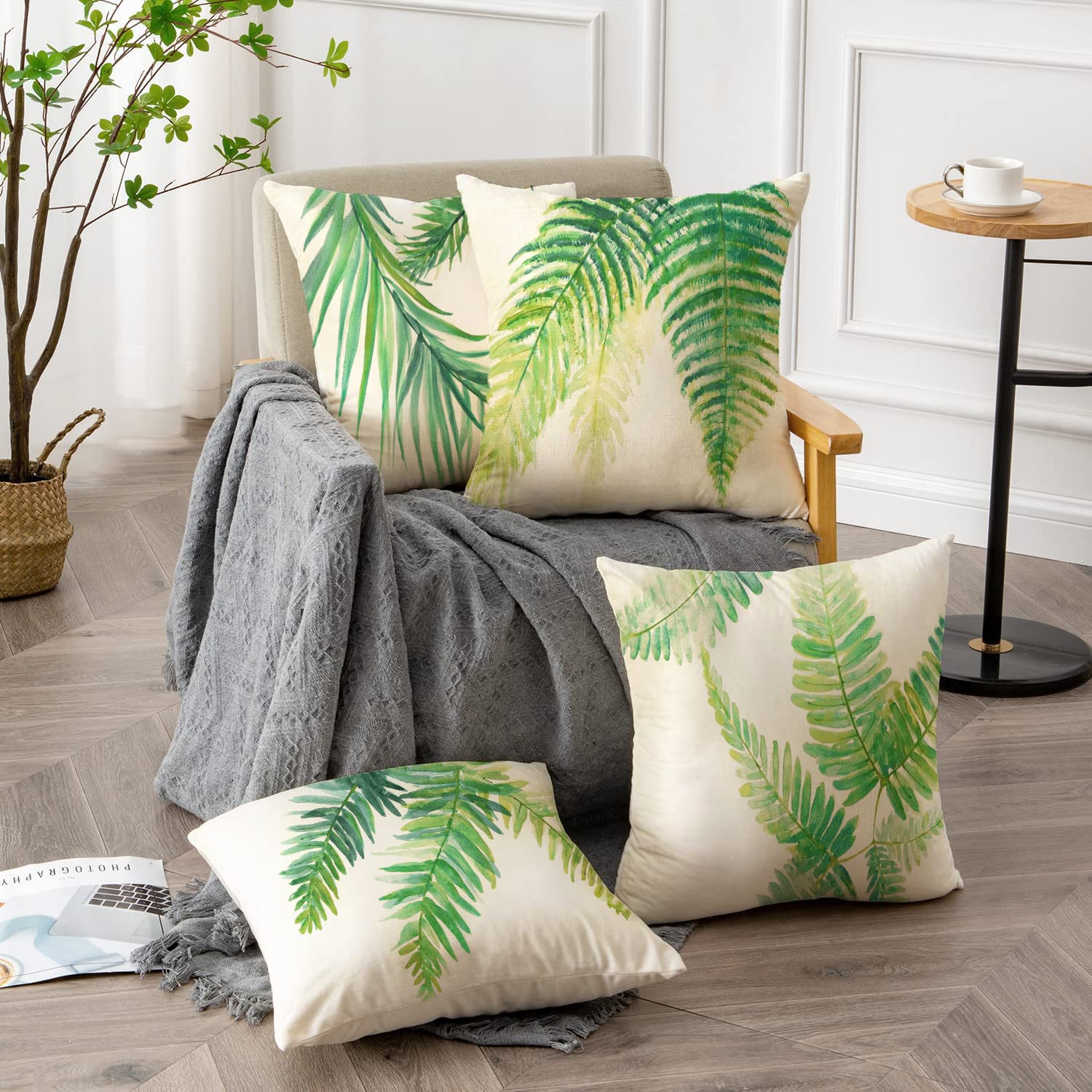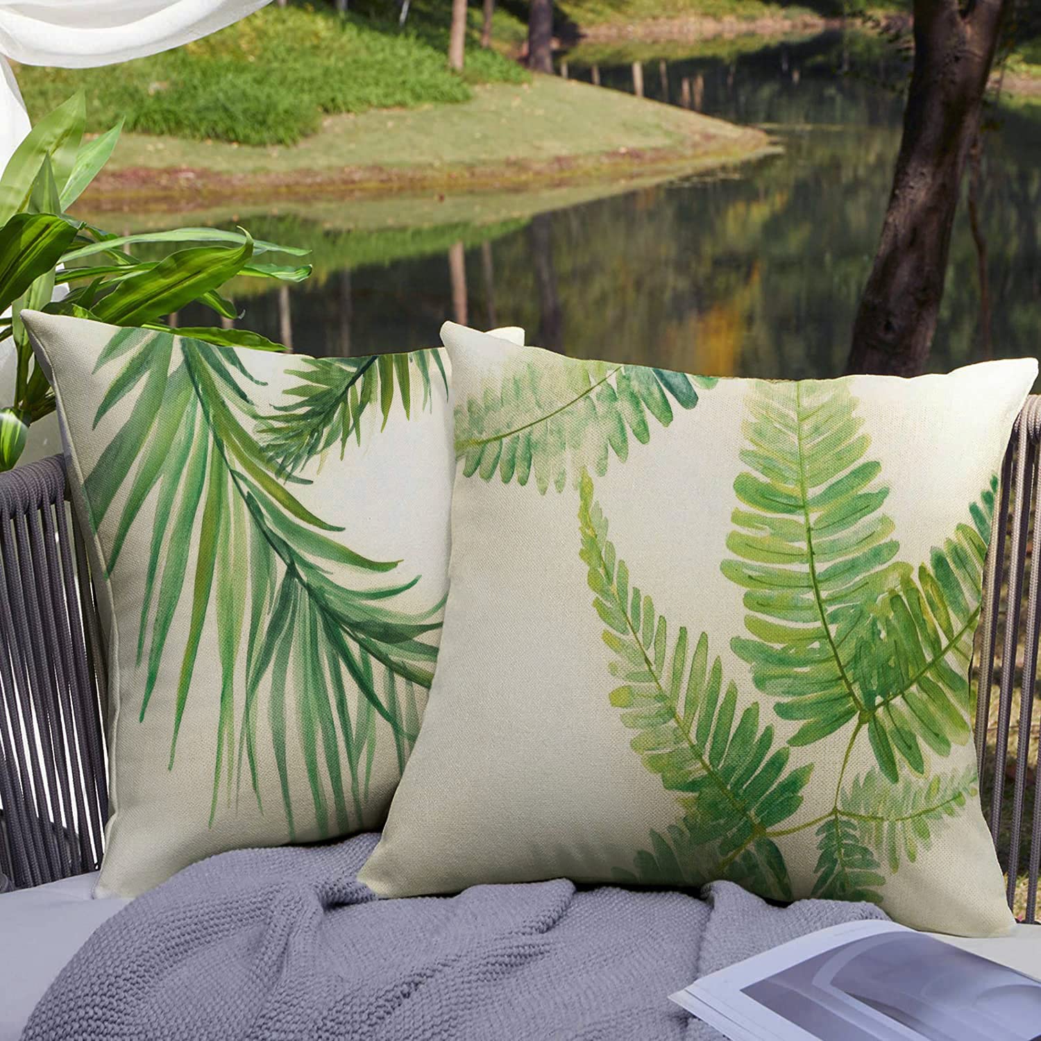 HUASHUZI Outdoor Kissen Wetterfest Kissenbezug Balkon Kissen deko Tropische Grüne Sommer palmenblätter 4er Set 45x45cm gartenmöbel Kissenbezüge Kissenhülle